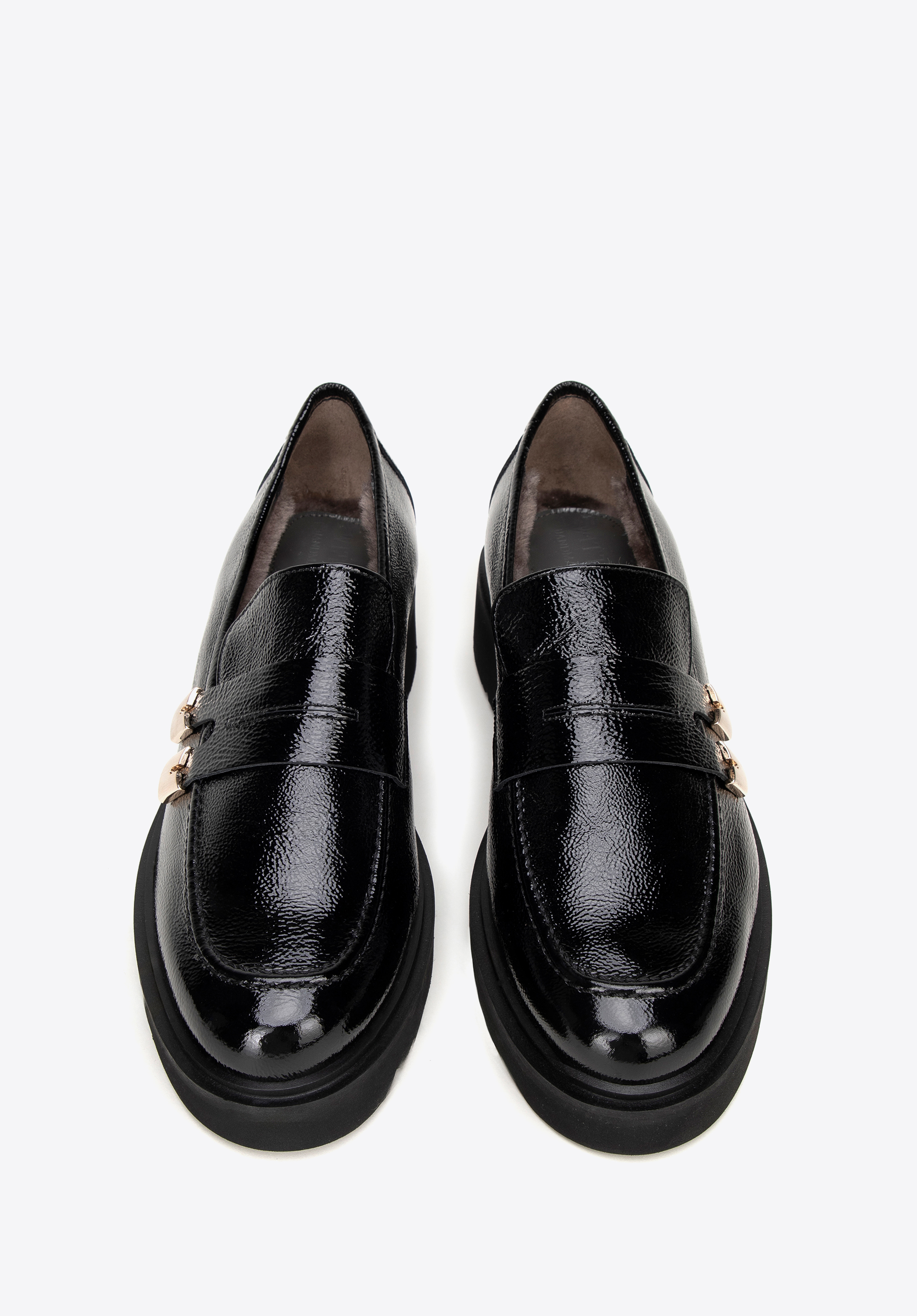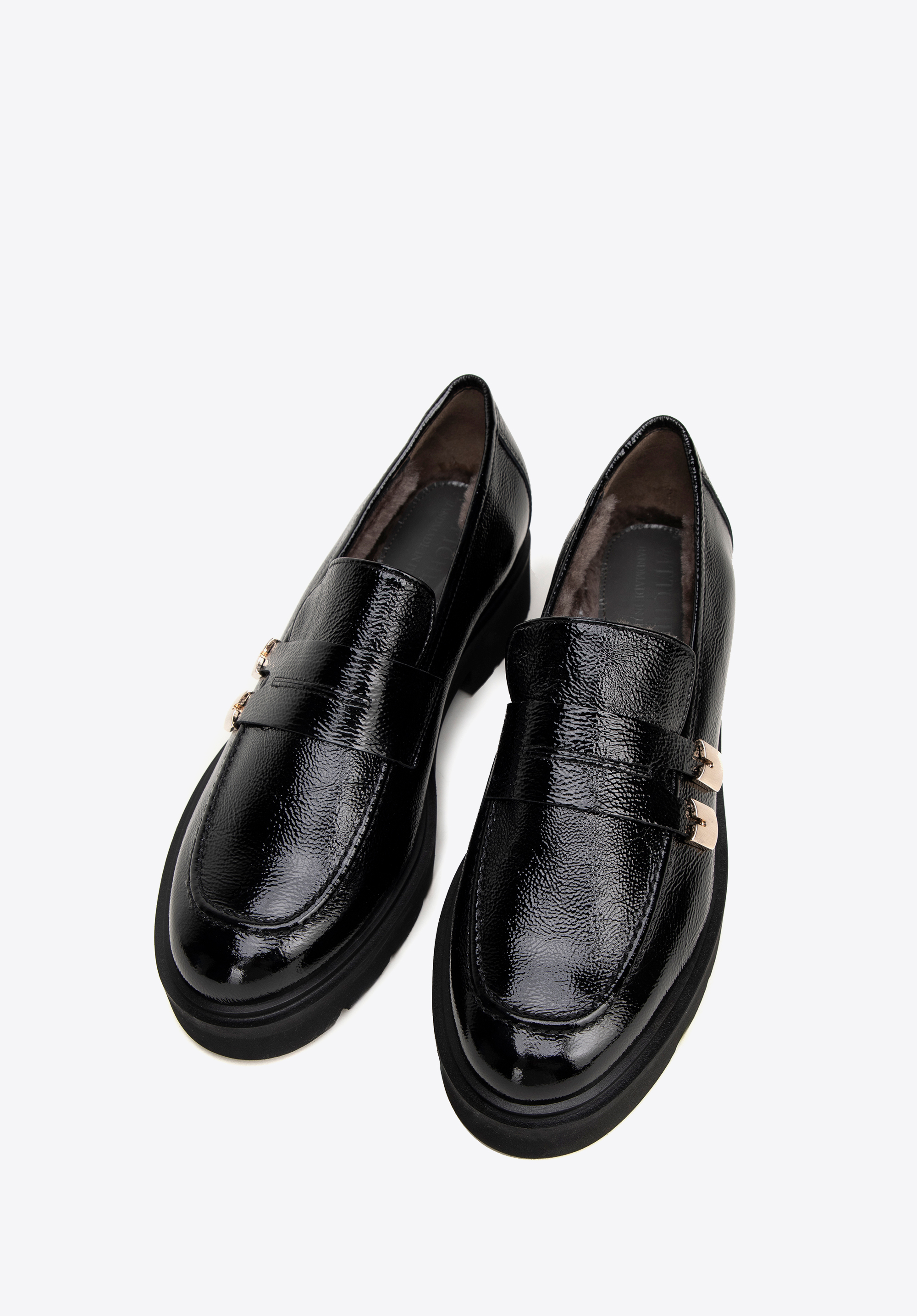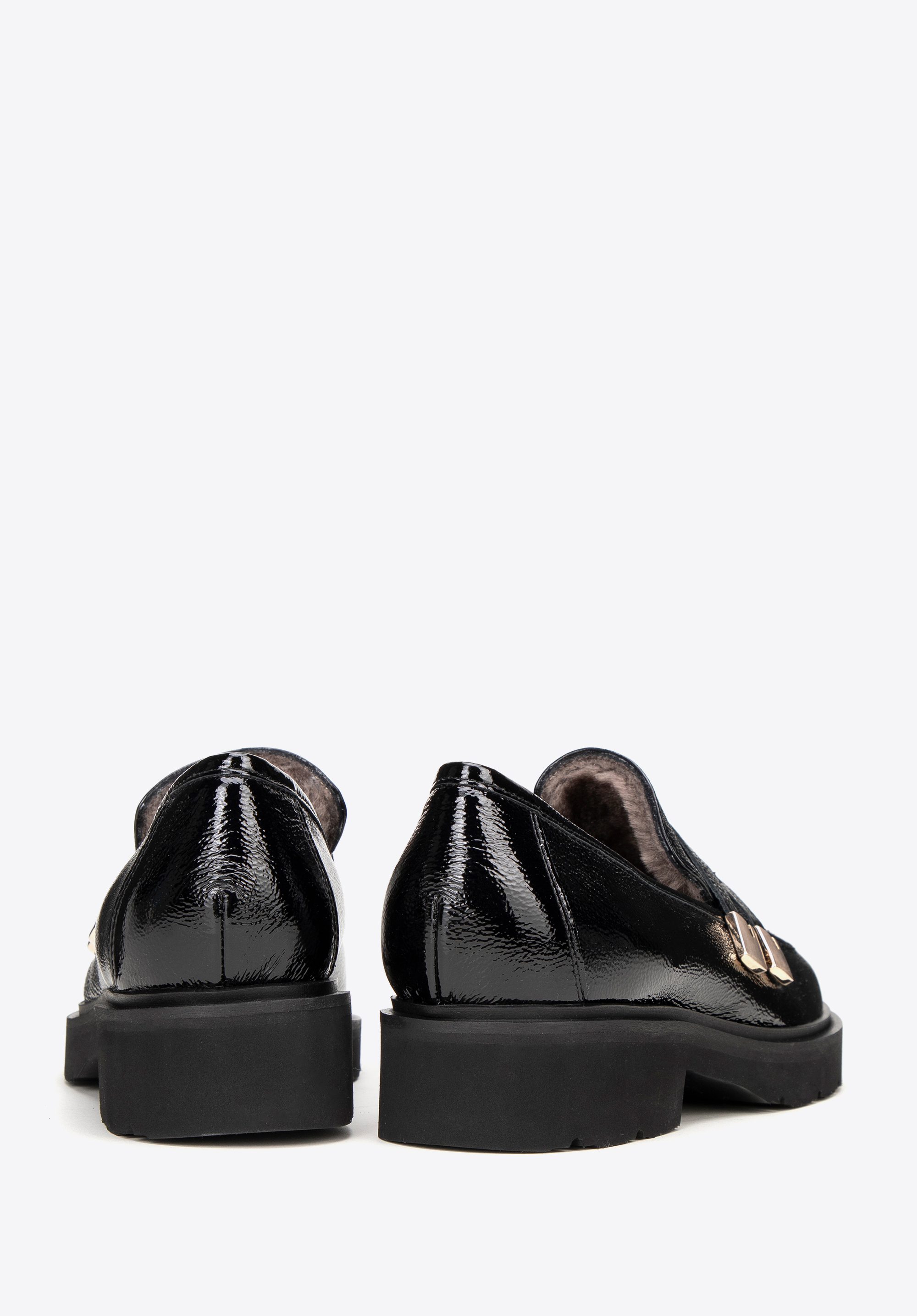 Styling-Tipp : Diese Slip-On-Mokassins mit dekorativen Metalldetails und Fellfutter passen hervorragend zu eleganten Röcken, Kleidern sowie trendigen Hosen oder Jeans. Egal zu welchem Anlass, sie verleihen Ihrem Ensemble einen Hauch von Chic und Raffinesse.