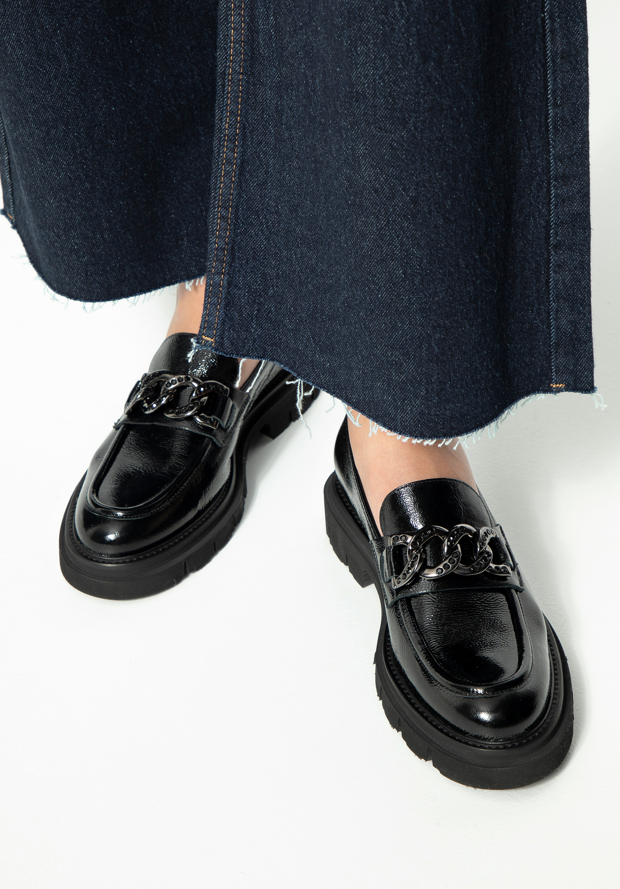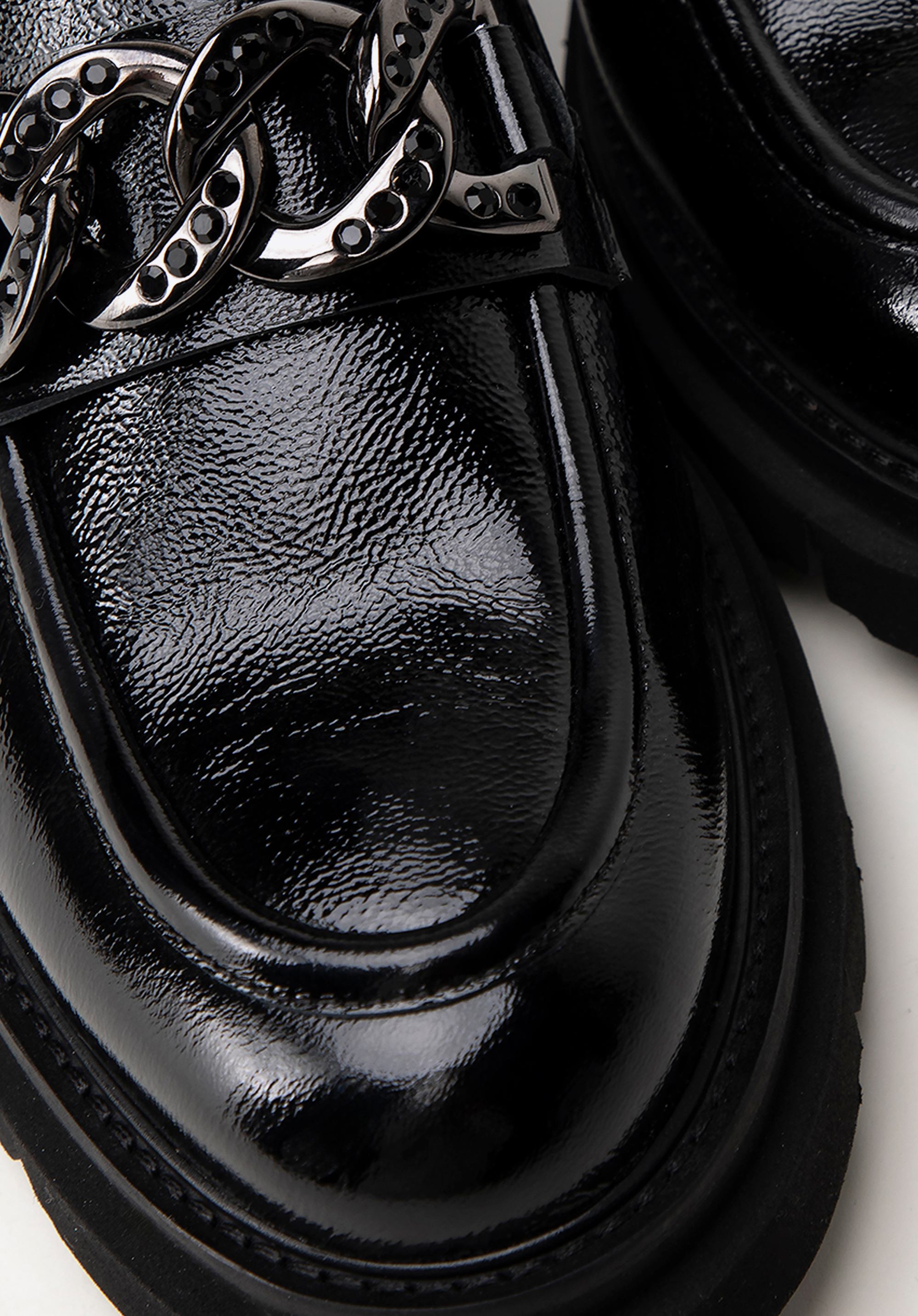 Lernen Sie die einzigartigen Mokassins kennen, die Luxus und Komfort auf höchstem Niveau vereinen. Diese Damenmokassins aus Lackleder sind die Quintessenz von Eleganz und raffiniertem Stil, geschaffen für Frauen, die sich in jeder Situation selbstbewusst und besonders fühlen wollen.