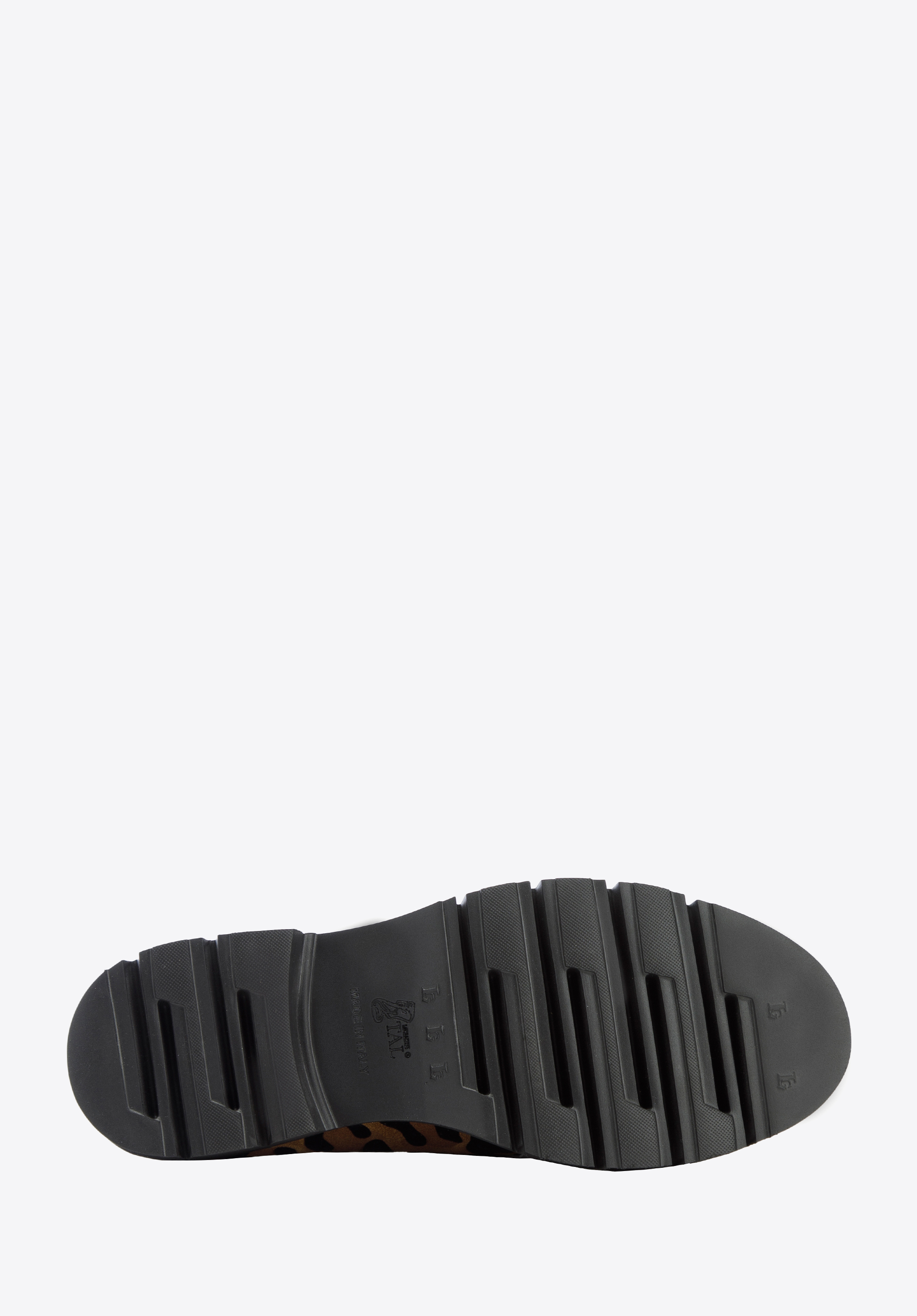Diese Damenschuhe sind ein stilvolles und praktisches Accessoire für Modeliebhaberinnen. Das Leopardenmuster bringt Abwechslung in jedes noch so schlichte Styling, sei es ein schlichtes Kleid oder die Lieblingsjeans mit T-Shirt. Die Mokassins wurden in Italien aus hochwertigem Veloursleder gefertigt. Sie haben einen schlanken Schnitt, der durch eine klobige Kette in Schwarz ergänzt wird. Die lederne Innensohle mit weichem Futter sorgt für stundenlanges bequemes Gehen, sowohl bei der Arbeit als auch nach der Arbeit. Die Damen-Mokassins aus Wildleder mit Tiermuster können im Frühling, Herbst und Sommer getragen werden und machen jeden Tag eine gute Figur.