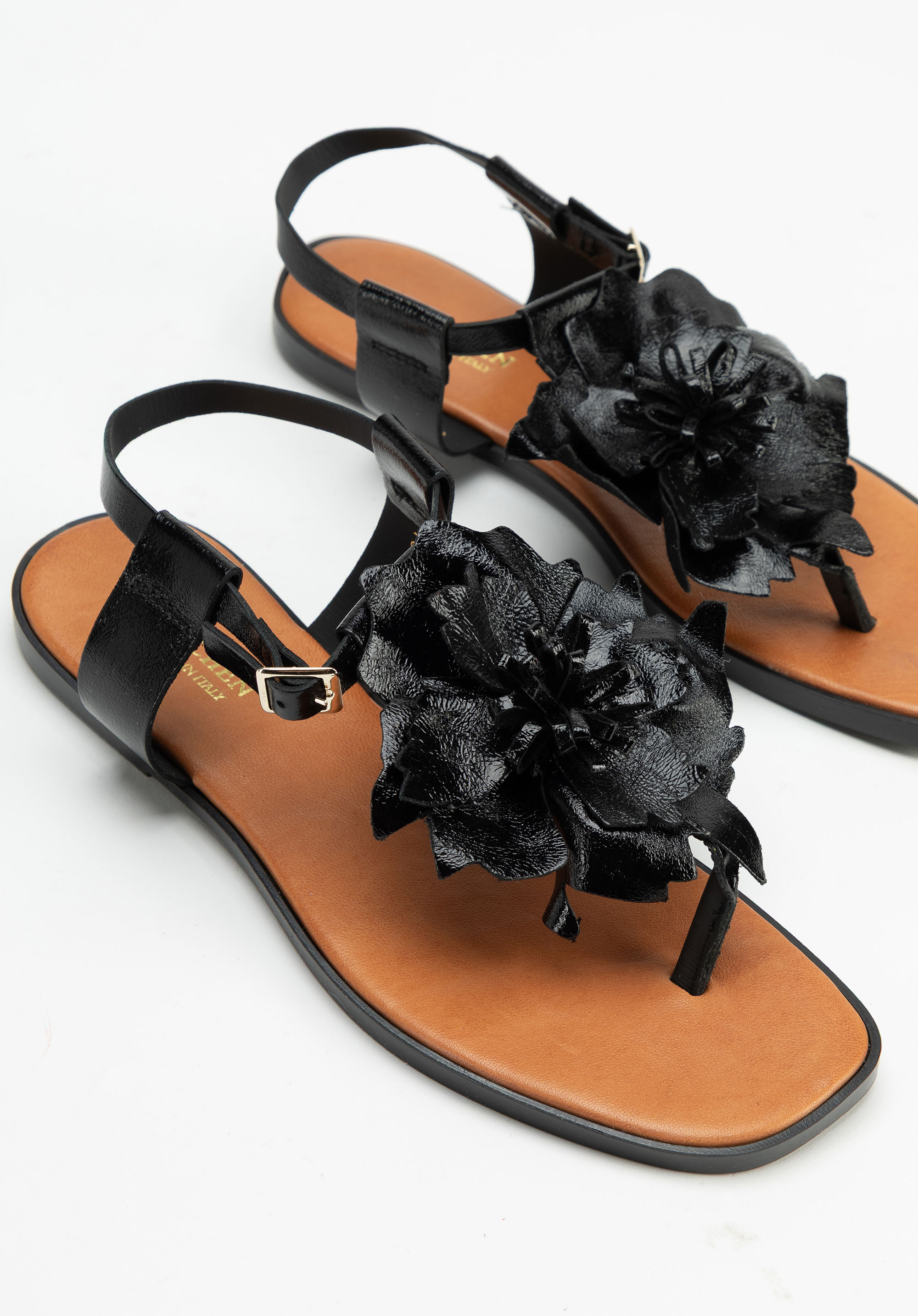 Diese Damensandalen im Flip-Flop-Stil verkörpern sommerlichen Chic mit natürlichem italienischen Flair. Sie sind aus Naturleder gefertigt und überzeugen durch hervorragende Qualität mit einem raffinierten Detail – dreidimensionale Blumenapplikationen auf der Vorderseite verleihen Charme und Leichtigkeit. Die quadratische, offene Spitze und der flache Absatz machen sie zur perfekten Wahl für warme Tage – egal, ob Sie durch die Stadt schlendern oder in den Urlaub fahren.