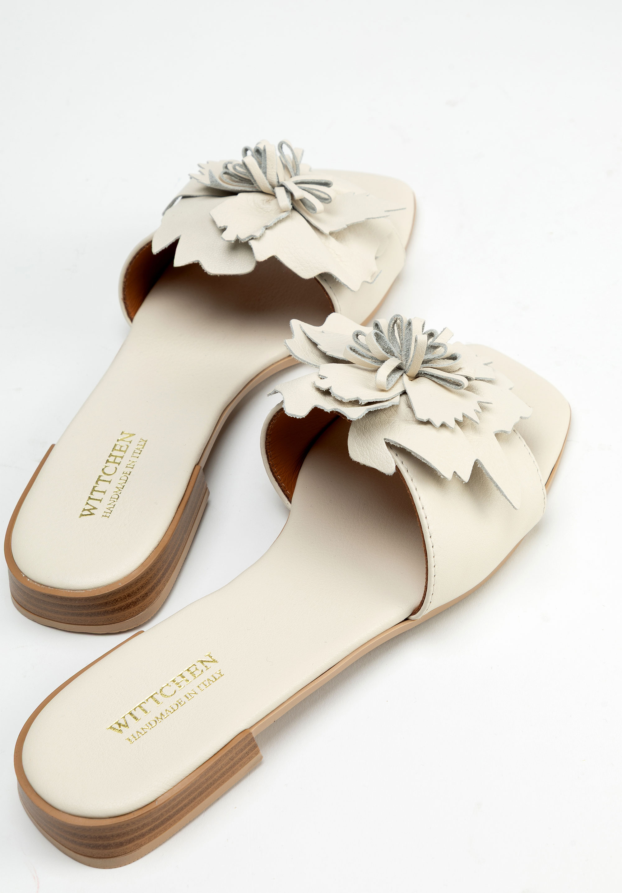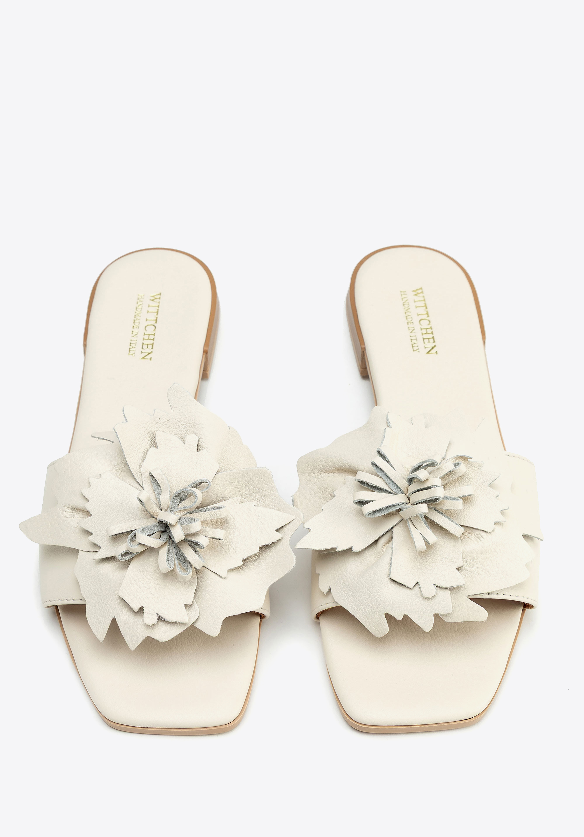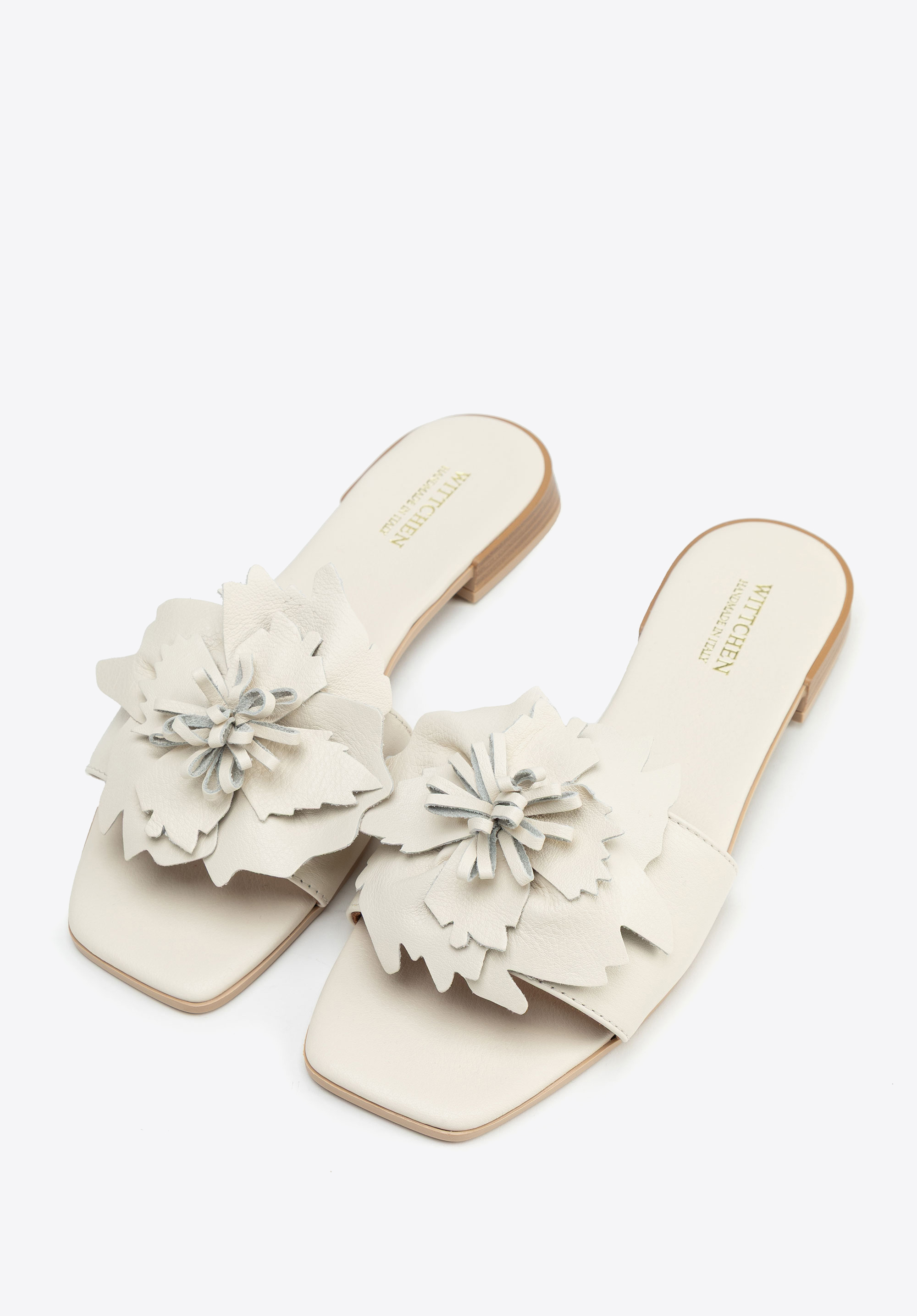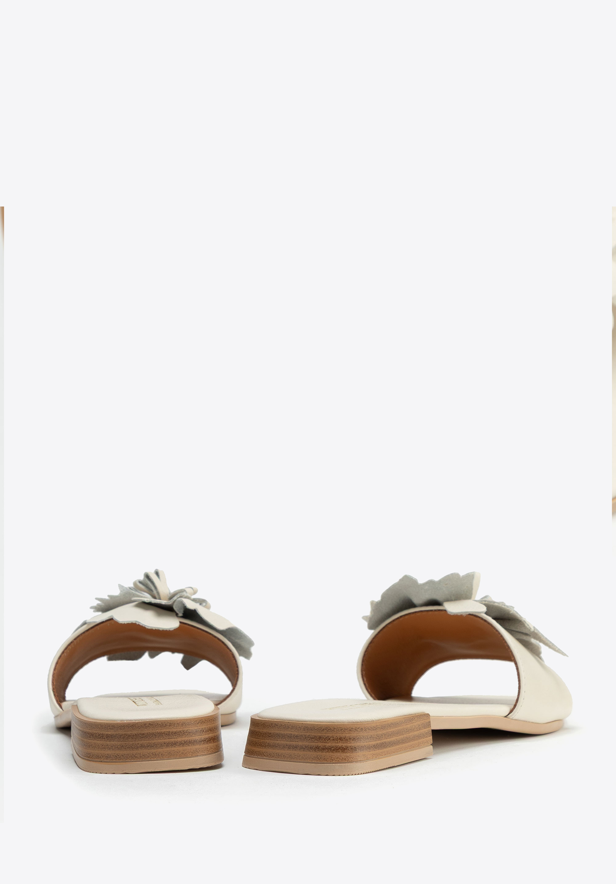 Damen-Pantoletten aus Leder mit Blumenapplikation
