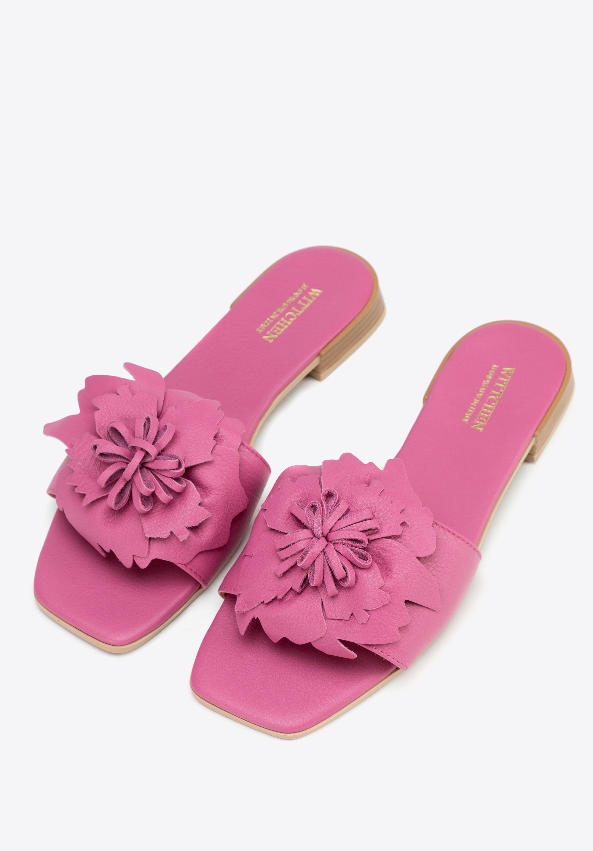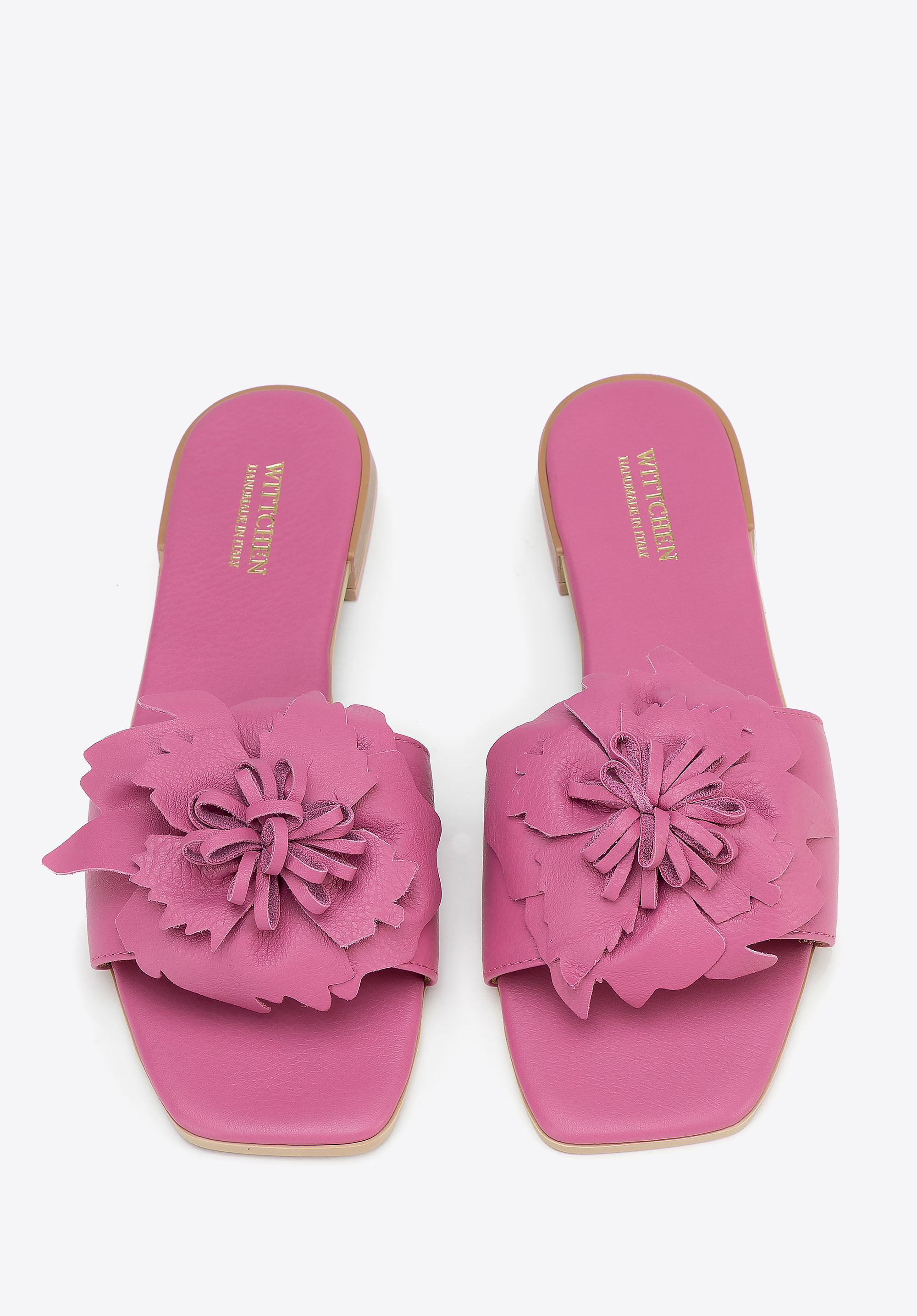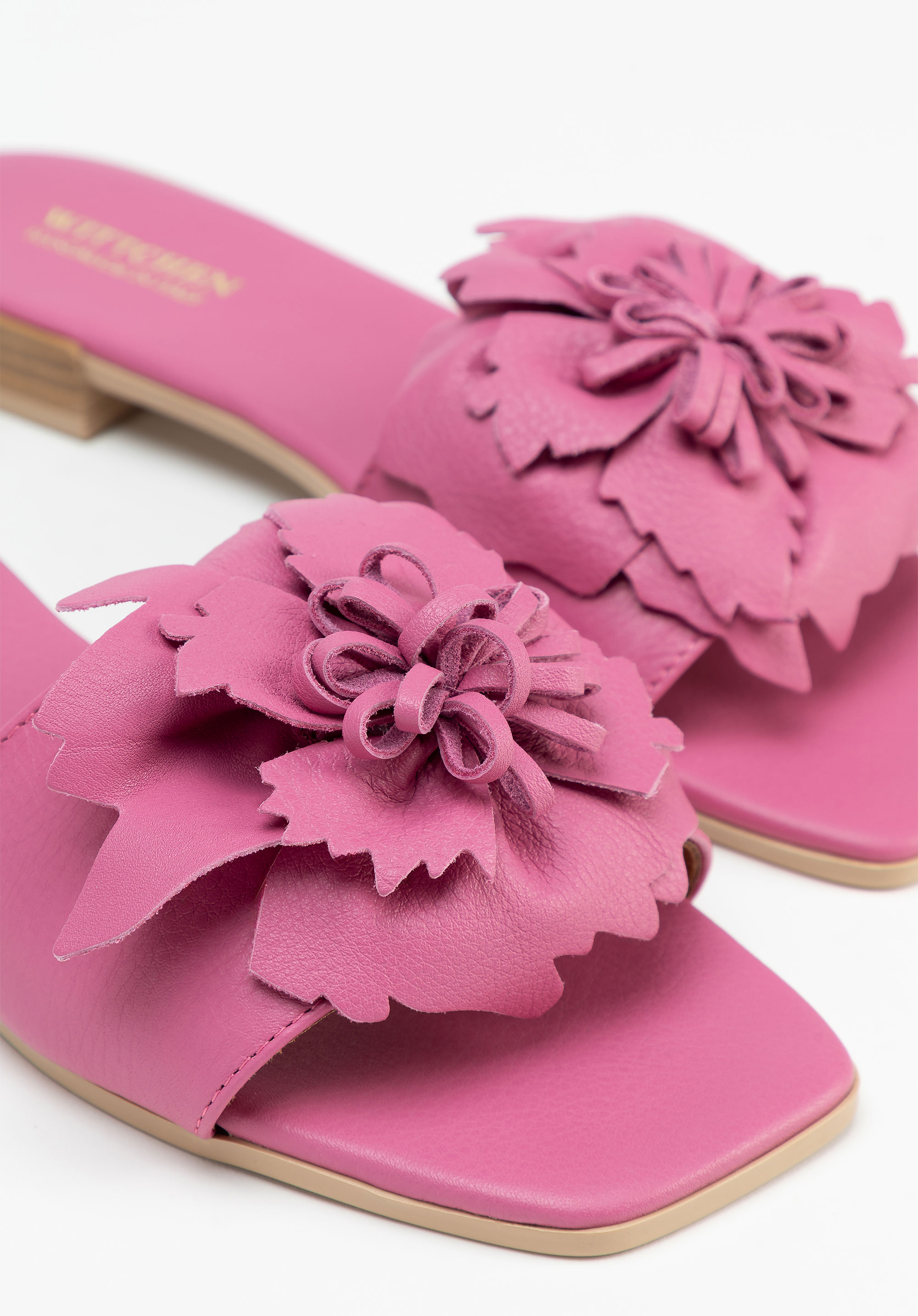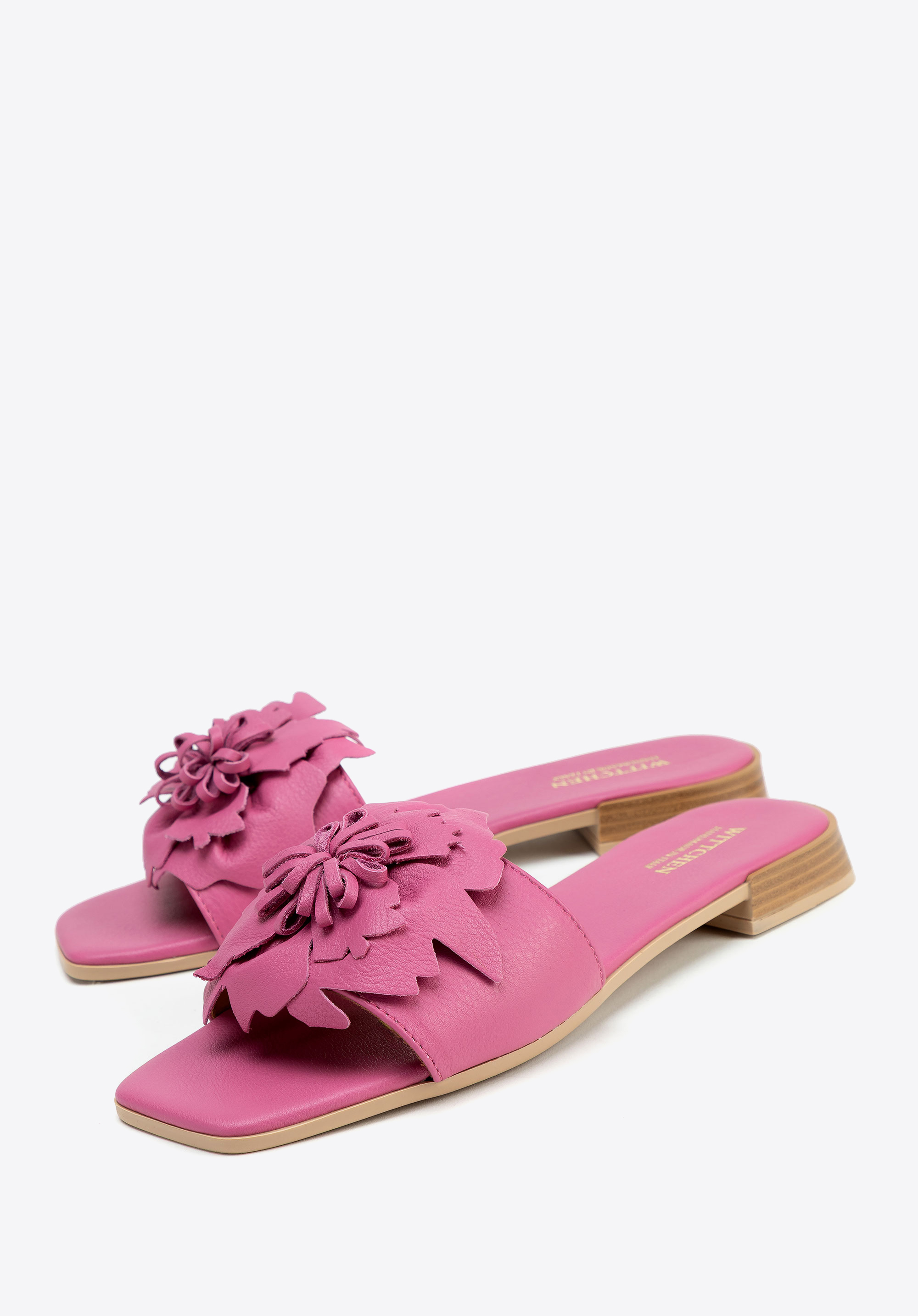 Die Damen-Flip-Flops mit flachem Absatz sind die perfekte Wahl für Frauen, die Wert auf Komfort, Qualität und dezente Eleganz legen. Sie sind aus Naturleder gefertigt und bestechen nicht nur durch ihre sorgfältige Verarbeitung, sondern auch durch einen auffälligen Akzent - dreidimensionale Blumen auf der Vorderseite, die dem Styling einen romantischen Charme verleihen. Die quadratische, offene Zehenpartie und der Schlupfstil garantieren Komfort und einen modischen Look, während die Innensohle und das Futter aus Leder für ganztägigen Tragekomfort sorgen.