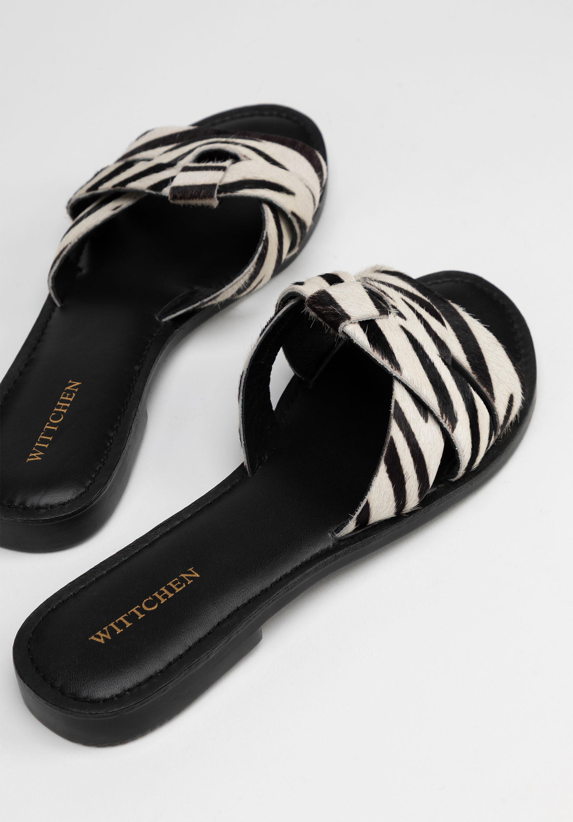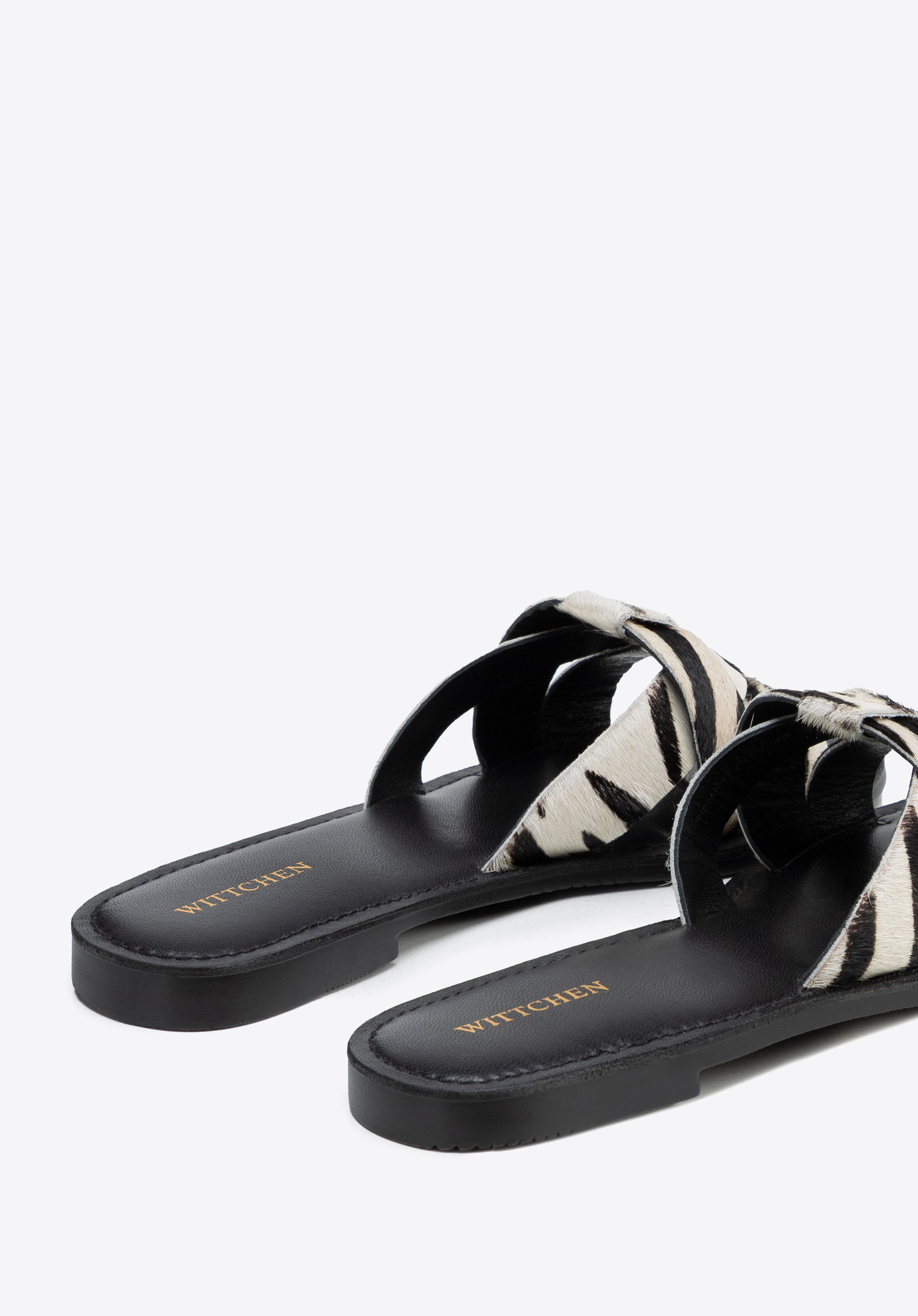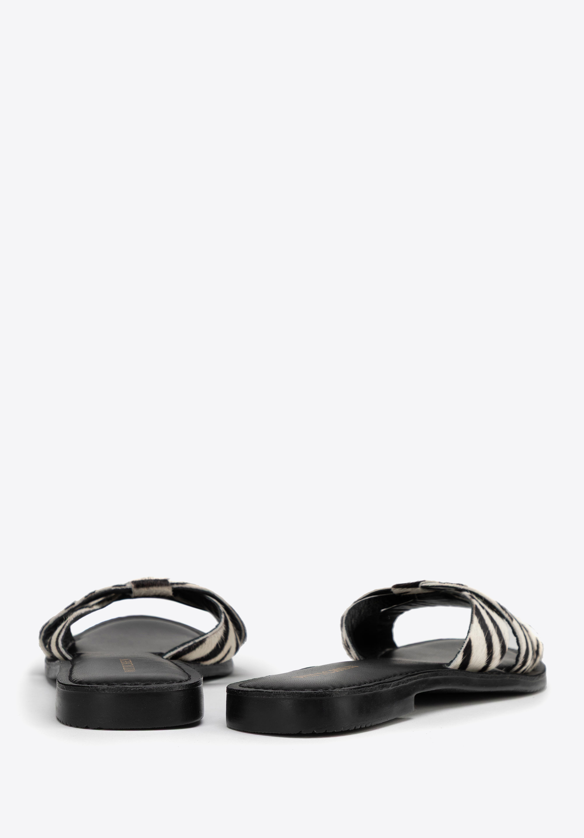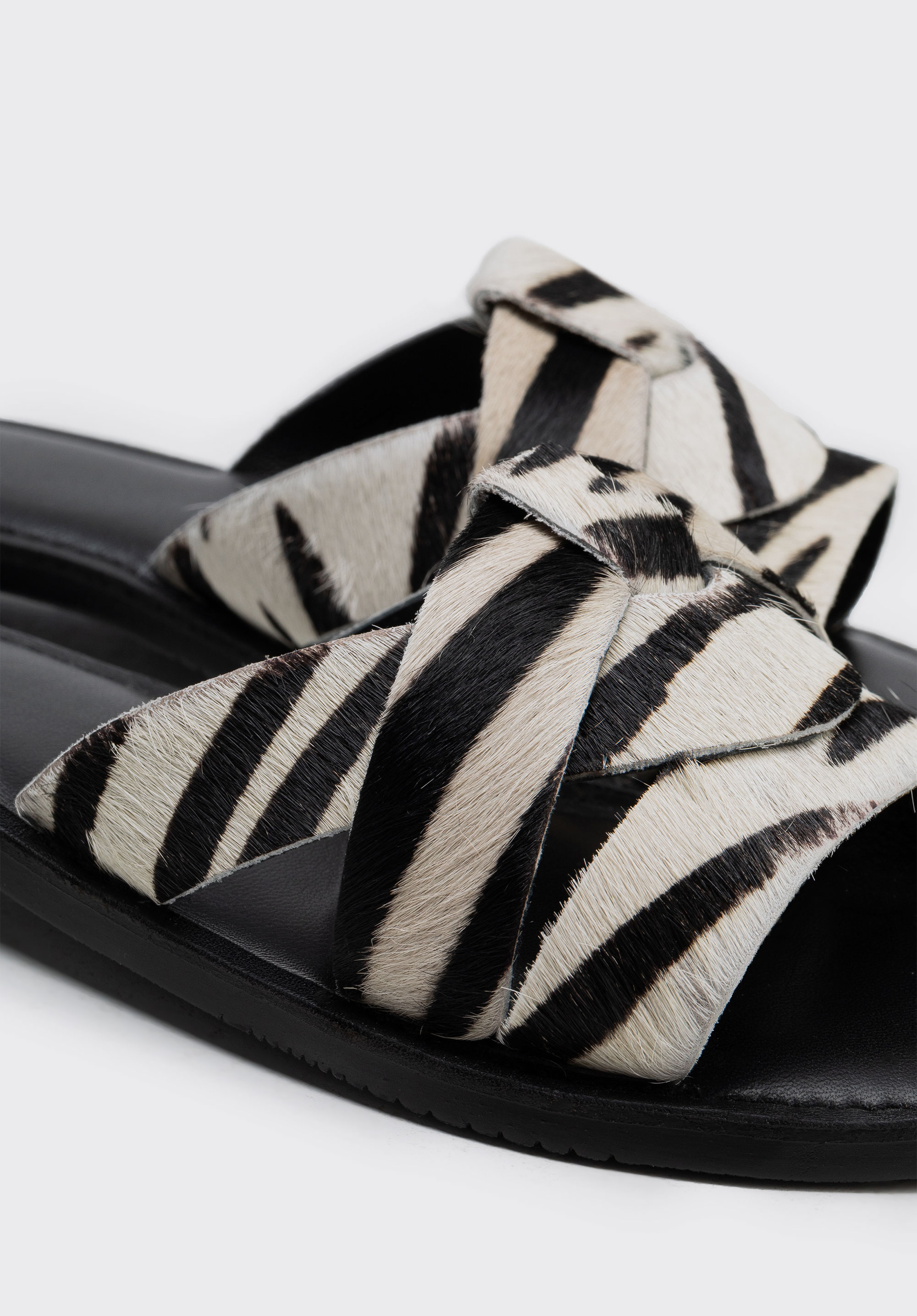 Slide-Sandalen mit behaartem Leder und Animalprint