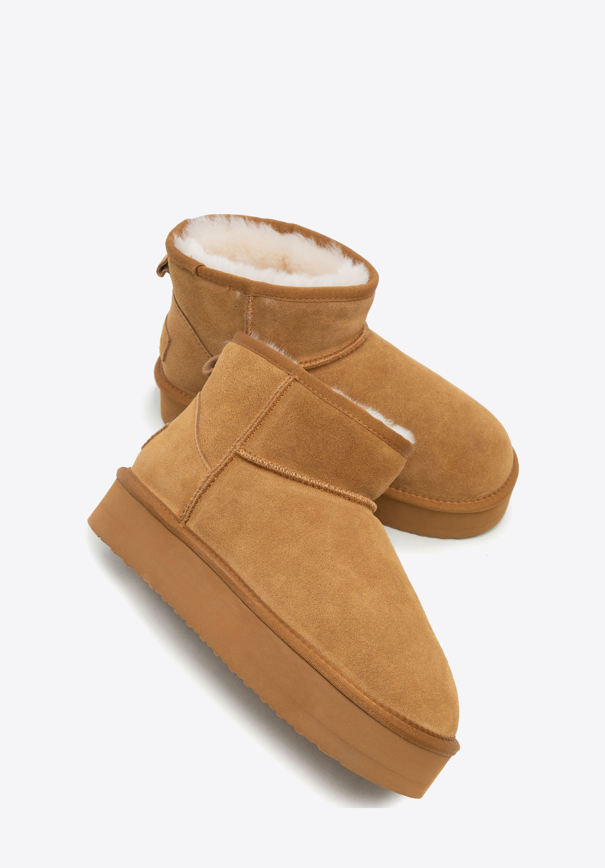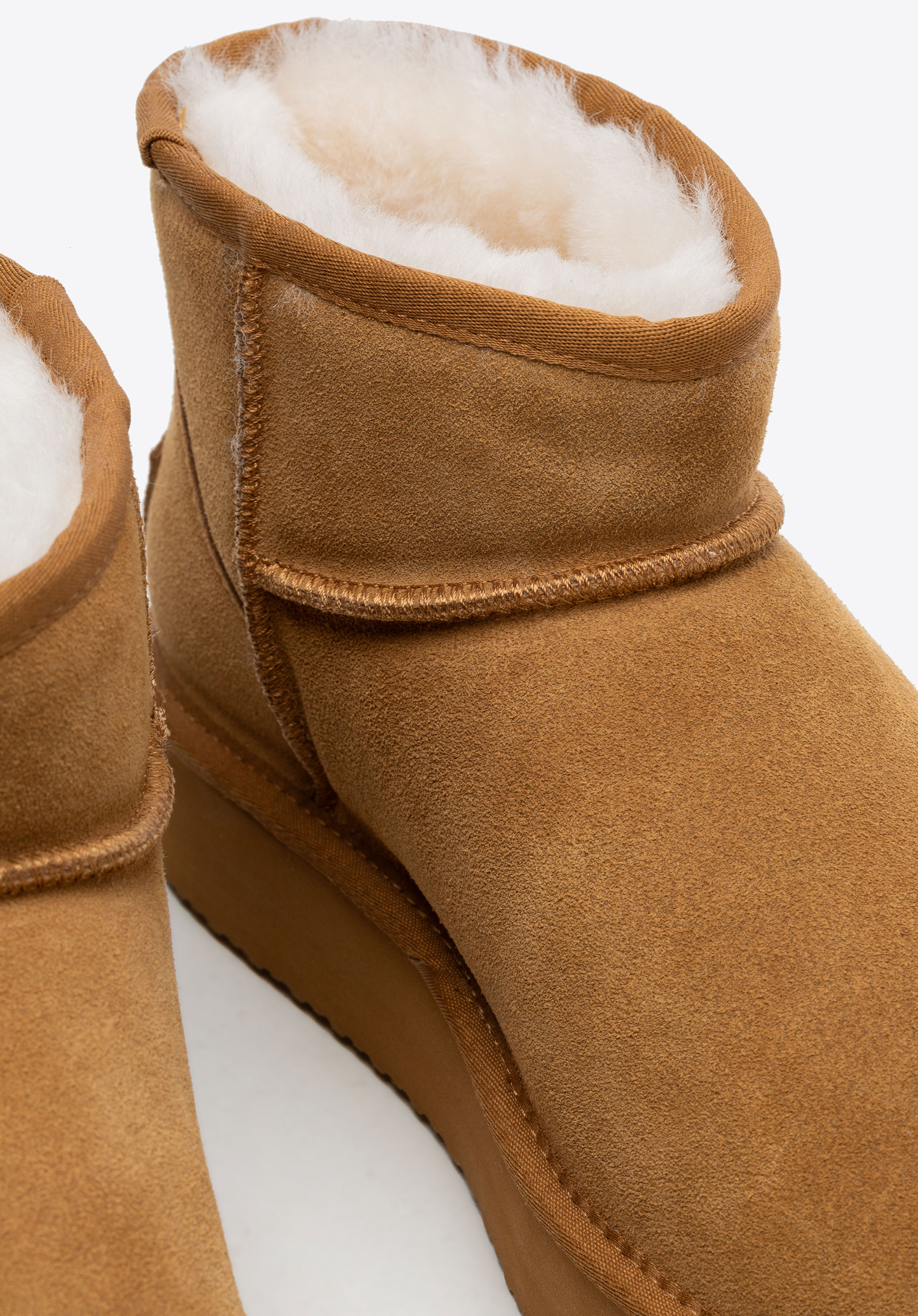 Diese Schneestiefel vereinen Eleganz mit Funktionalität und werden zu einem unverzichtbaren Bestandteil Ihrer Wintergarderobe. Gefertigt aus strapazierfähigem und elegantem Wildleder , passen sie sich perfekt dem Fuß an und sorgen für Komfort bei jedem Schritt. Die Wollinnensohle hüllt Ihre Füße in angenehme Wärme, während das pelzige Futter sie zur perfekten Wahl für kältere Tage macht. Eine leichte Sohle aus anderen Materialien garantiert dank praktischer Rillen Stabilität und Halt. Die klassische , runde Zehenpartie verleiht zeitlosen Charme, während das Slip-On-Design ein schnelles und müheloses Anziehen ermöglicht.