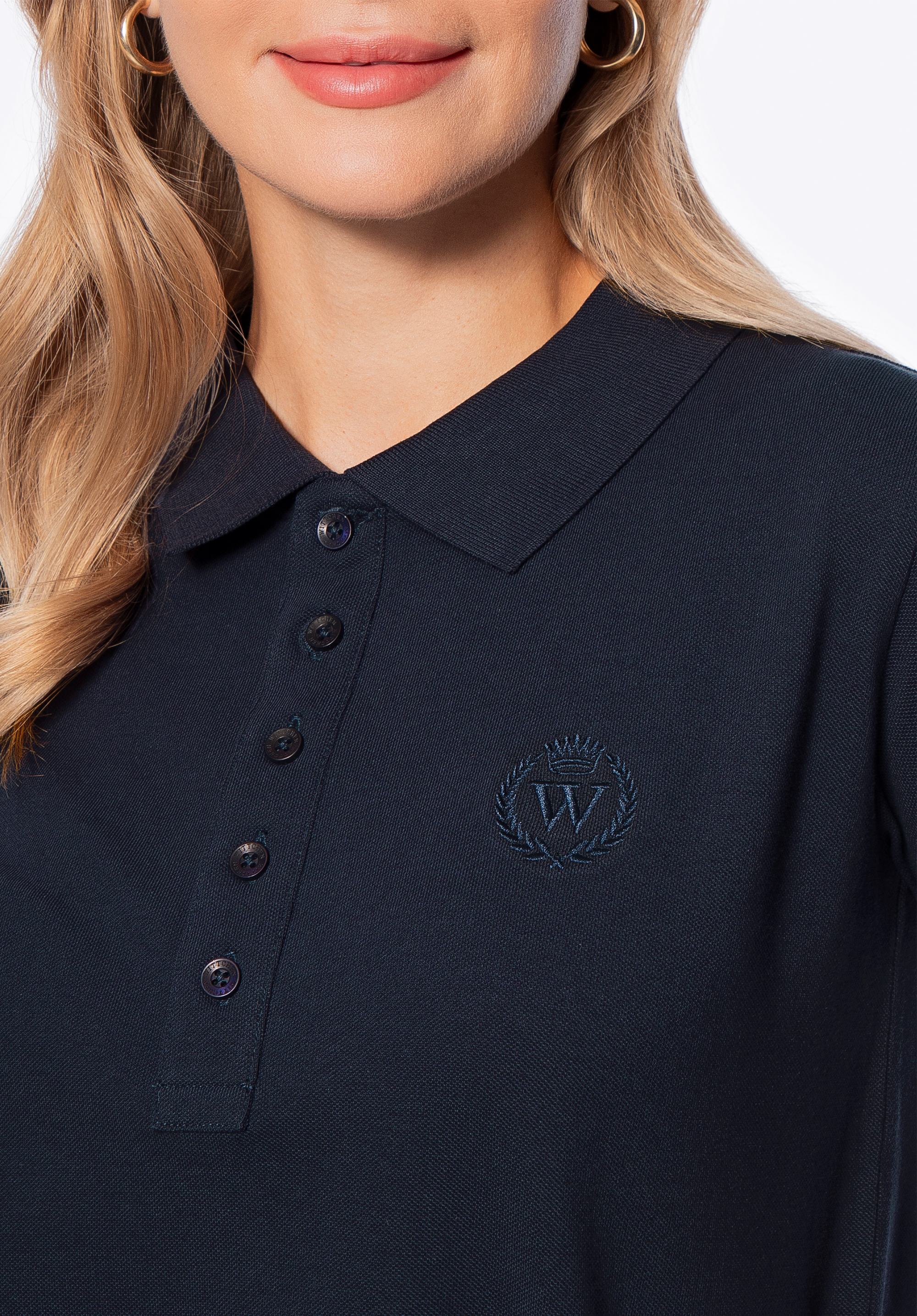 - Details: Das gestickte „W“-Logo mit Lorbeerblatt und Krone, farblich dezent auf das Shirt abgestimmt, ist ein eleganter Akzent, der Ihrer Garderobe einen edlen Charakter verleiht.