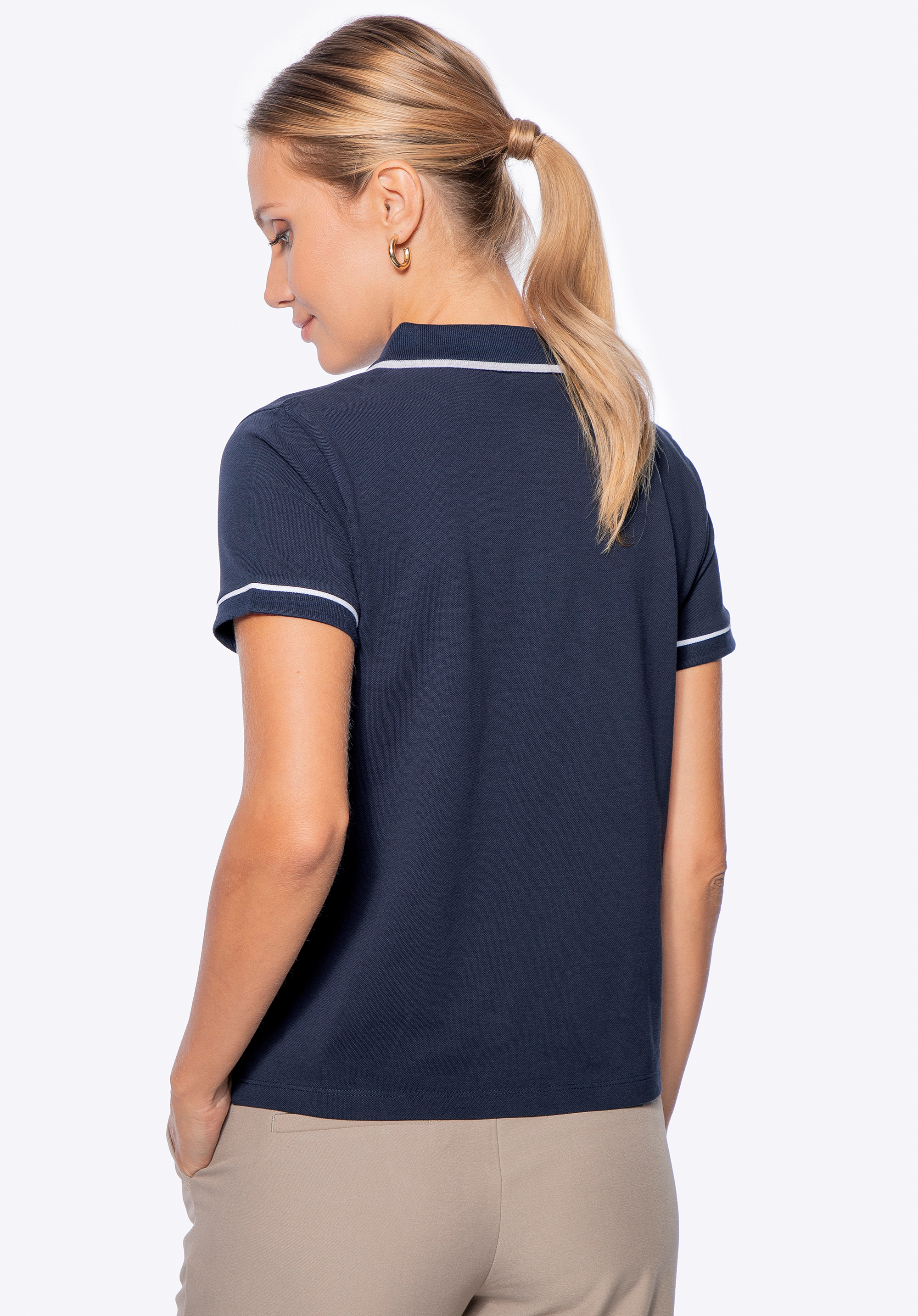 Unser Tipp: Kombinieren Sie das Poloshirt mit einem sportlichen Minirock und weißen Sneakers für einen frischen und energiegeladenen Look. Für legerere Anlässe wählen Sie figurbetonte Jeans, zarte Ballerinas und einen leichten Cardigan mit einer minimalistischen Handtasche .