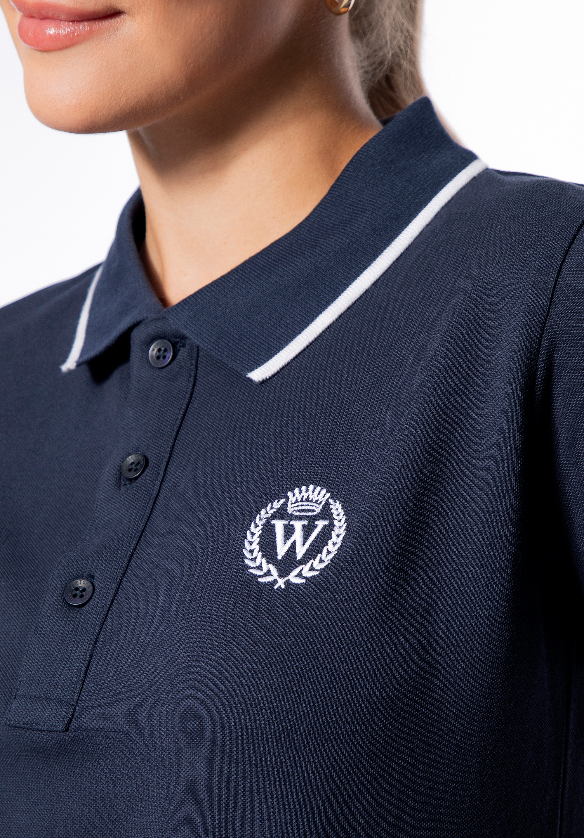 - Details : Gesticktes „W“-Logo mit Lorbeerkranz und Krone in einem Kontrastton, passend zu den Verzierungen – ein Symbol für Vornehmheit und dezente Eleganz.