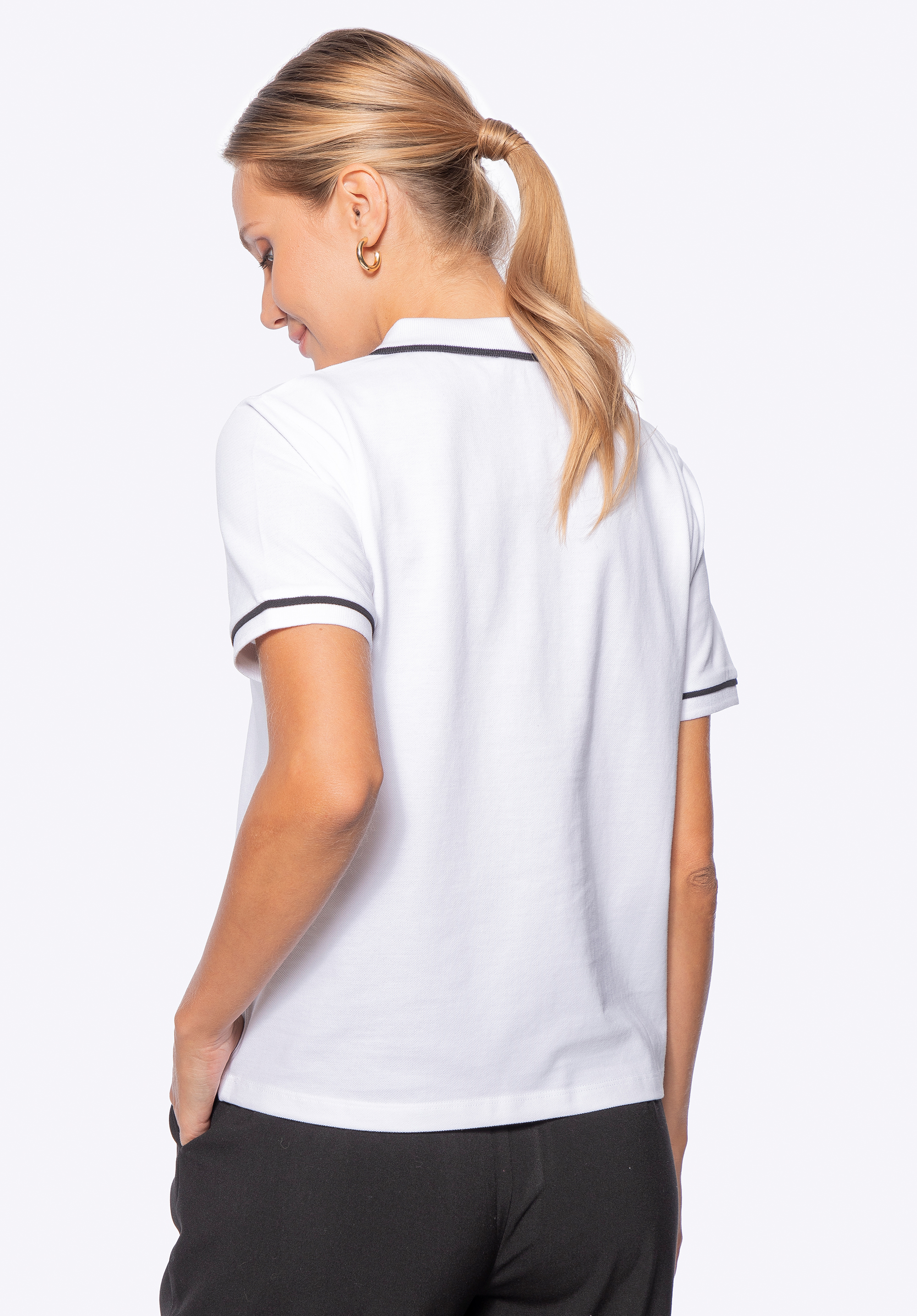 Unser Tipp: Kombinieren Sie das Poloshirt mit einem sportlichen Minirock und weißen Sneakers für einen frischen und energiegeladenen Look. Für legerere Anlässe wählen Sie figurbetonte Jeans, zarte Ballerinas und einen leichten Cardigan mit einer minimalistischen Handtasche .