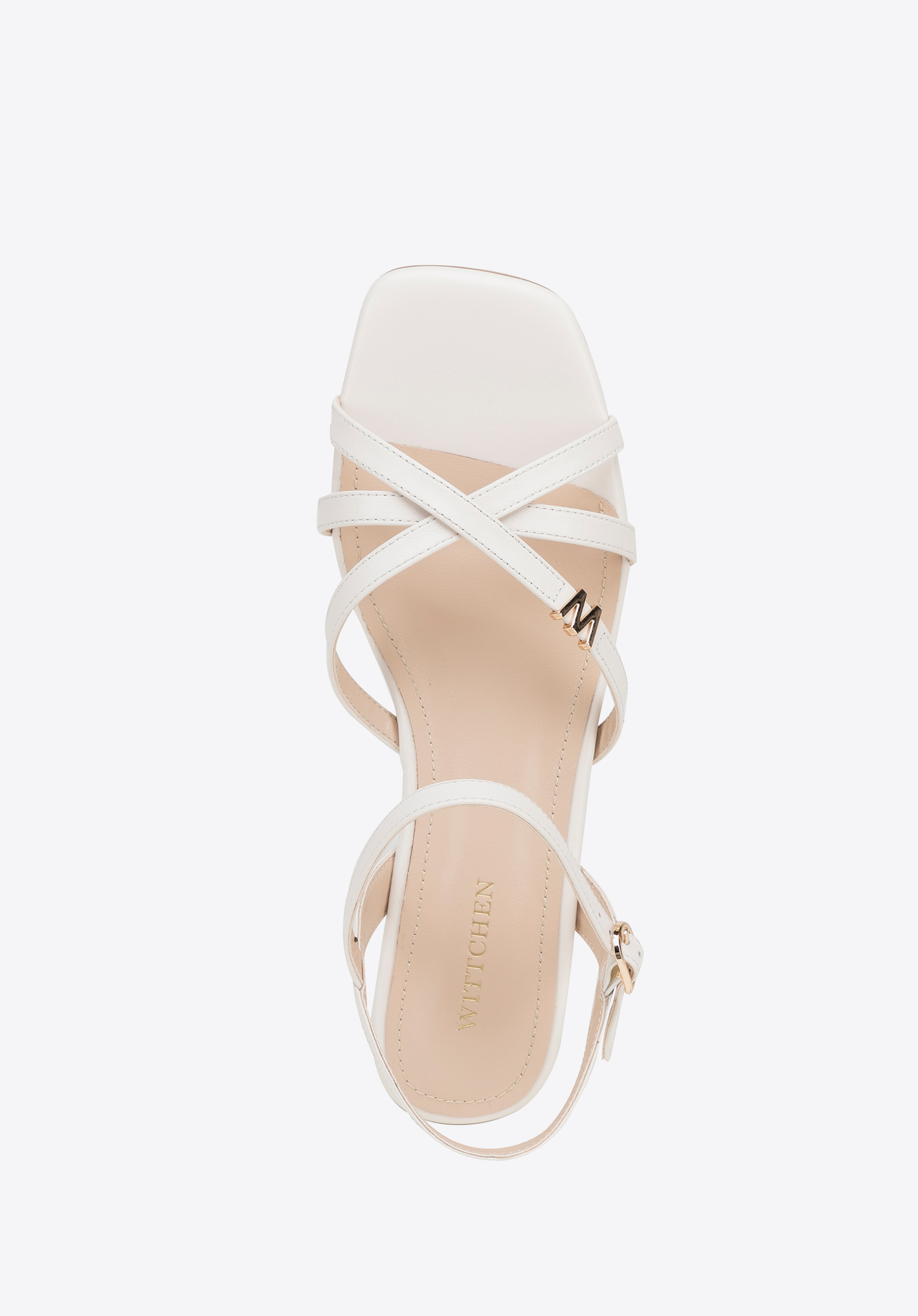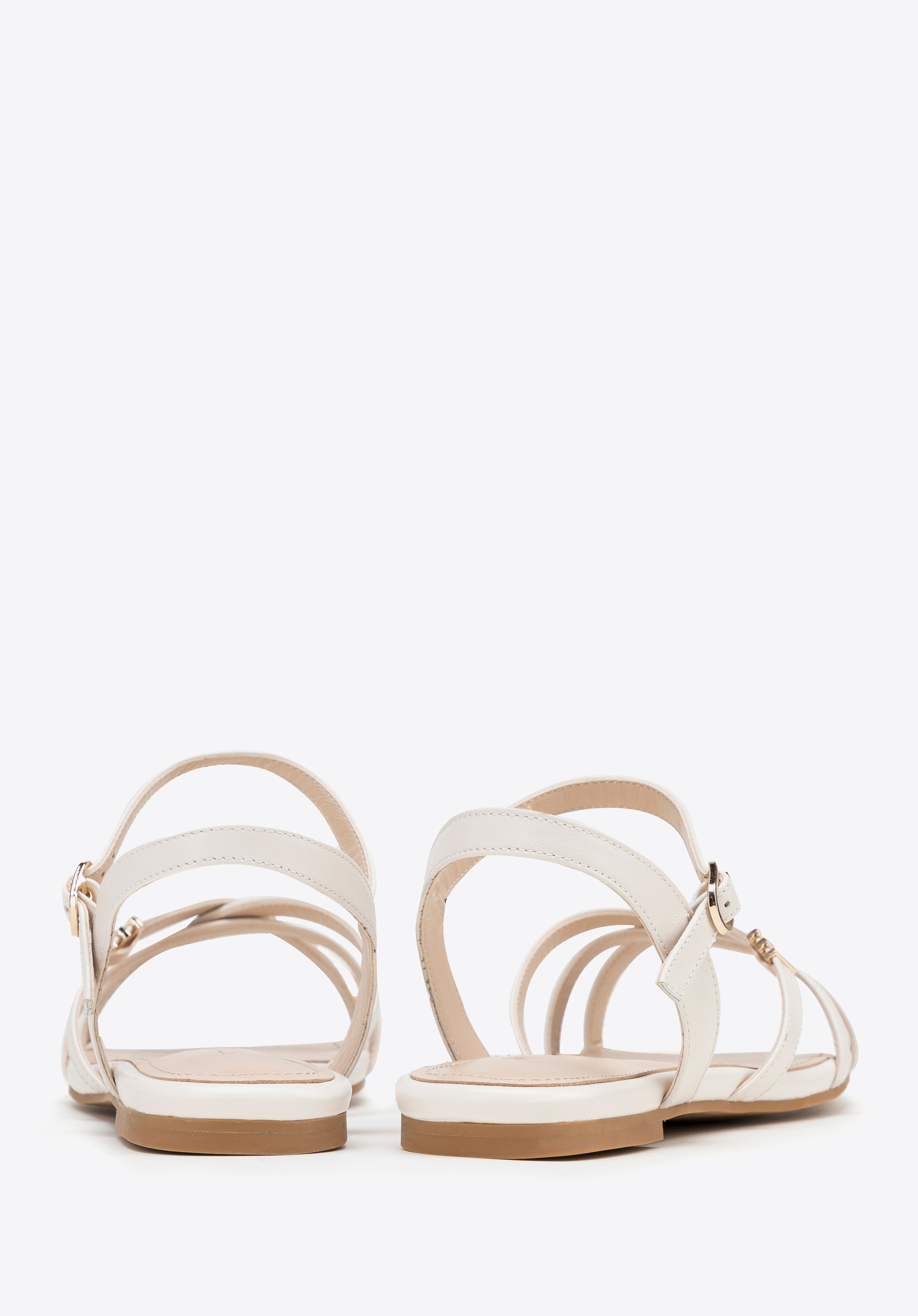 Damen-Sandalen aus Leder mit Kreuzriemen Farbe: Creme