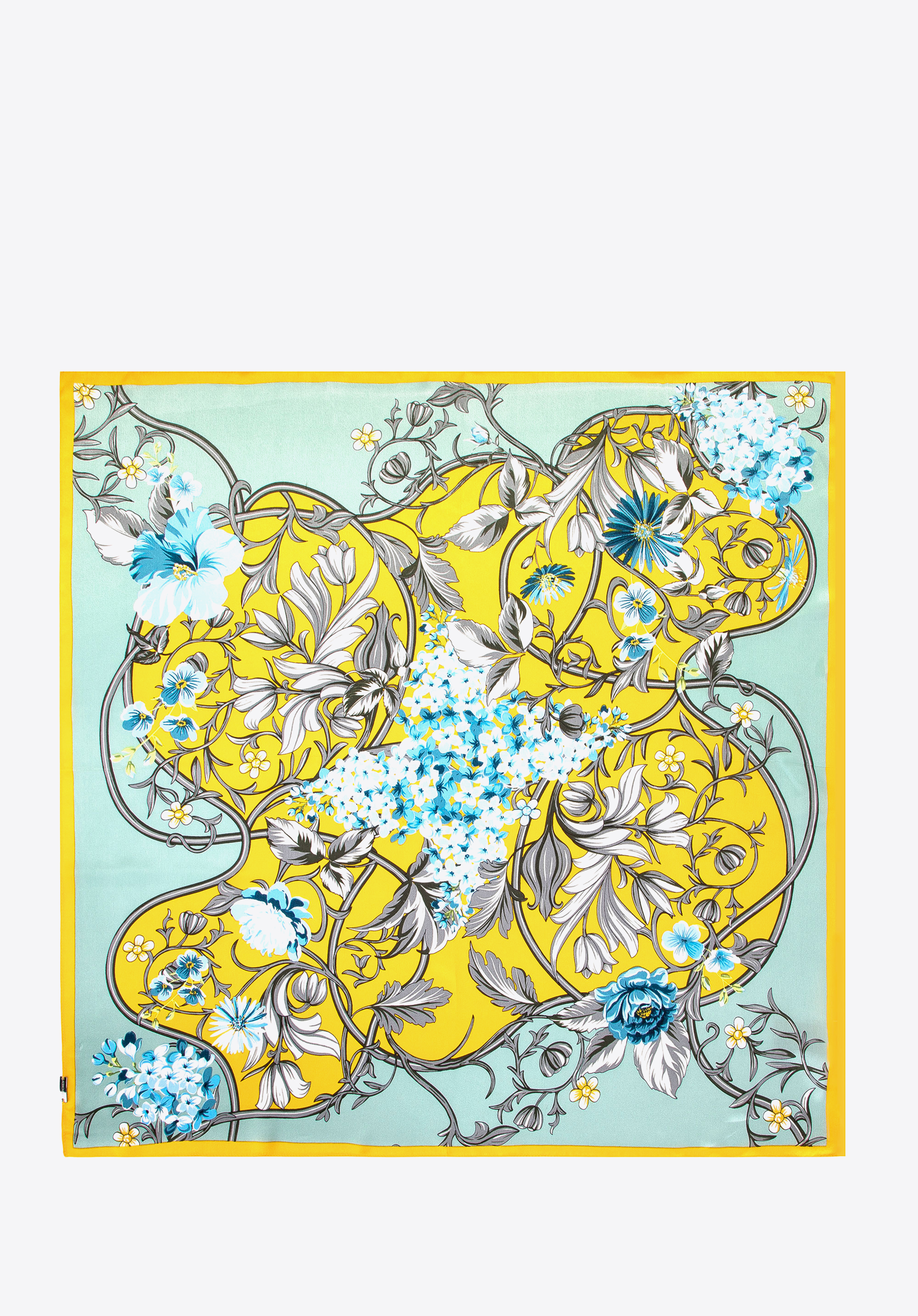 Unser zarter Seidentuch mit atemberaubendem Blumenmuster ist die perfekte Wahl für Frauen, die ihrem Outfit einen Hauch von Eleganz und Frische verleihen möchten. Er ist aus feinster Seide gefertigt und begeistert mit seiner glatten Textur und dezentem Glanz, was seinen luxuriösen Reiz unterstreicht. Das florale Design mit zart ineinander verwobenen Blüten verleiht ihr eine leichte und außergewöhnlich charmante Note. Dieses zeitlose Accessoire eignet sich sowohl für den Alltag als auch für formellere Anlässe.