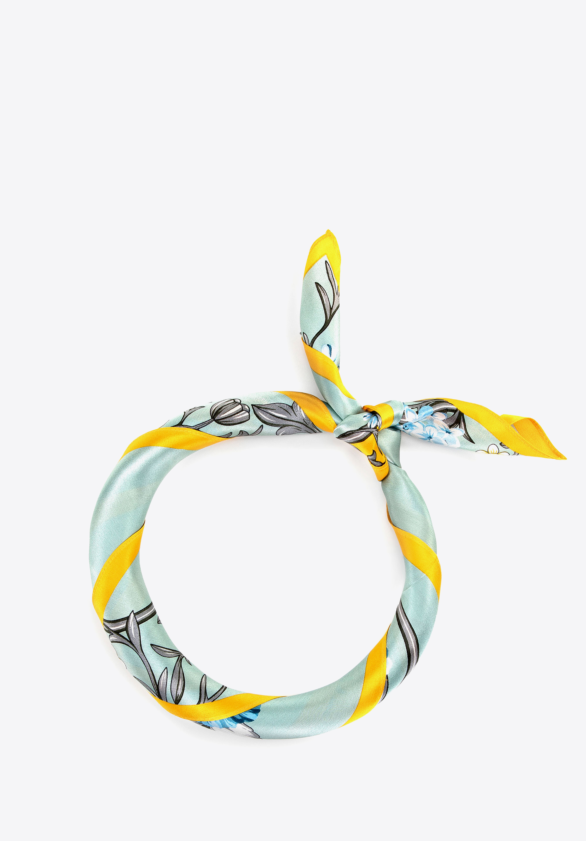 Kombinieren Sie ihn mit einem leichten Kleid oder einer Bluse in neutralen Tönen, um Ihrem Look eine frische und originelle Note zu verleihen. Binden Sie ihn um den Hals oder verwenden Sie ihn als schickes Accessoire am Griff Ihrer Handtasche, um Ihrem Outfit eine subtile florale Note zu verleihen.