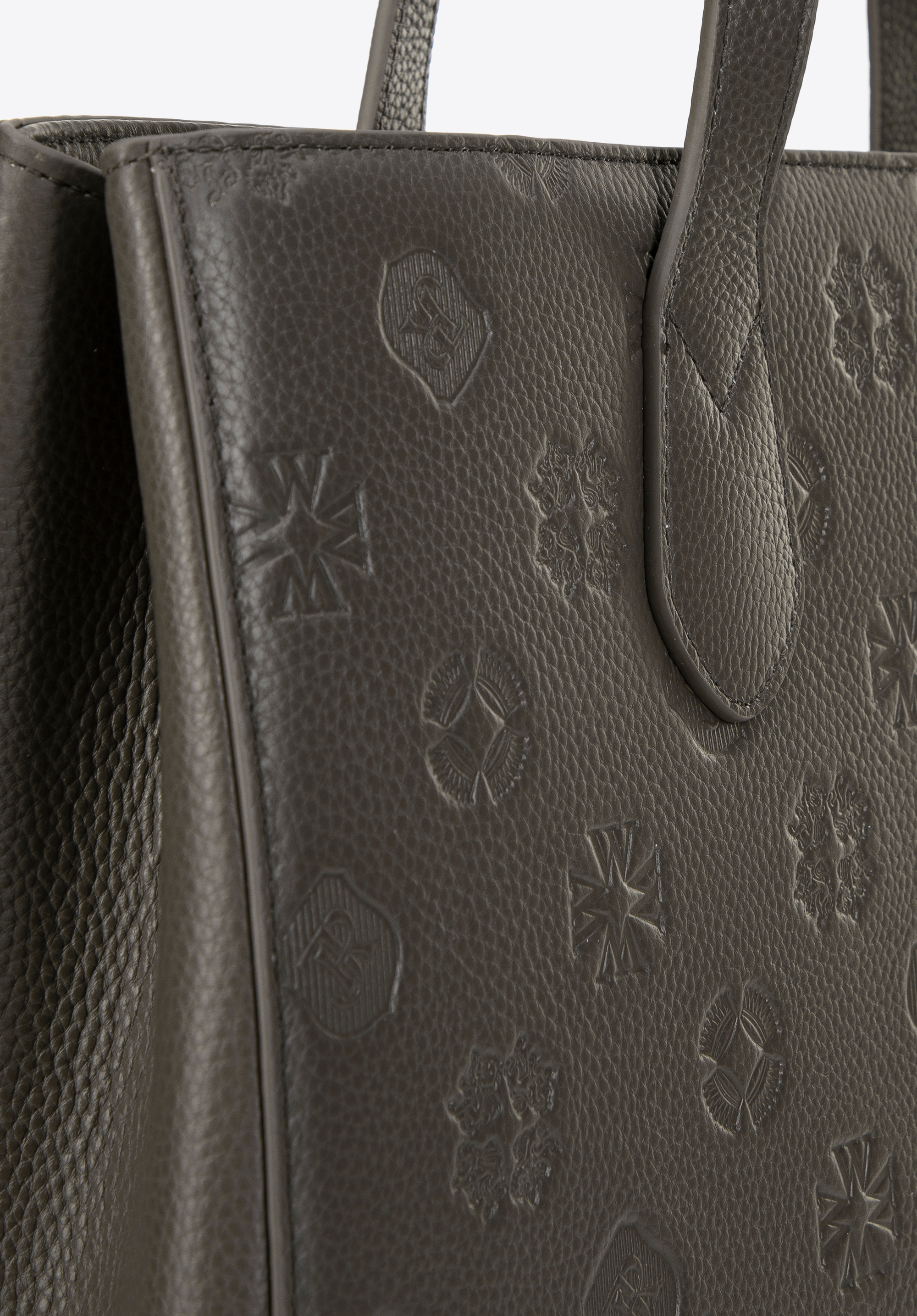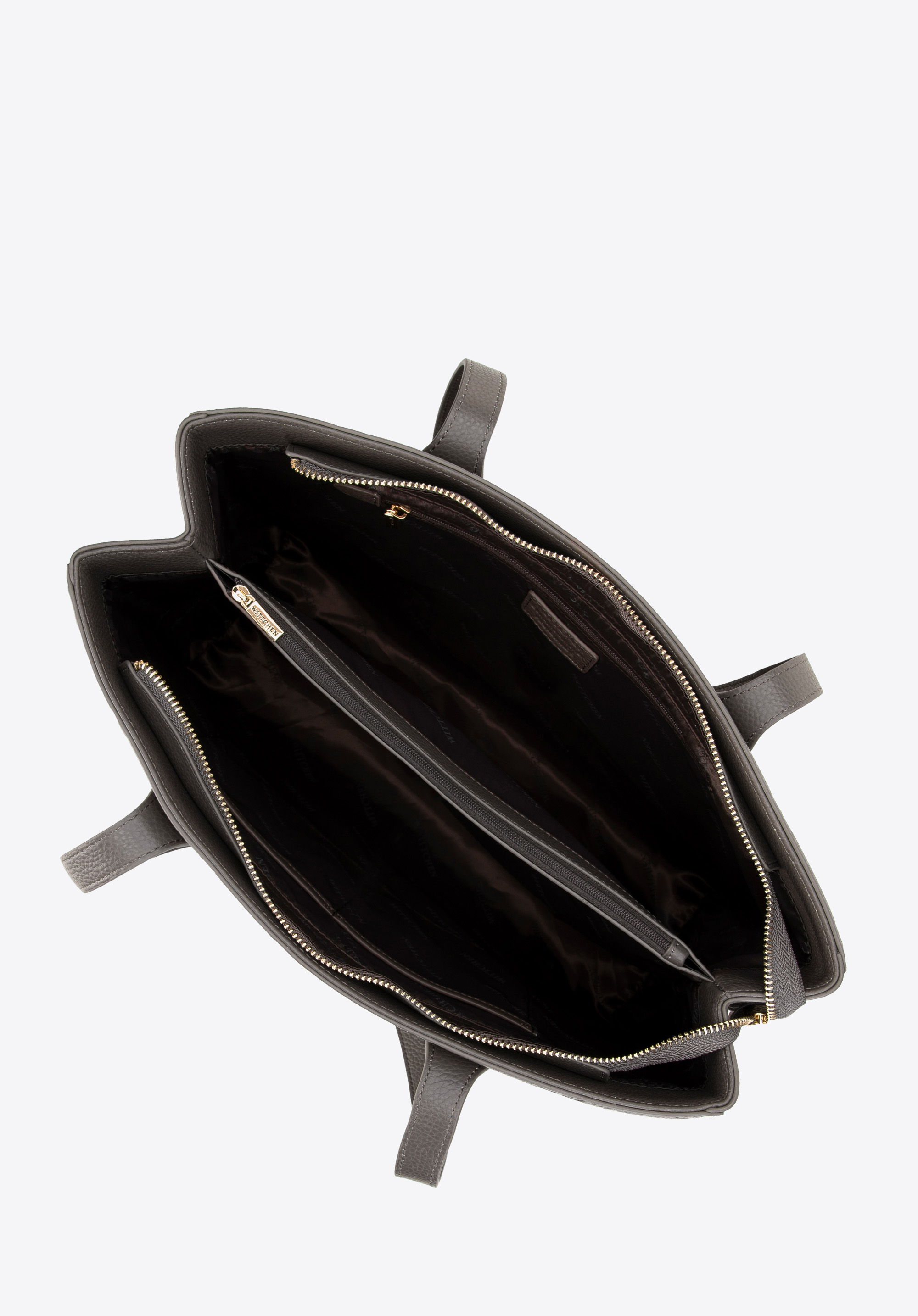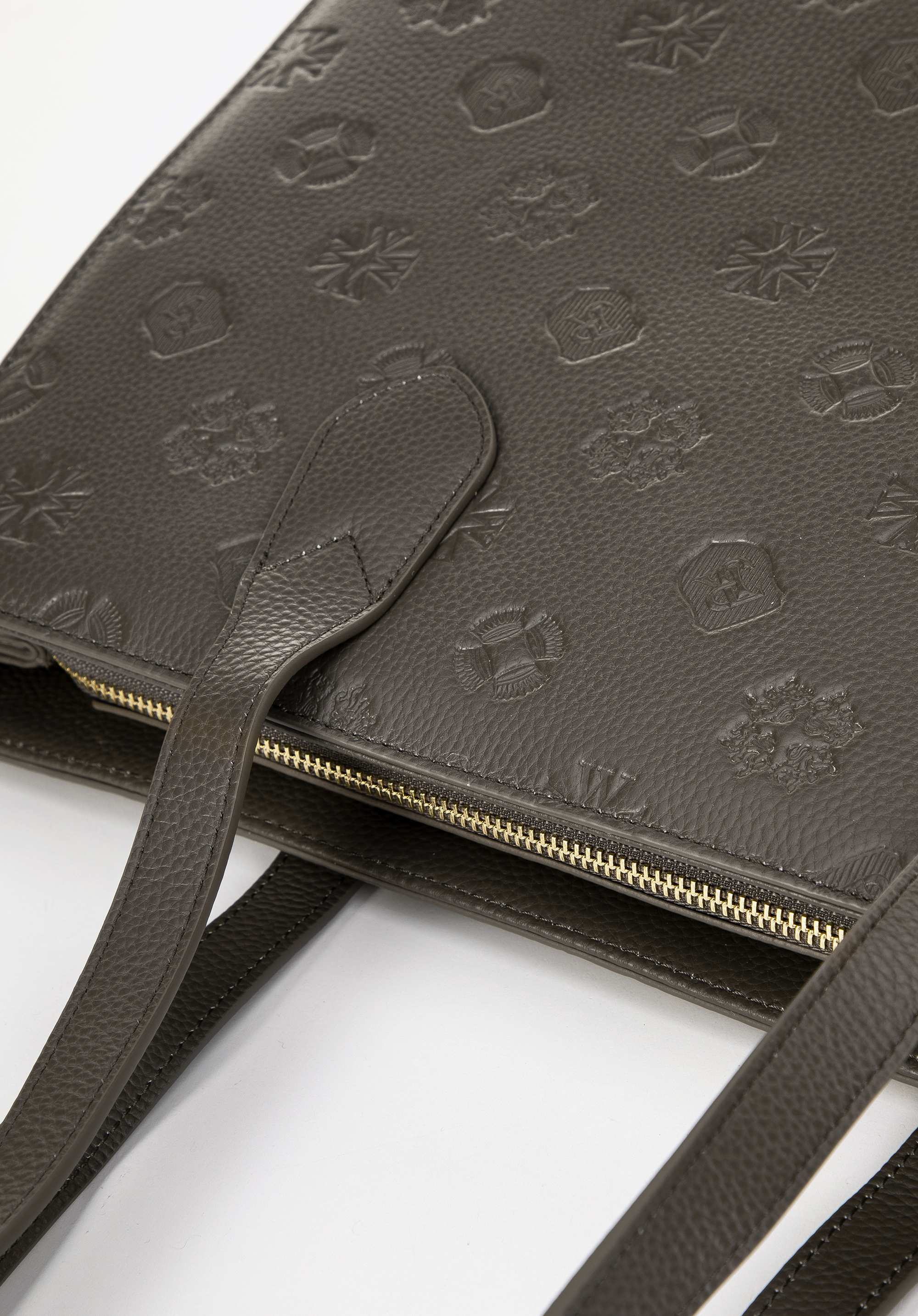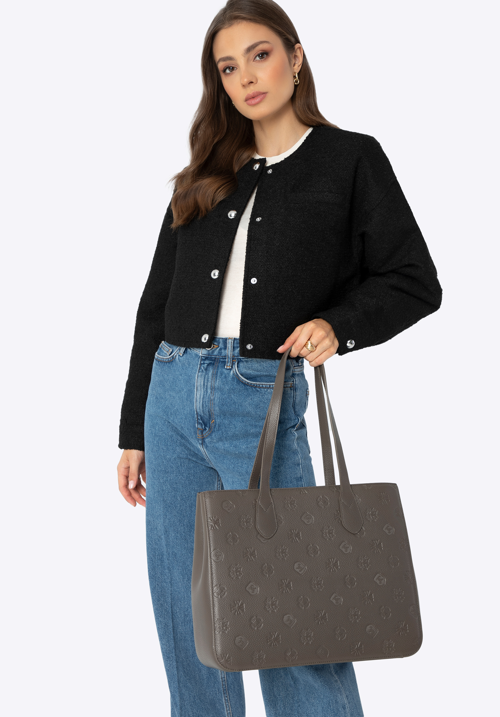 Entdecken Sie außergewöhnlichen Stil und Funktionalität mit unserer Handtasche aus der Elegance-Kollektion . Sie ist aus natürlichem Leder gefertigt, das gegen mechanische Beschädigungen widerstandsfähig ist, sodass Sie diese Handtasche viele Saisons lang begleiten wird. Die Shopper-Tasche ist auf maximalen Komfort ausgelegt. Sie verfügt über zwei Tragegriffe , die beim Tragen in der Hand oder über der Schulter für Komfort sorgen, und ein Reißverschluss gewährleistet die Sicherheit der aufbewahrten Gegenstände. Das Innere der Tasche besteht aus zwei geräumigen Fächern , die durch ein Reißverschlussfach getrennt sind, das zusätzlichen Platz für kleine Gegenstände bietet. Die Handtasche verfügt über zwei kleine offene Fächer und ein Reißverschlussfach , in denen wertvolle Gegenstände sicher aufbewahrt werden können. Ein robuster Boden garantiert Stabilität und Schutz des Inhalts. Zusätzlich unterstreicht das geprägte WITTCHEN-Monogramm ihre Exklusivität und ihren einzigartigen Charakter.