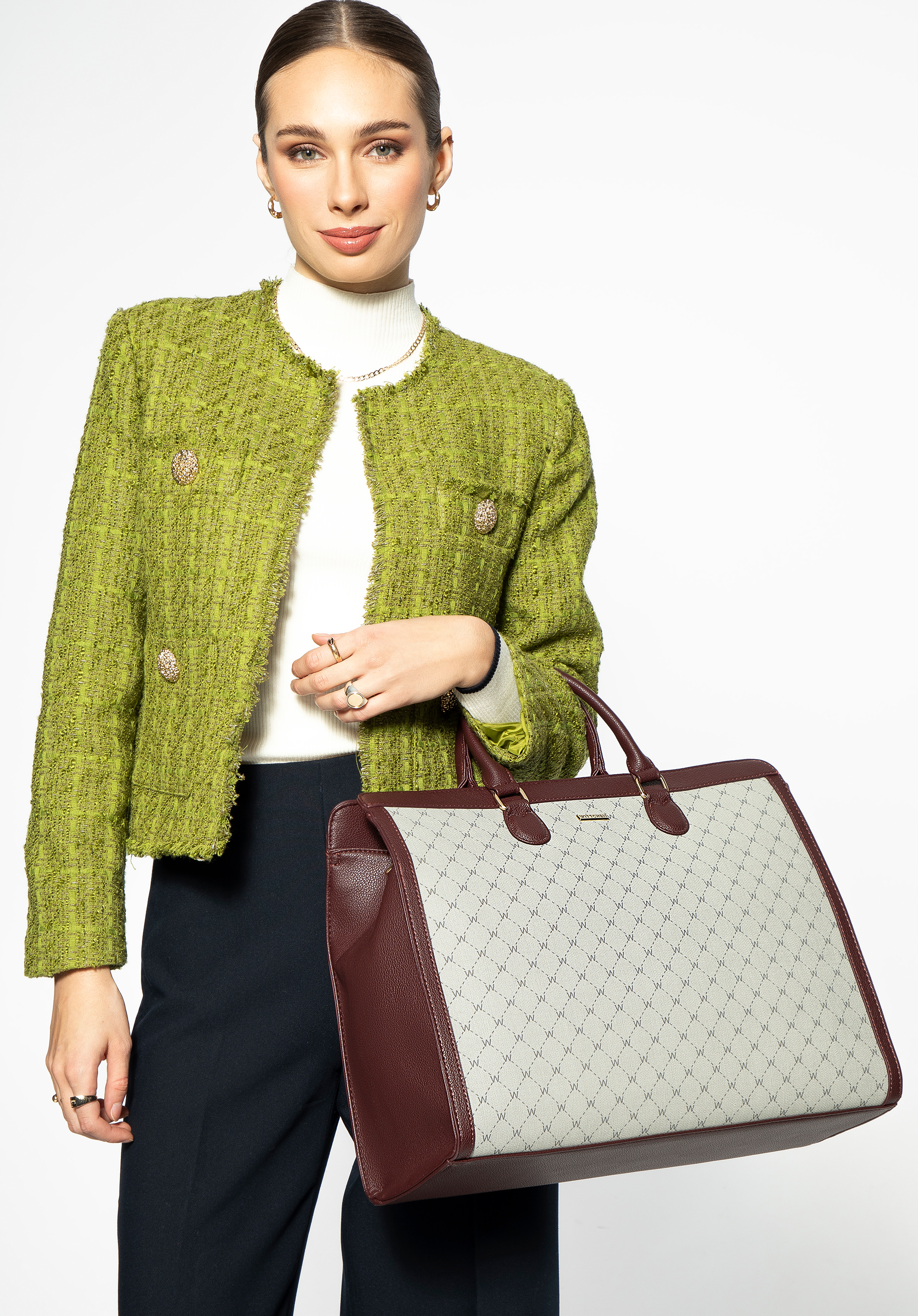 Entdecken Sie Eleganz und Funktionalität mit unserer Shopper-Tasche für Damen! Diese stilvolle Shopper-Tasche kombiniert modernes Design mit Funktionalität und ist damit die perfekte Wahl für jede Frau. Sie ist aus Kunstleder gefertigt und daher nicht nur schön, sondern auch pflegeleicht. Das stilvolle Monogramm-Design zieht die Aufmerksamkeit auf sich und verleiht jedem Outfit eine edle Note. Dank des praktischen Innenraums mit mehreren Taschen haben Sie schnellen Zugriff auf alle wichtigen Gegenstände. Der abnehmbare, verstellbare Riemen und die bequemen Griffe sorgen für einfaches Tragen im Alltag.