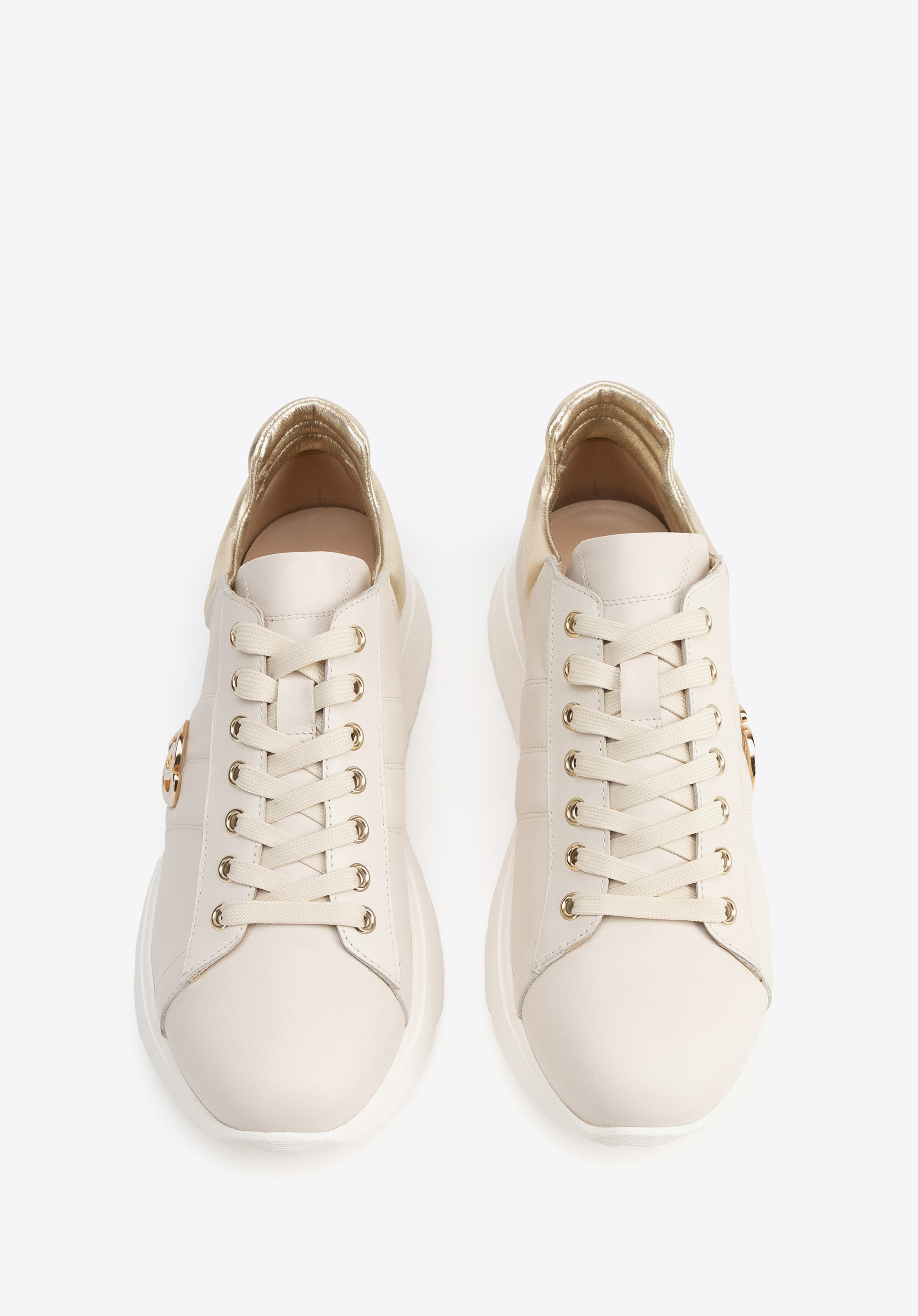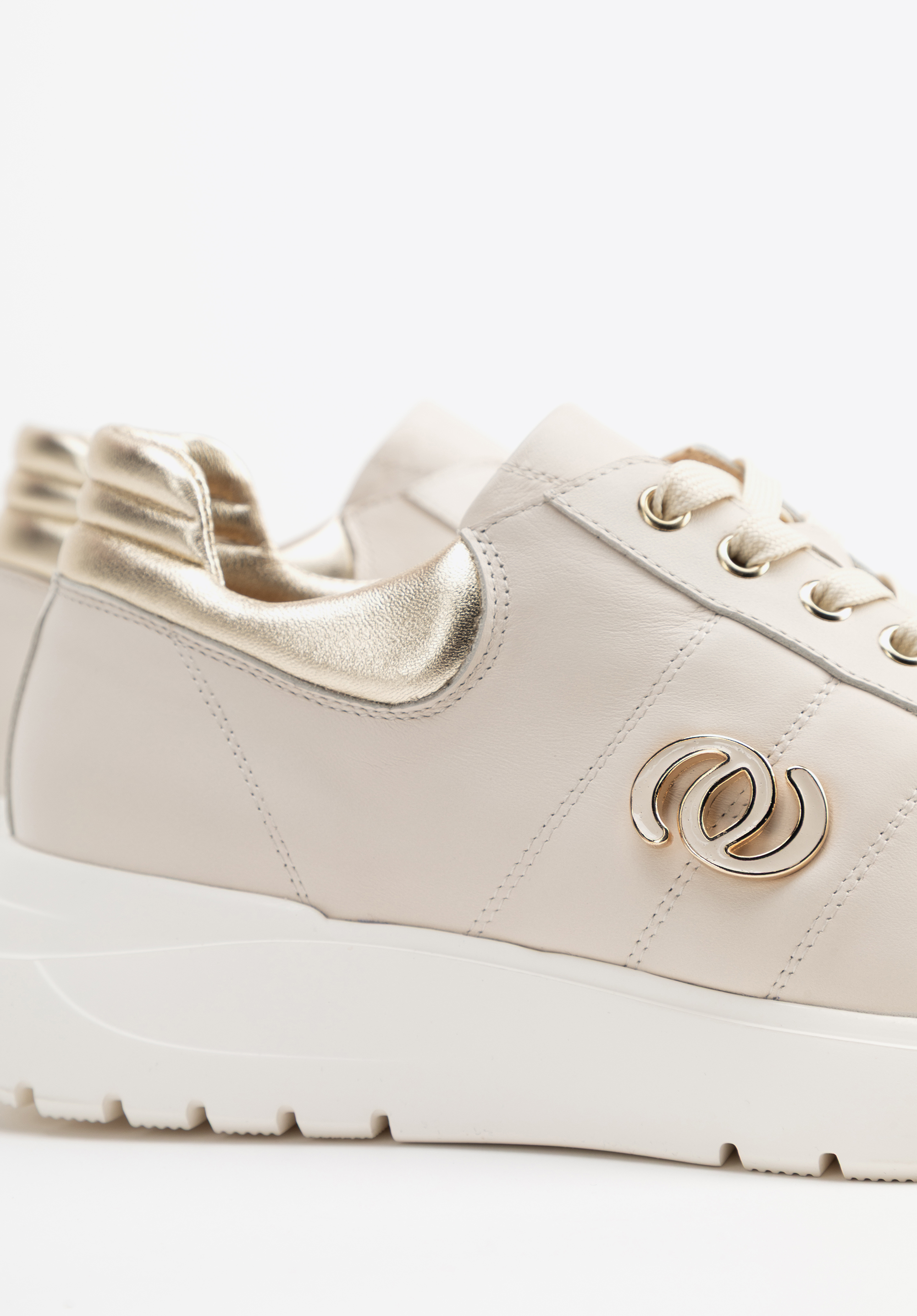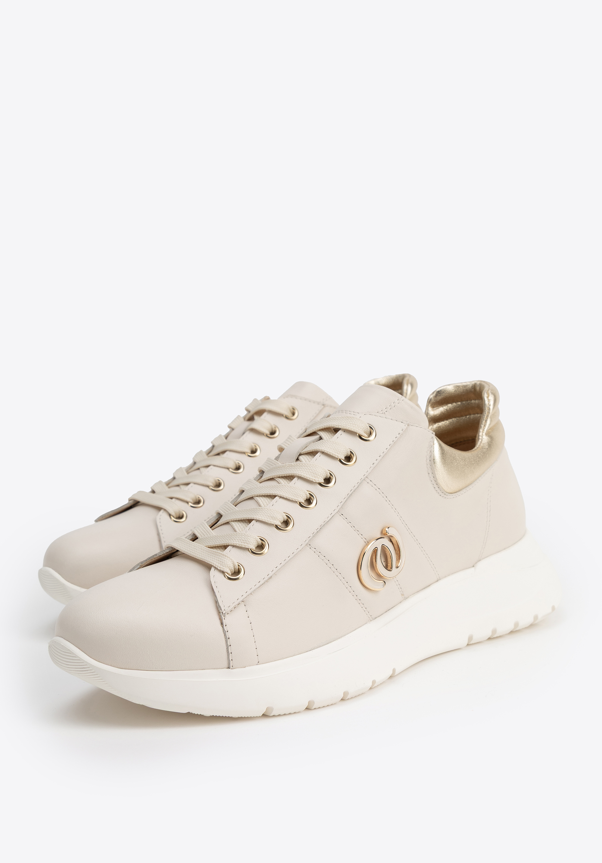 Steigern Sie Ihren Komfort mit diesen Damen-Sneakern , die Eleganz mit Alltagstauglichkeit vereinen. Gefertigt aus Naturleder , bestechen sie mit goldfarbenen Akzenten und verleihen ihnen einen modernen und zugleich edlen Look. Die zarten Nähte am Obermaterial verleihen einen raffinierten Touch, während metallische Details einen dezenten, urbanen Glanz verleihen. Die Gummi-Plateausohle bietet sowohl herausragenden Style als auch ganztägigen Komfort und Stabilität.