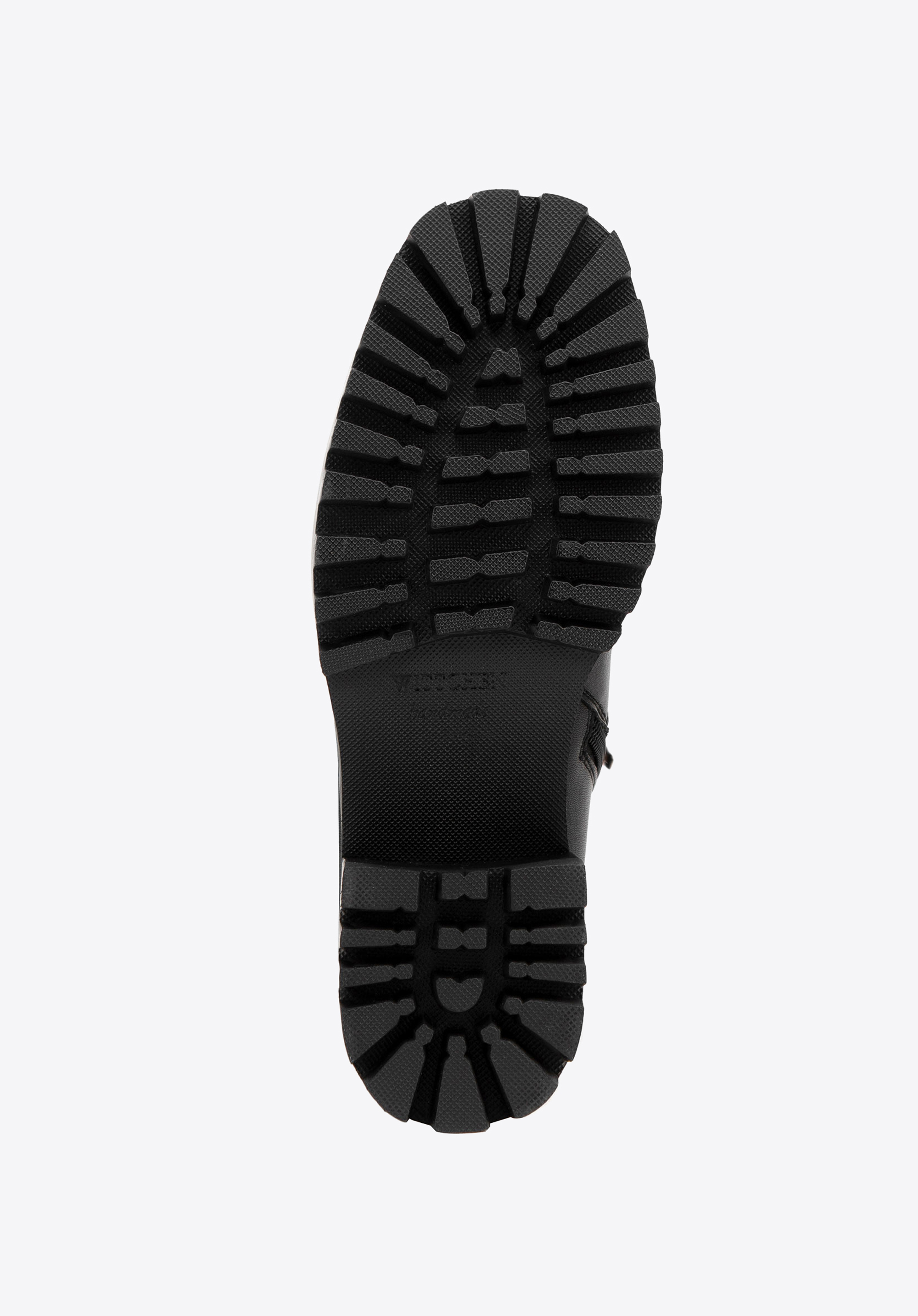 - Sohle : Die Stollensohle bietet zuverlässigen Halt auf unterschiedlichem Gelände, während der robuste Blockabsatz sowohl Stabilität als auch einen Hauch von Eleganz bietet.