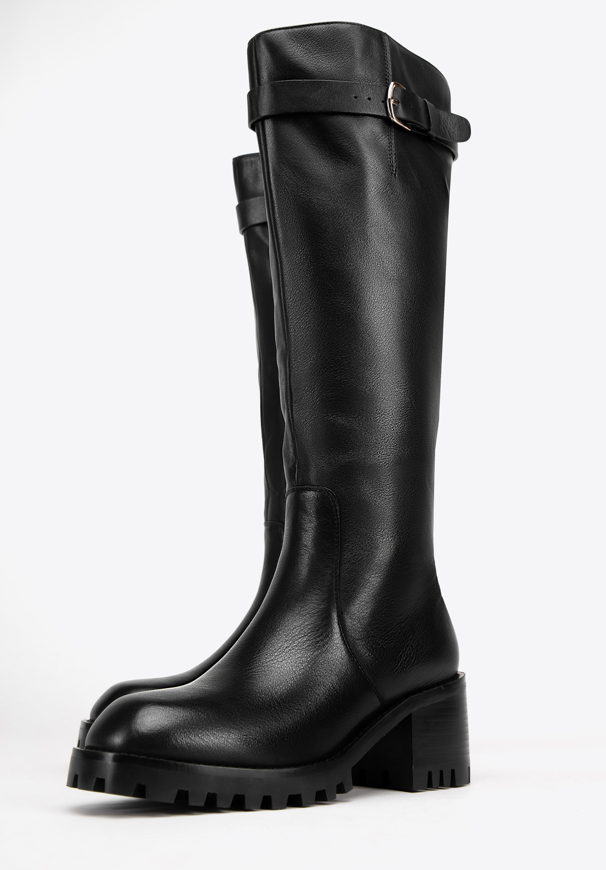 Hohe Damenstiefel aus Leder mit Schnallendetail