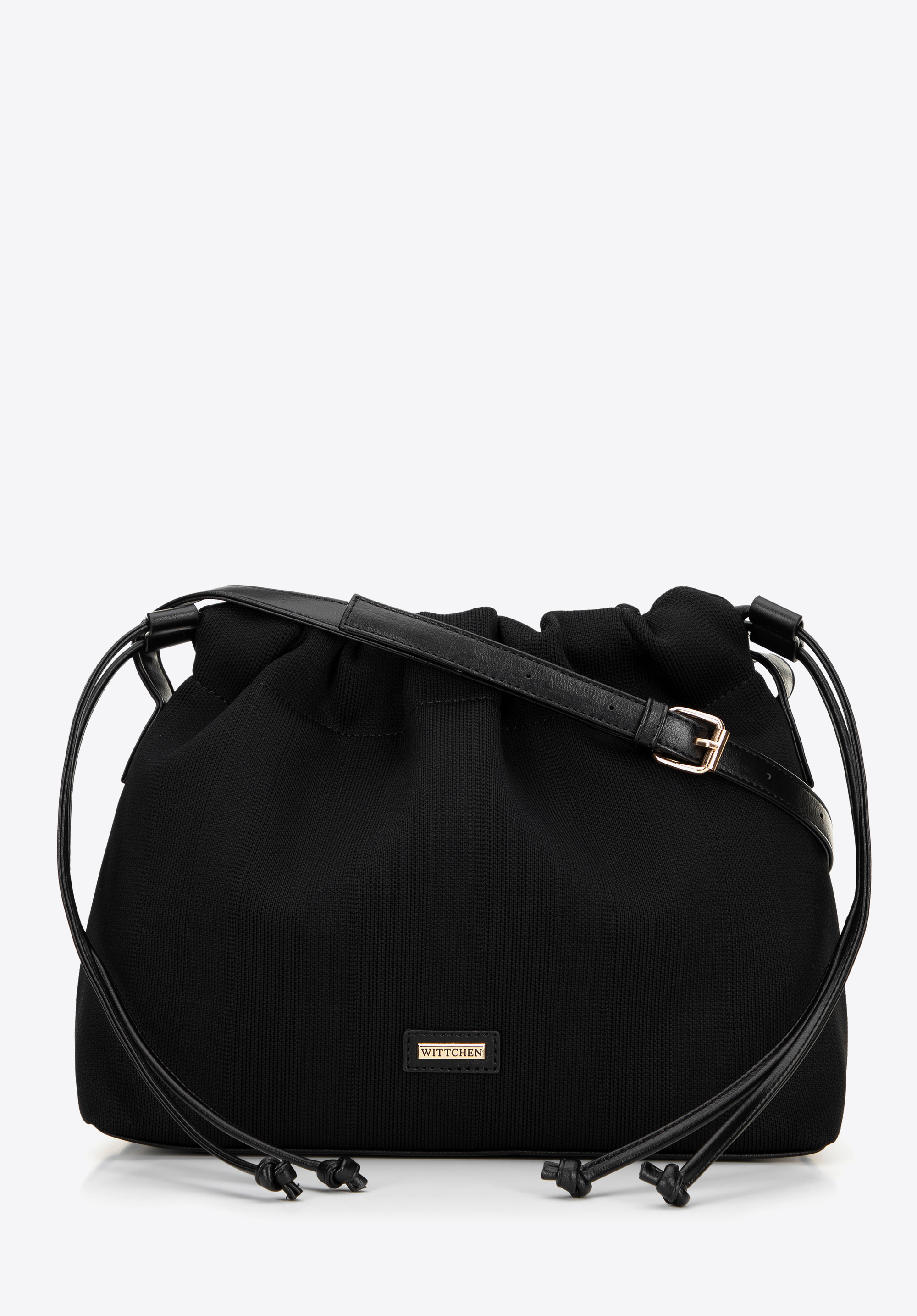 Entdecken Sie die Handtasche, die Funktionalität mit modischer Leichtigkeit verbindet. Ihr einzigartiges, entspanntes Design macht sie unglaublich vielseitig – perfekt für den Alltag, aber auch ideal für abendliche Ausflüge. Sie besteht aus Polyester und Polyurethan und besticht durch ihr subtiles und doch anspruchsvolles Erscheinungsbild. Der verstellbare Kunstlederriemen sorgt für Tragekomfort und die beiden Druckknöpfe ermöglichen schnellen Zugriff auf das Innere. Die Kordeln bieten die Möglichkeit, die Handtasche nach Ihren Wünschen zu formen – von einem lässigen Stil bis hin zu einer klassischeren Form.