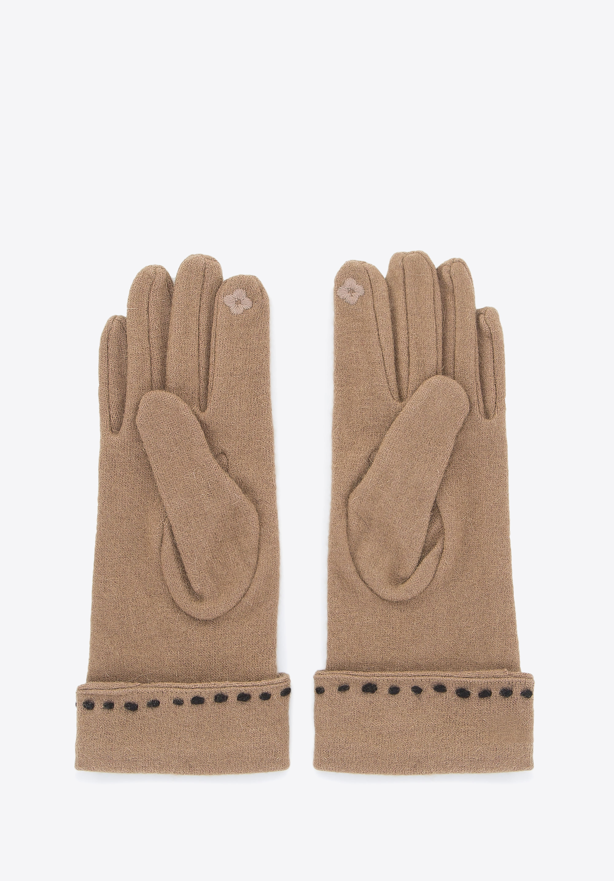 Die klassische Handschuhe für Damen werden aus 70% Wolle gefertigt. Die Ziernähte und die Schleife verleihem dem Modell einen Charakter. Die Handschuhe wurden mit der Touchscreen-Funktion ausgestattet, so dass man die Touchscreen-Geräte wie Smartphones, iPads, Tablets einfach bedienen kann, ohne Handschuhe auszuziehen. Dieses Modell passt zu Steppjacken in Erdtönen oder zu einem klassischen Mantel, der in der Taille gebunden wird. Diese Handschuhe mit Ziernähten und Schleife sind eine tolle Geschenkidee für jede Frau.