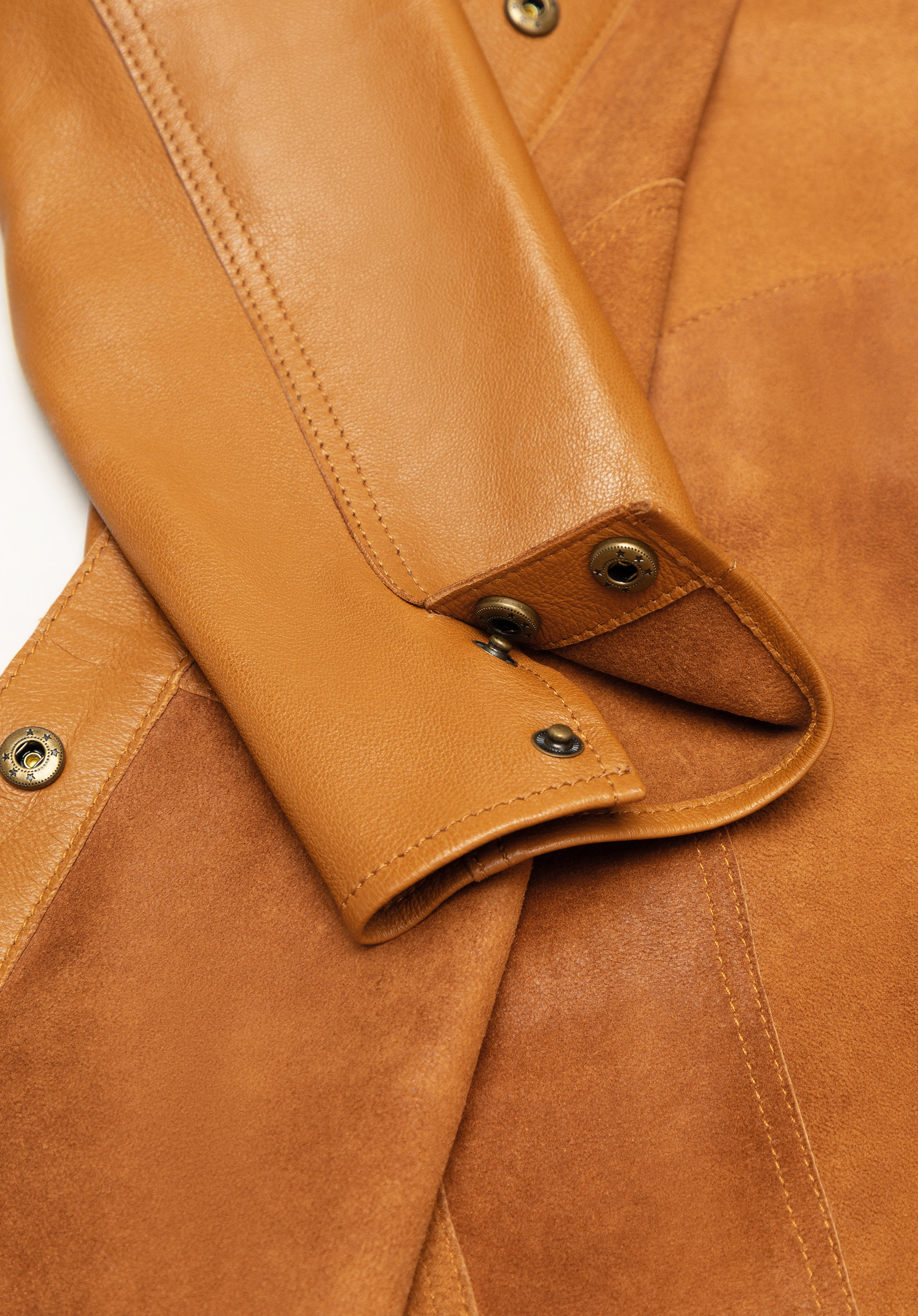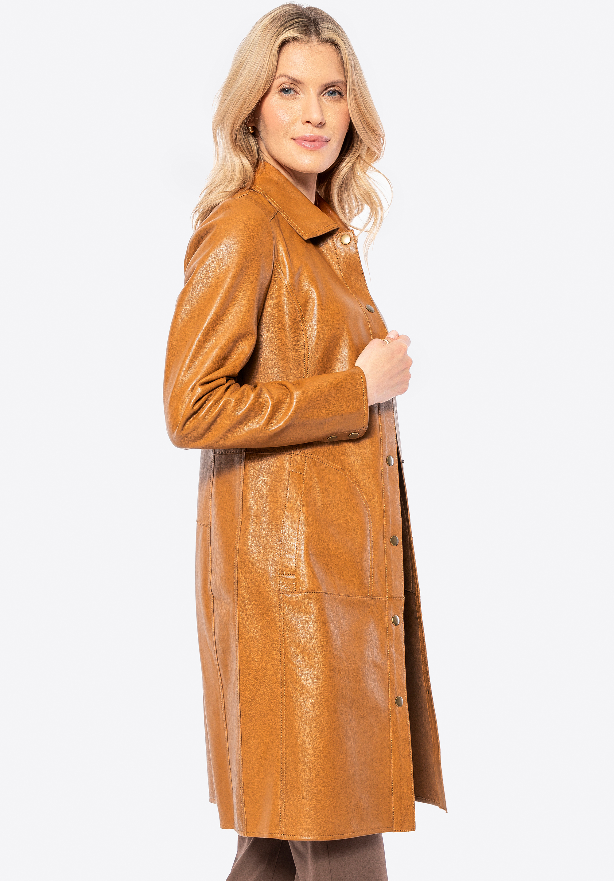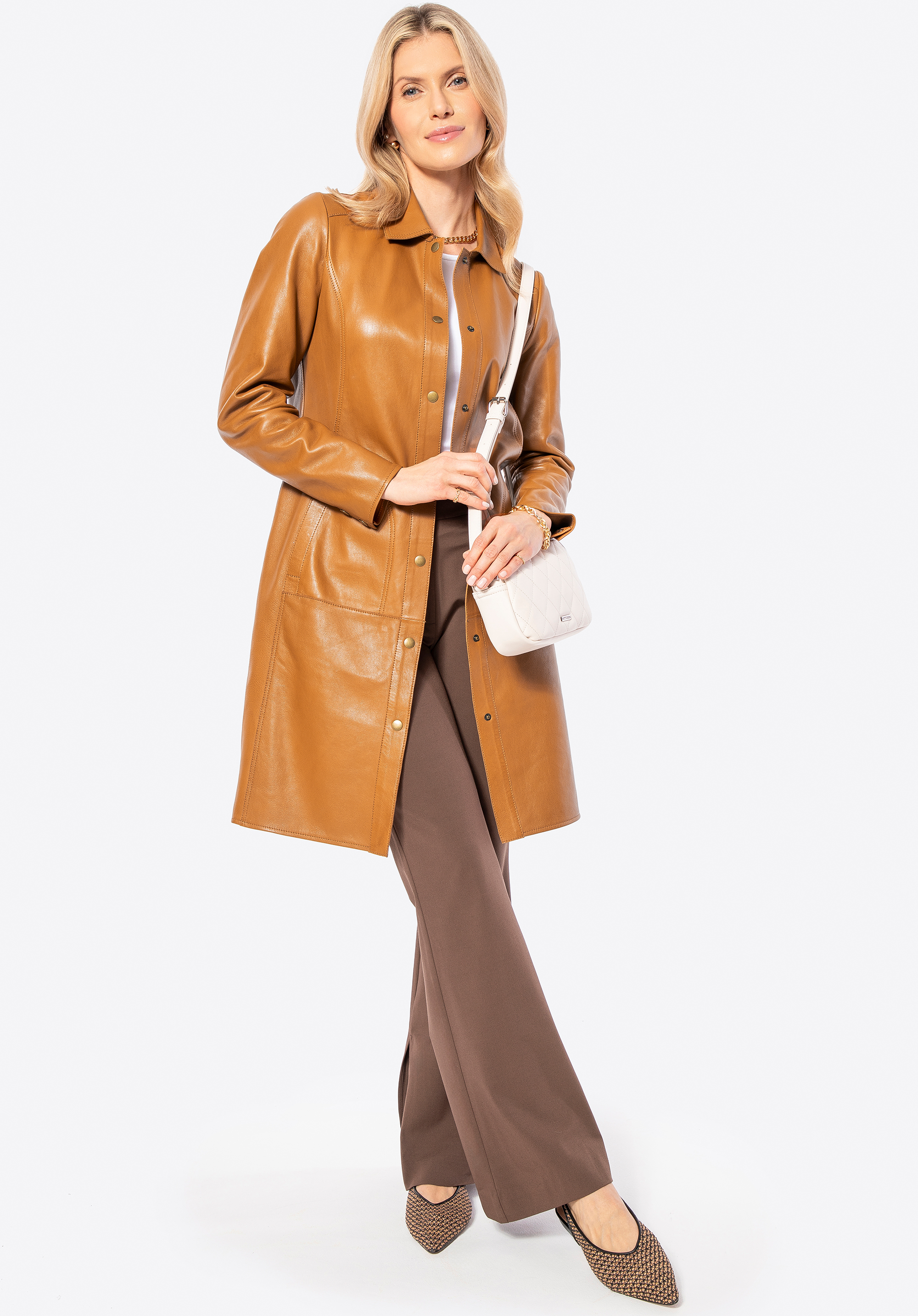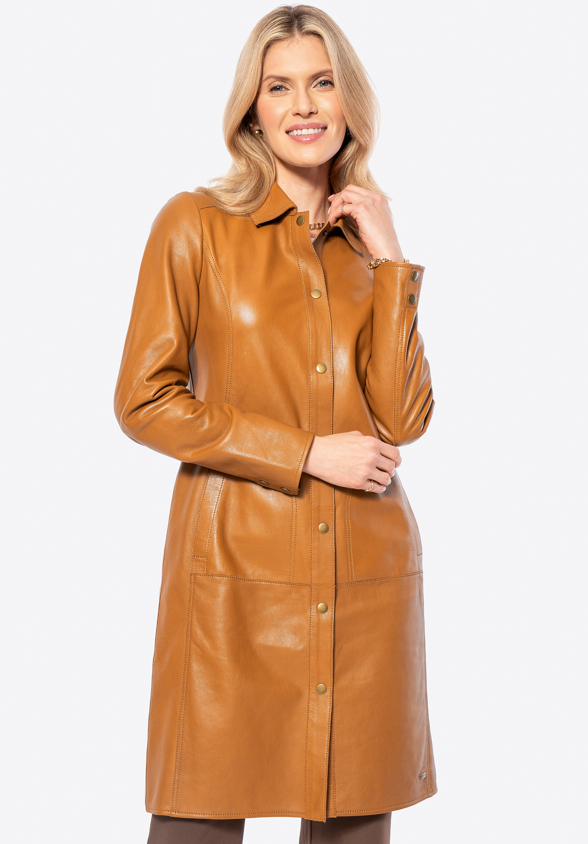 Heben Sie Ihren Stil mit diesem einzigartigen Mantel auf die nächste Stufe. Aus natürlichem Schaffell gefertigt, ist er eine Kombination aus klassischer Eleganz und modernem Design. Die Druckknopfverschlüsse, die funktionellen Taschen und der Rückenschlitz sorgen für Komfort und Bewegungsfreiheit, ohne dabei an Eleganz einzubüßen. Die Innenseite des Mantels aus Naturleder umhüllt Sie den ganzen Tag lang mit Komfort und verleiht Ihnen ein Gefühl von Luxus, das nie aus der Mode kommt. Eine Investition in zeitlosen Stil, der nie aus der Mode kommt.