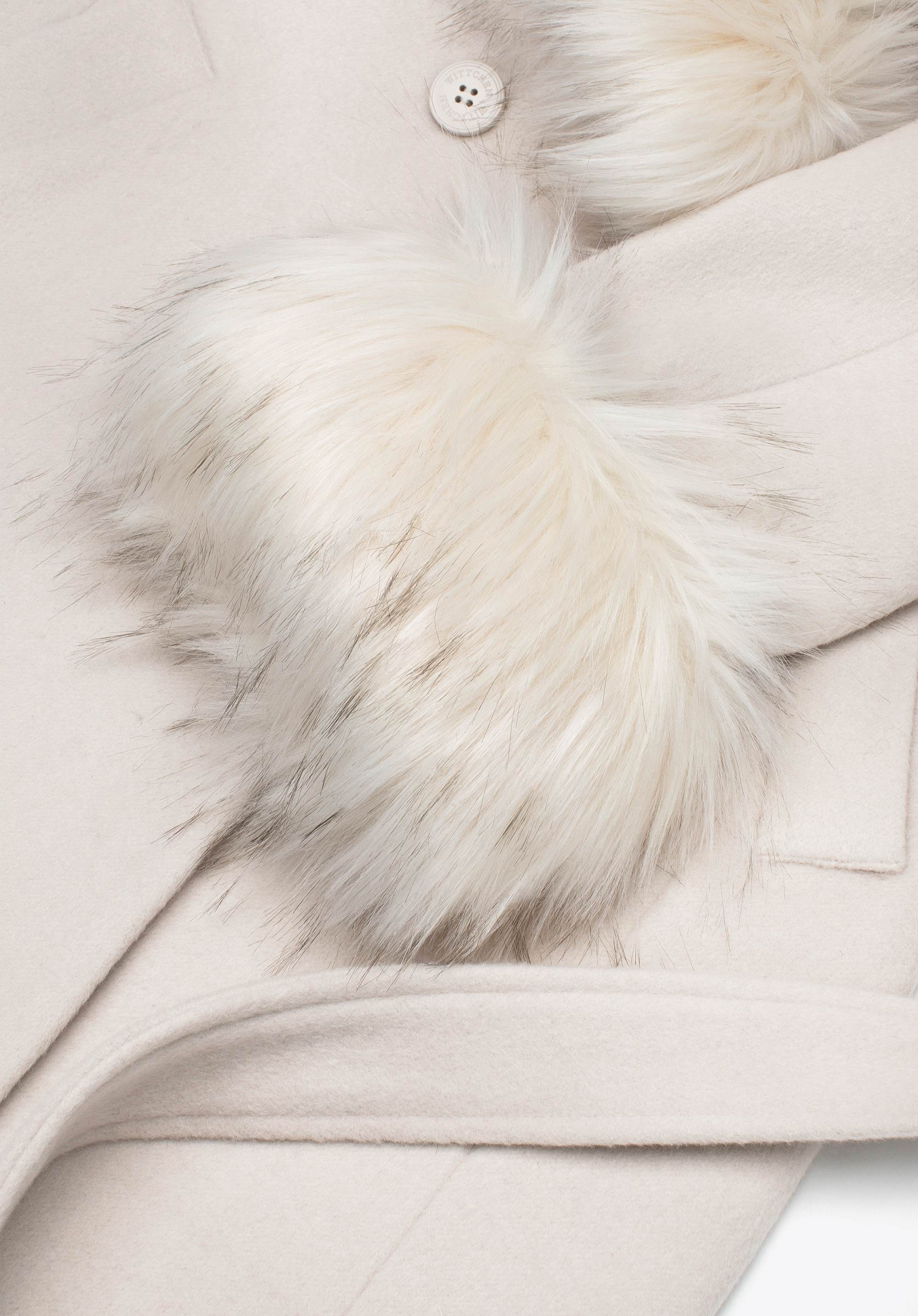 - Zusammensetzung: Oberstoff: 50 % Wolle, 50 % Polyester; Futter: 100 % Viskose; Kunstpelz: 50 % Acryl, 50 % Polyester.