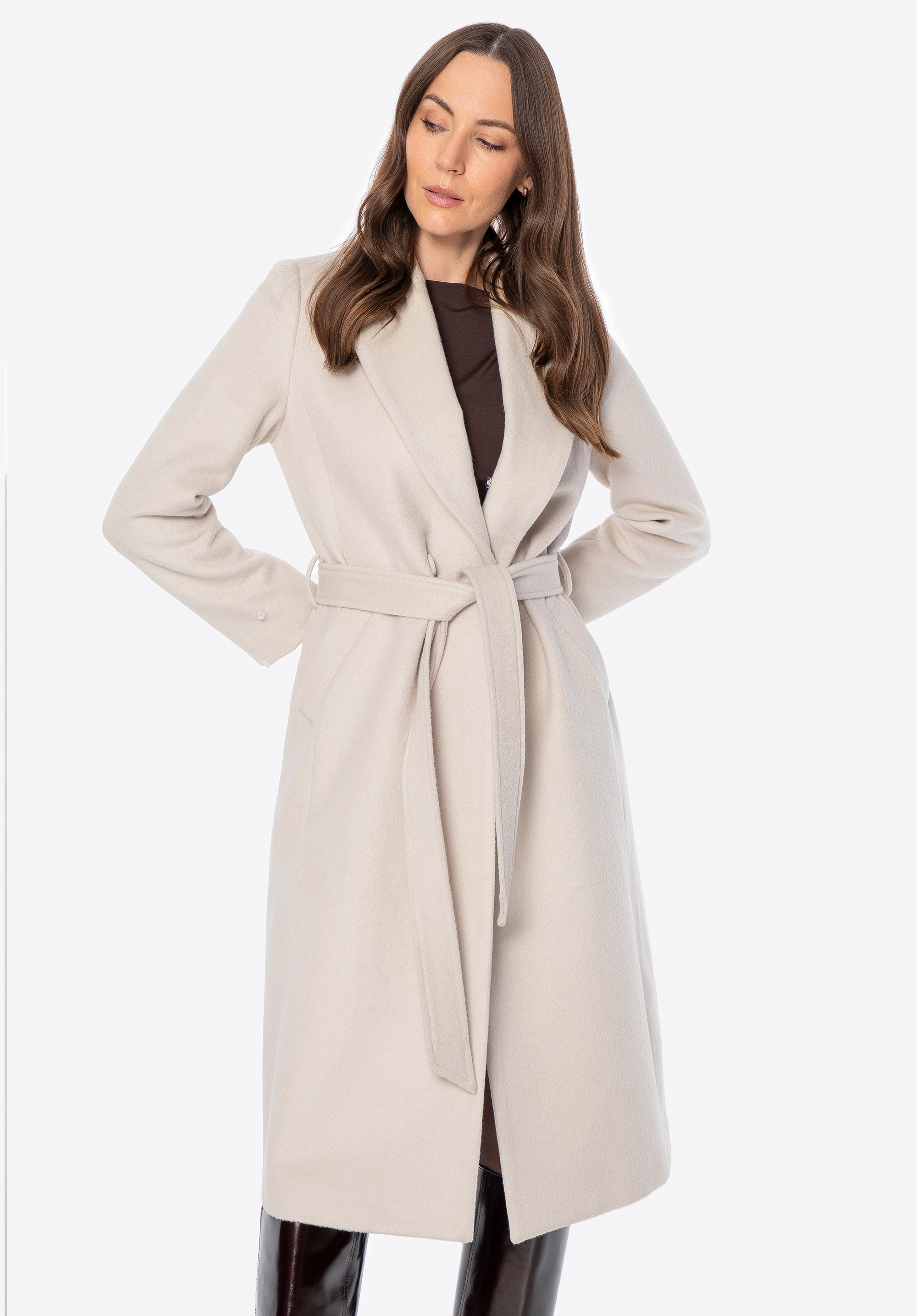 - Knopfverschluss: Ein klassisches, praktisches Detail, das den anspruchsvollen Charakter des Mantels unterstreicht.