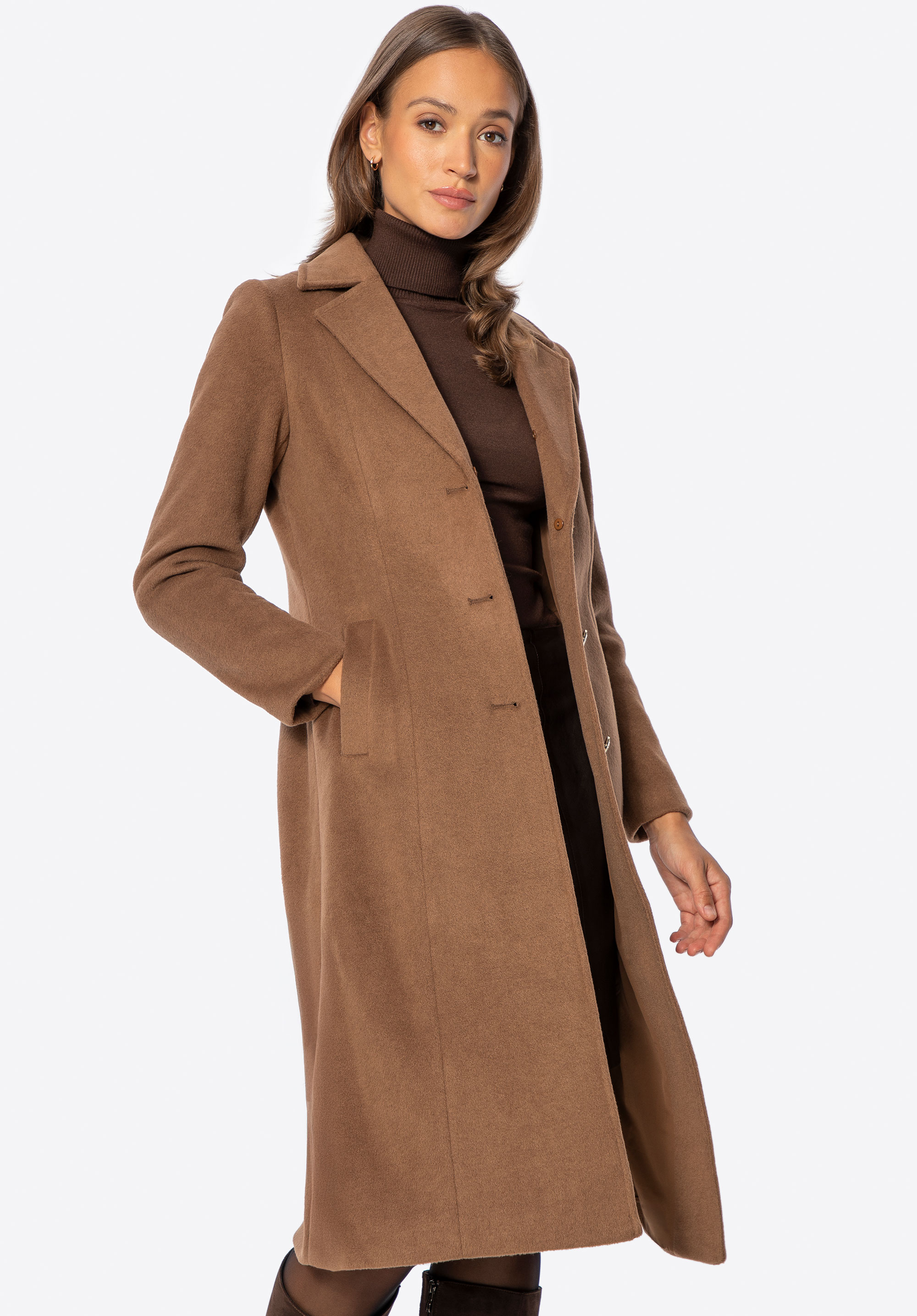 - A-Linien-Silhouette : Betont die Figur und verleiht dem Mantel eine feminine, elegante Note.