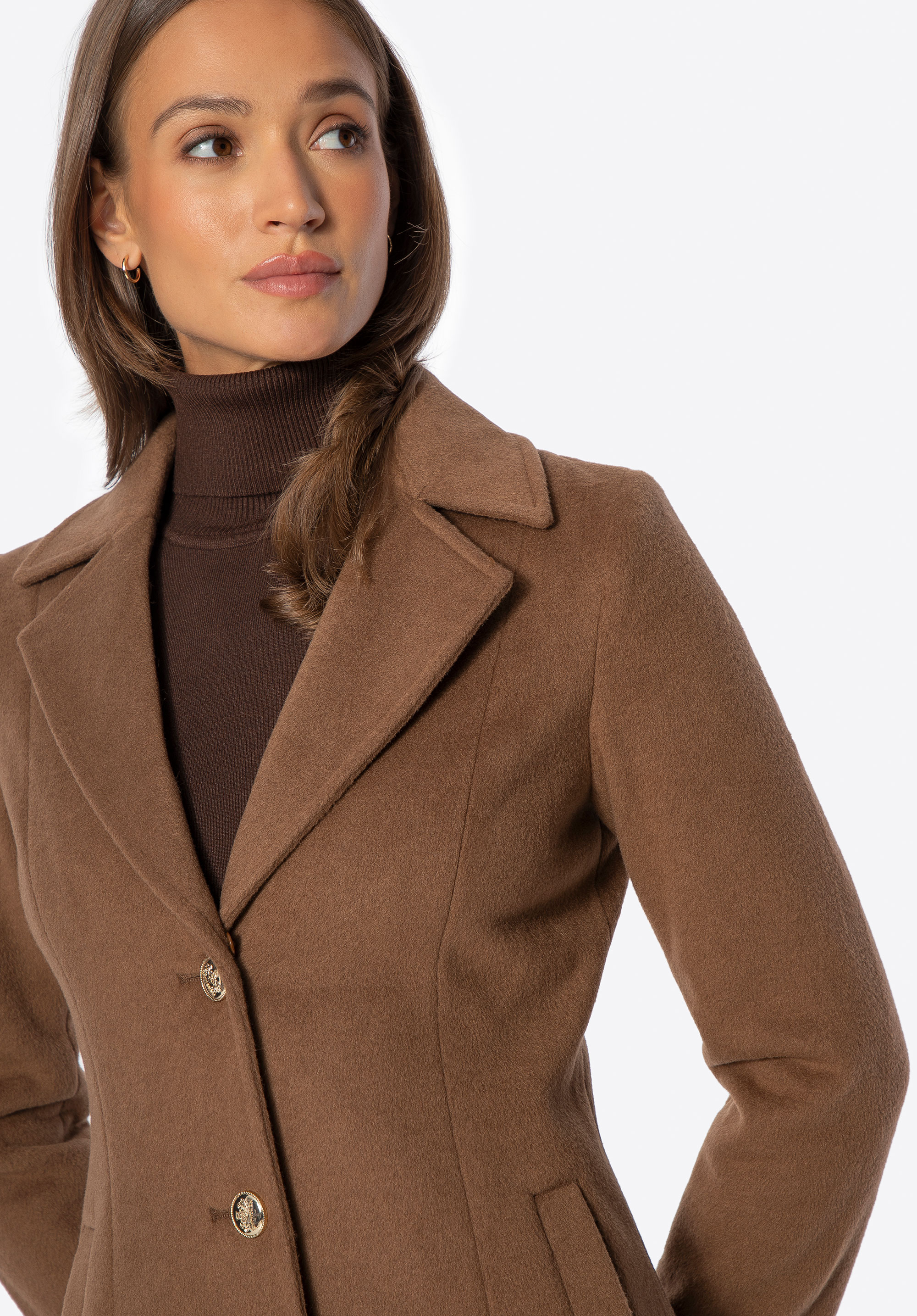 - Markenknöpfe : Verleihen dem Mantel eine raffinierte Note und betonen auf subtile Weise seine sorgfältige Verarbeitung.