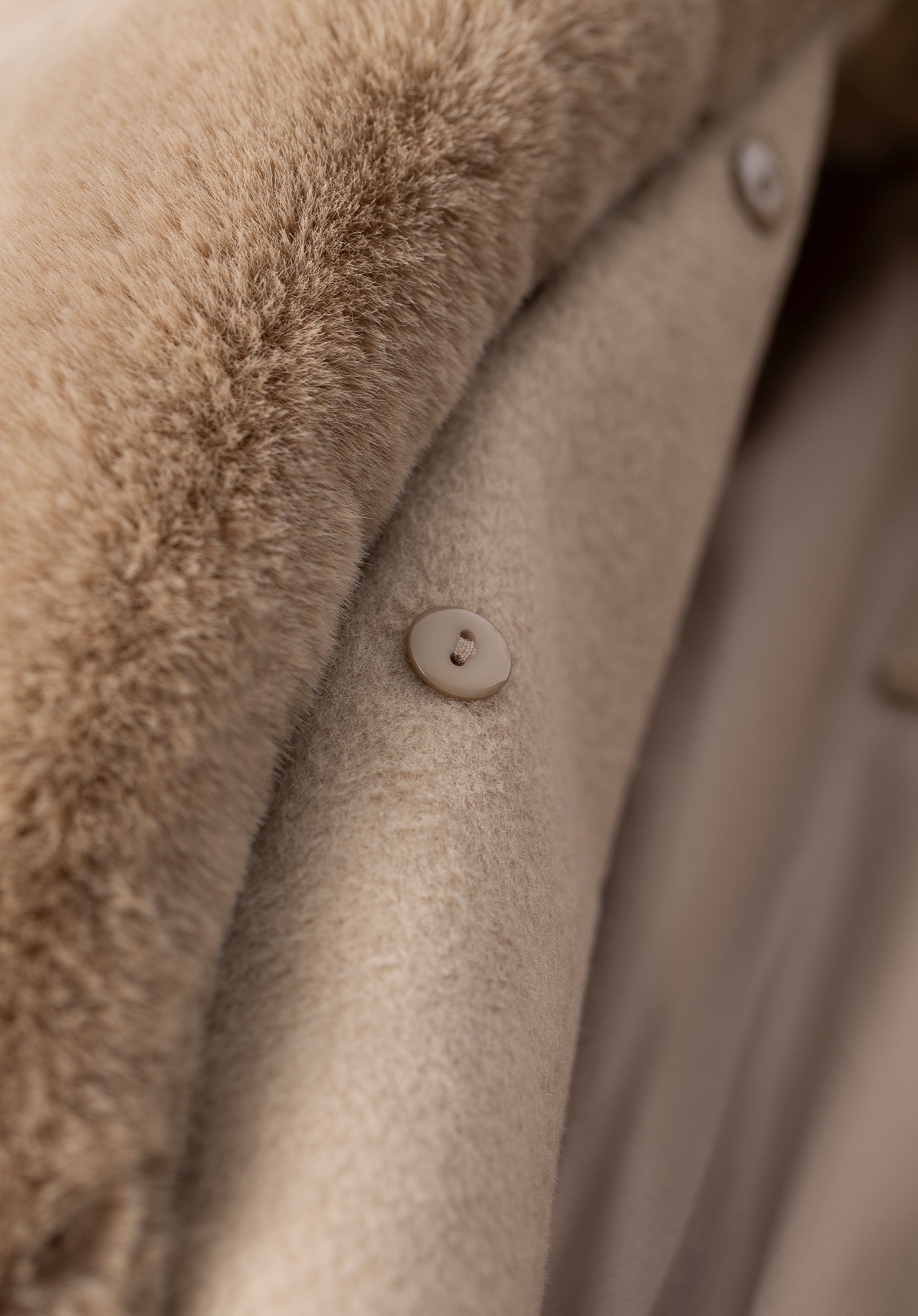 - Abnehmbarer Kunstpelzkragen : Ändert den Charakter des Mantels ganz einfach von gemütlich und elegant zu leicht und modern.