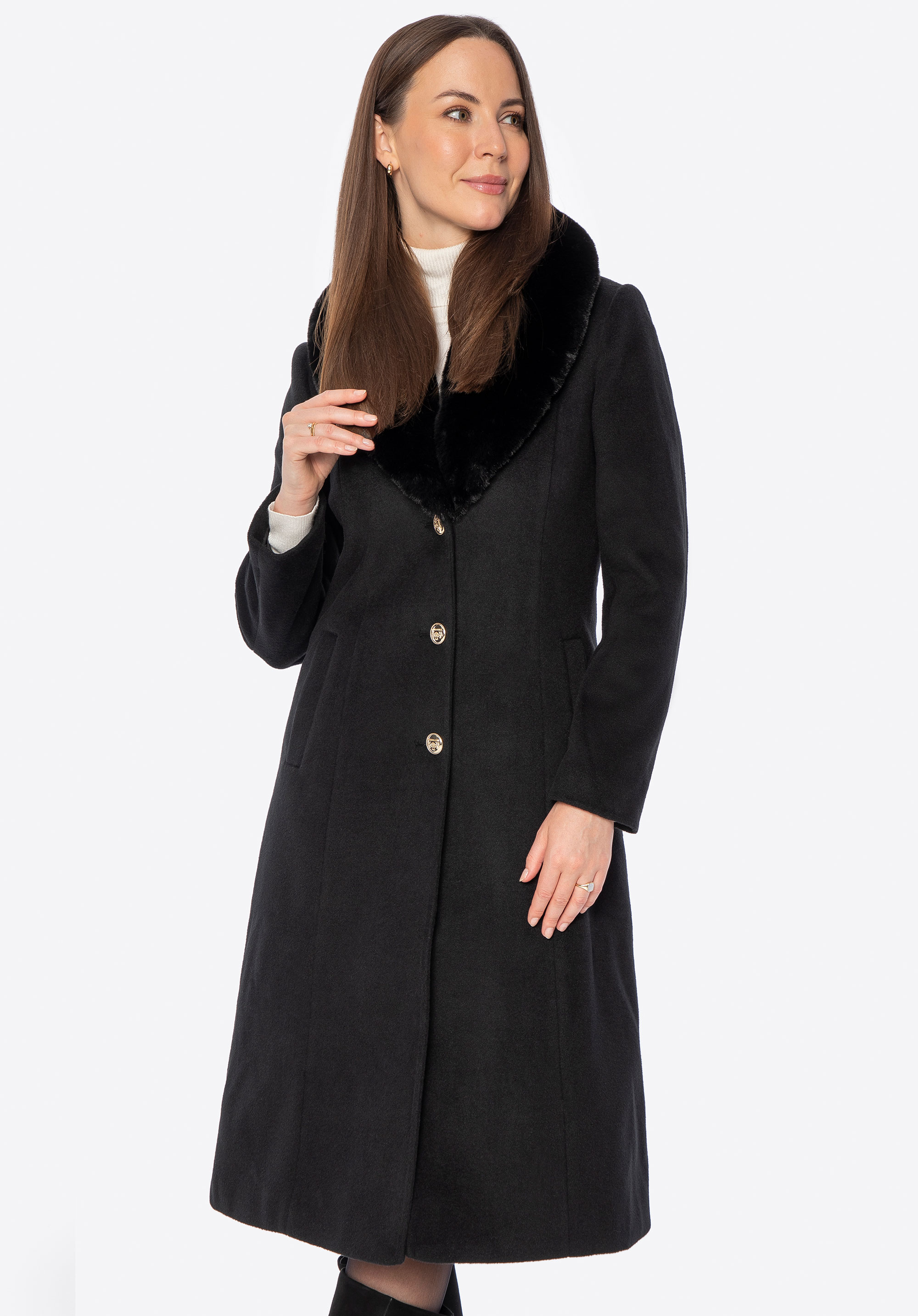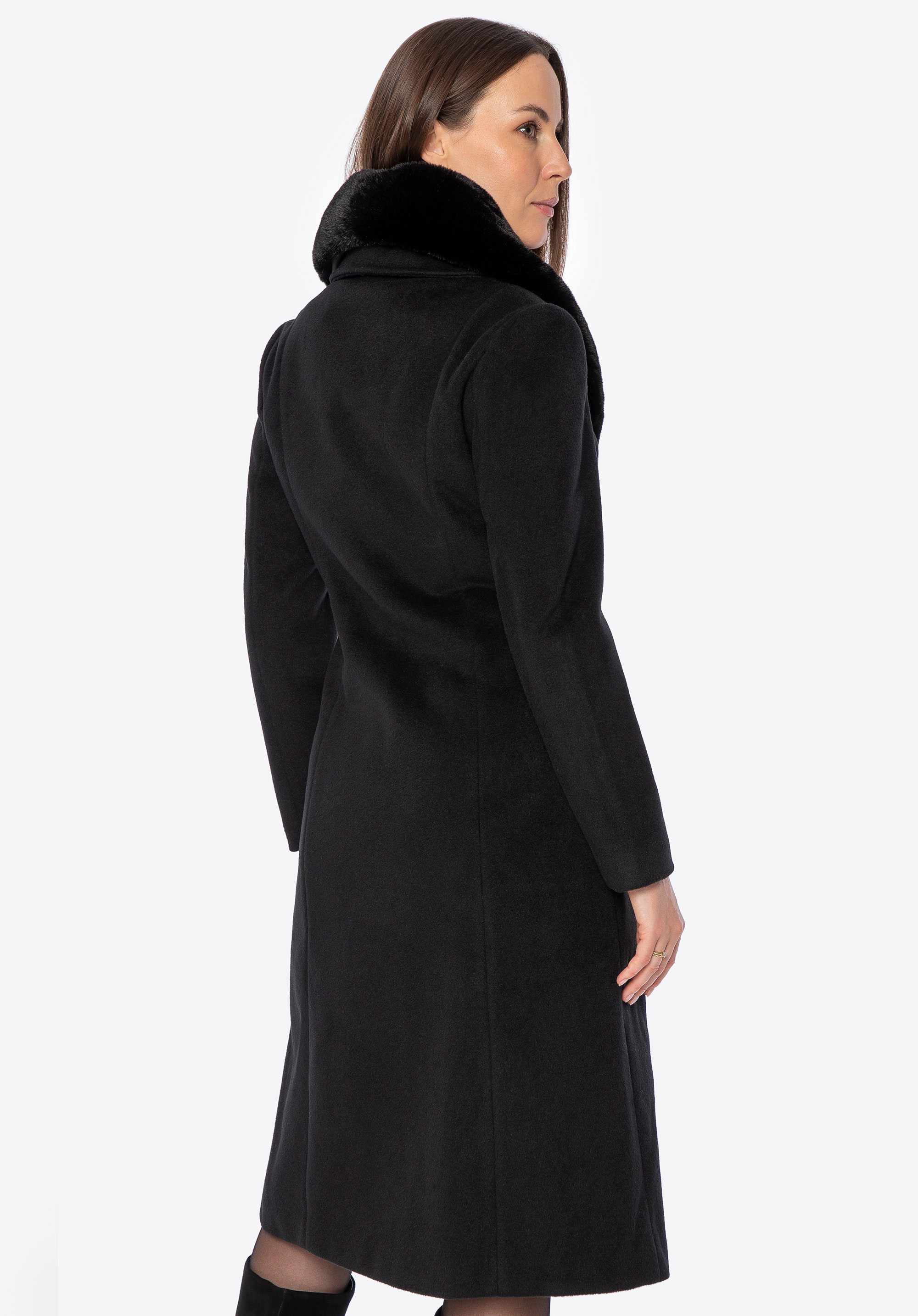 - Abnehmbarer Kunstpelzkragen : Ändert den Charakter des Mantels ganz einfach von gemütlich und elegant zu leicht und modern.