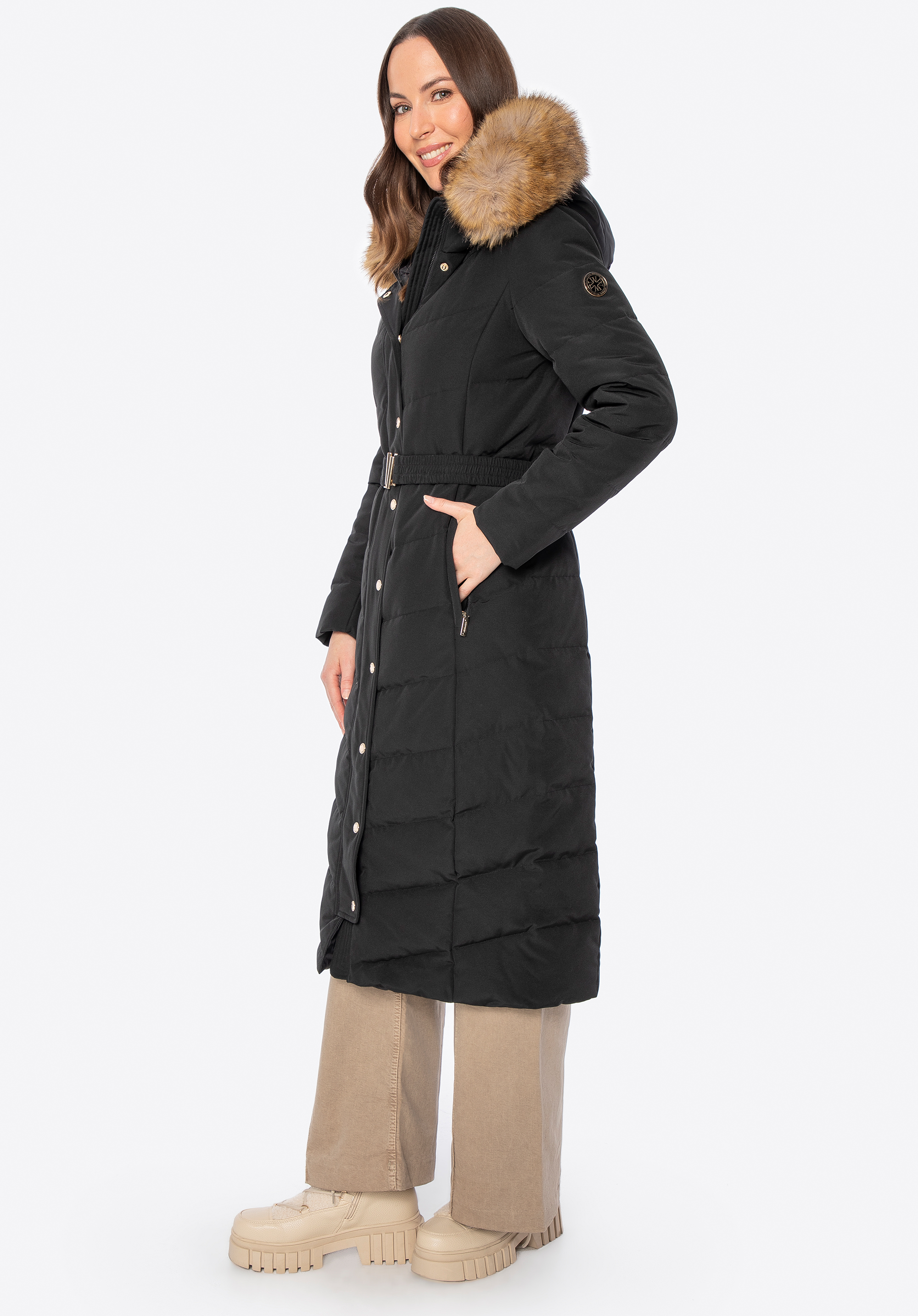 Bereiten Sie sich auf den Winter vor – mit einem Stil, der Komfort und Eleganz vereint. Dieser Damenmantel ist mehr als nur Oberbekleidung – er zeugt von gutem Geschmack und Liebe zur Qualität. Das wetterbeständige Polyester-Obermaterial und das Nylonfutter bilden das ideale Duo zum Schutz vor Kälte. Die natürliche Daunen- und Federfüllung sorgt für hervorragende Wärmeisolierung und hüllt Sie selbst bei kältestem Wetter in wohlige Wärme.