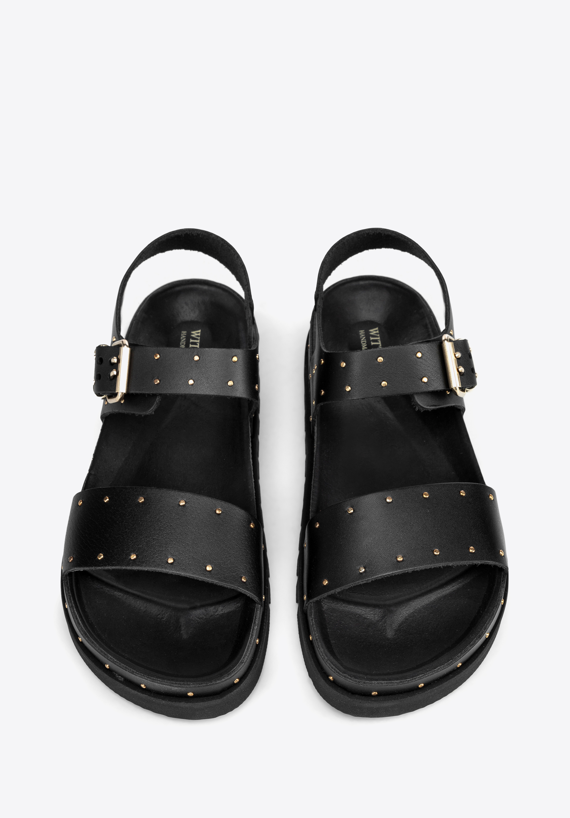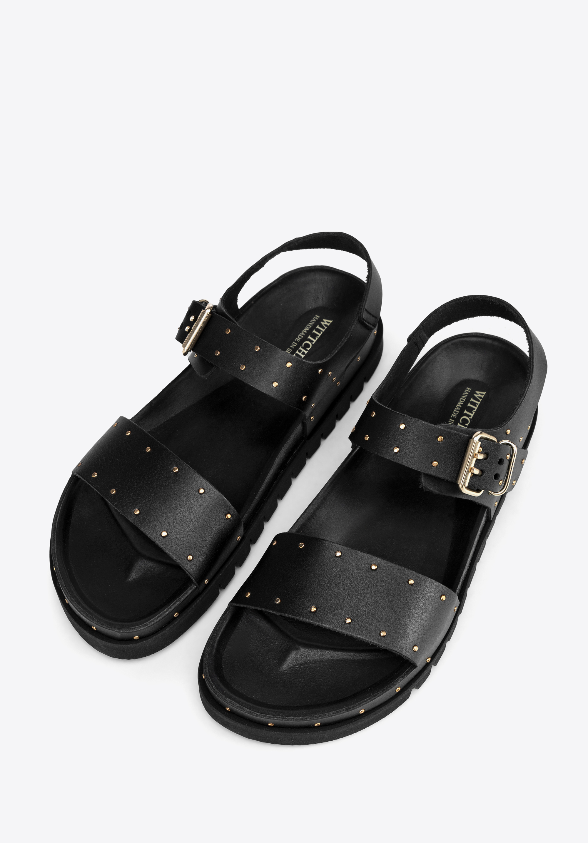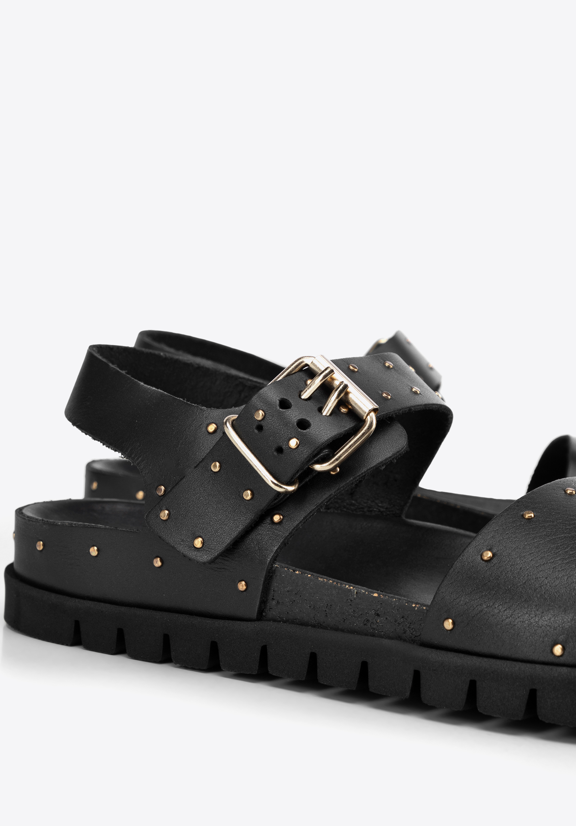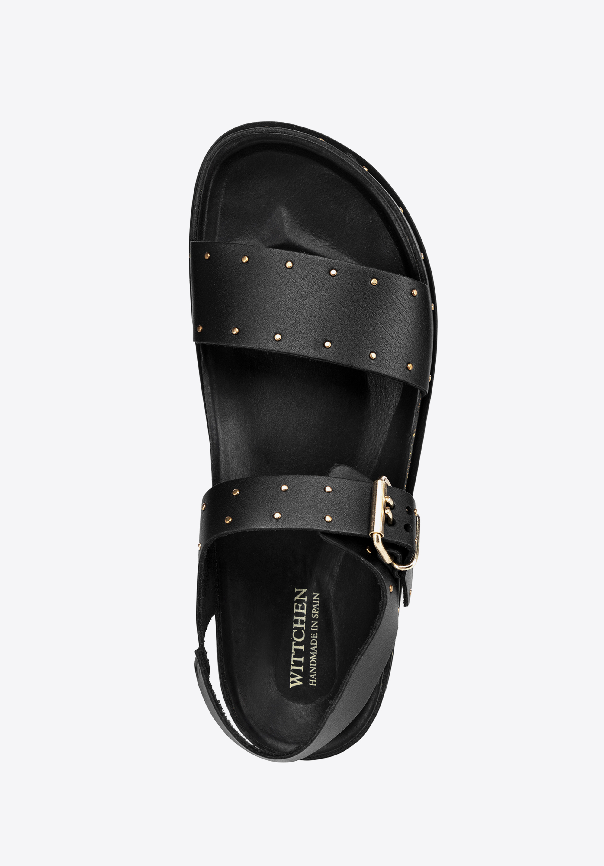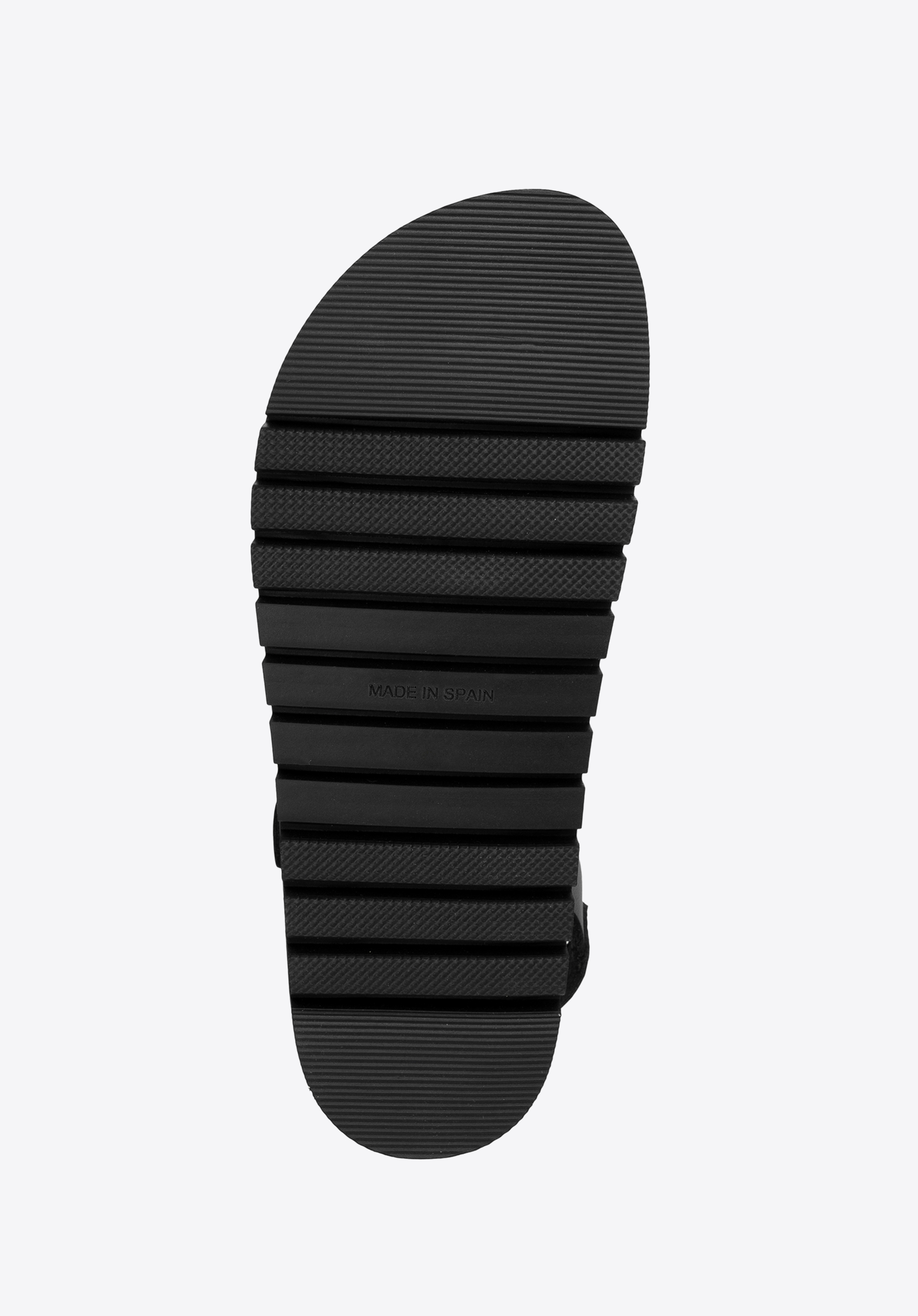 Entdecken Sie leichte und stylische Sandalen für Sommertage, die Komfort und modernen Stil vereinen. Sie werden in Spanien von Hand aus natürlichem Narbenleder gefertigt und zeichnen sich durch ihr minimalistisches Design und dezente Metalldetails aus. Ein Schnallenverschluss sorgt für Stabilität, während die profilierte Sohle ganztägigen Komfort bietet und Eleganz mit Funktionalität verbindet.