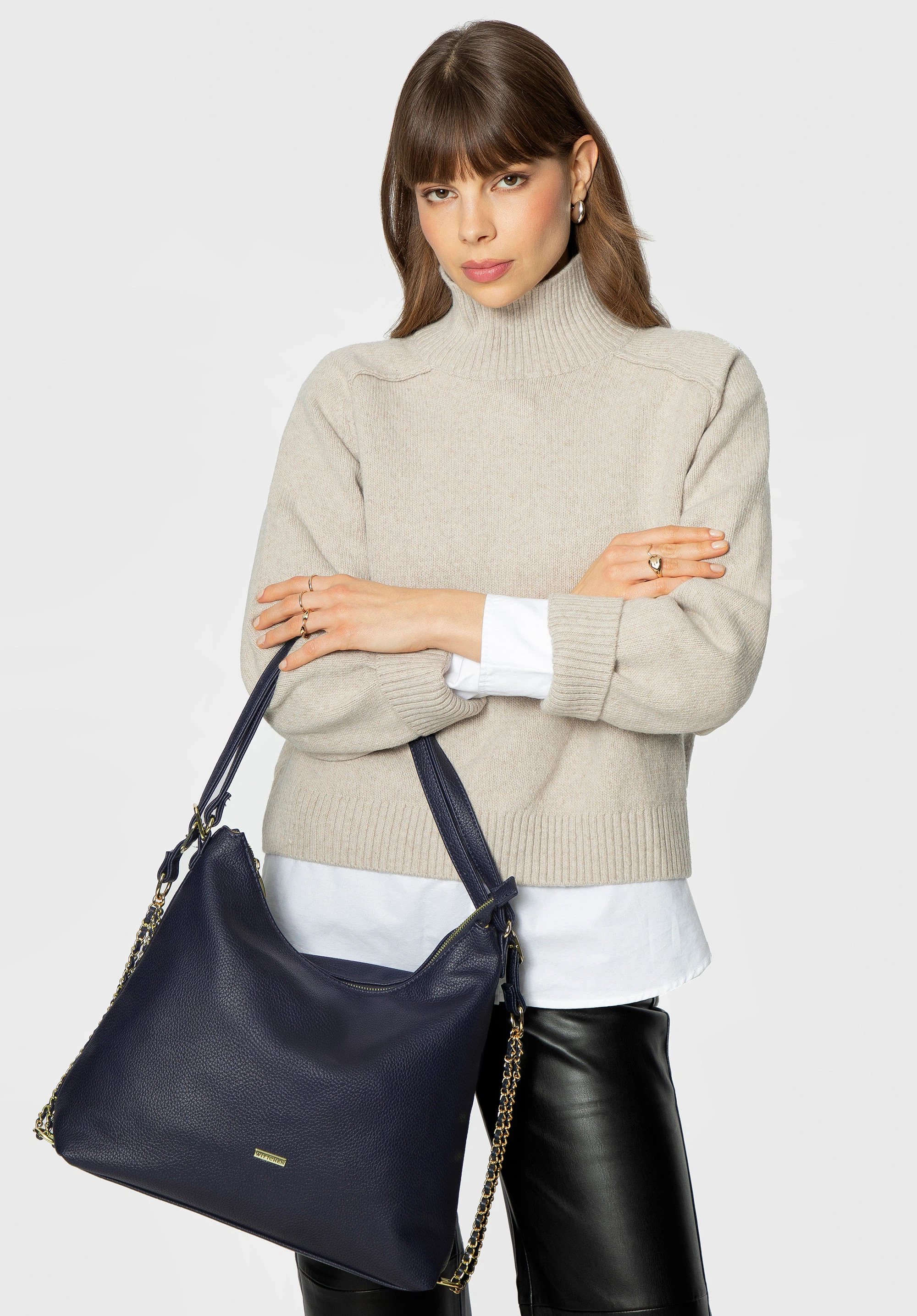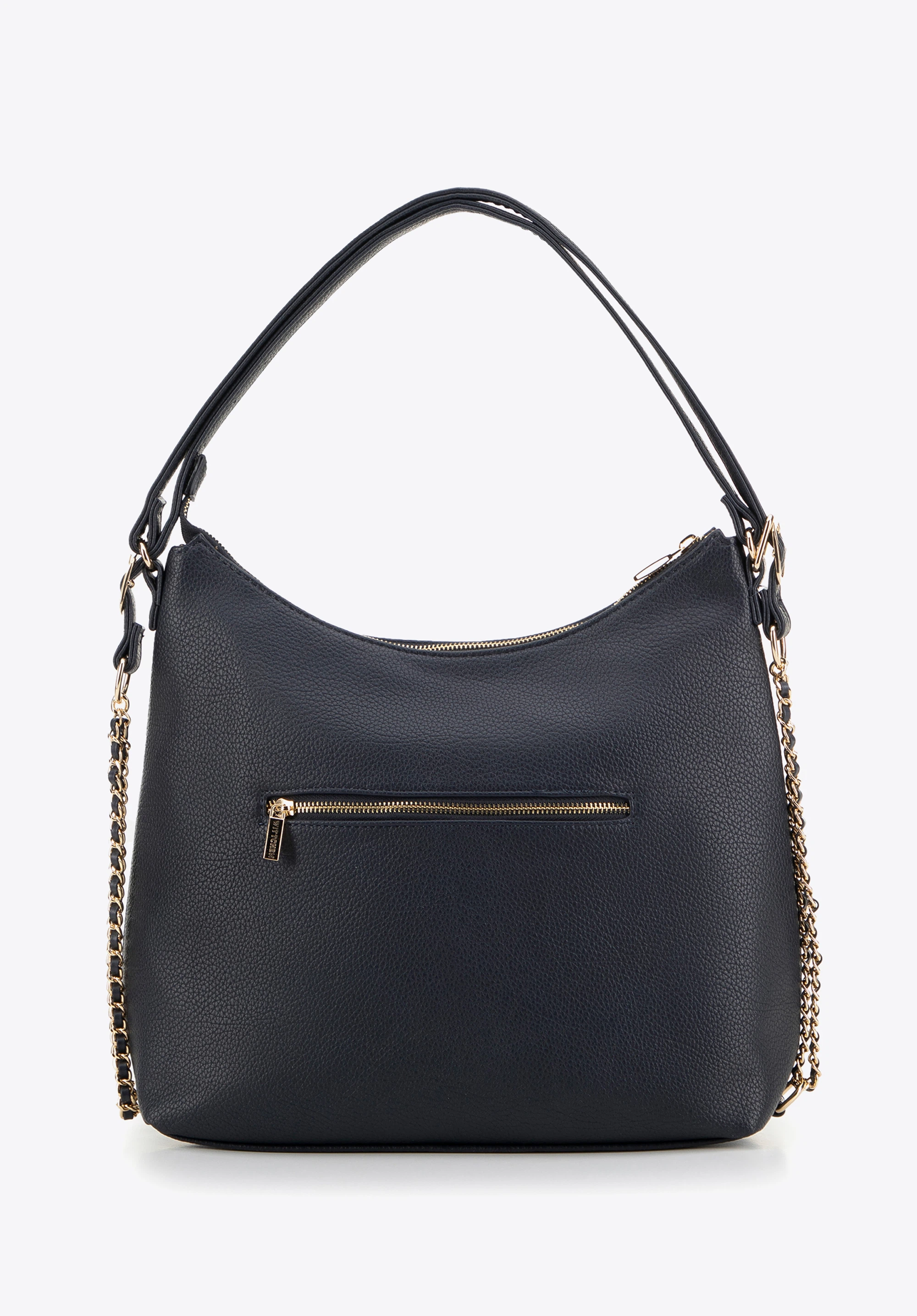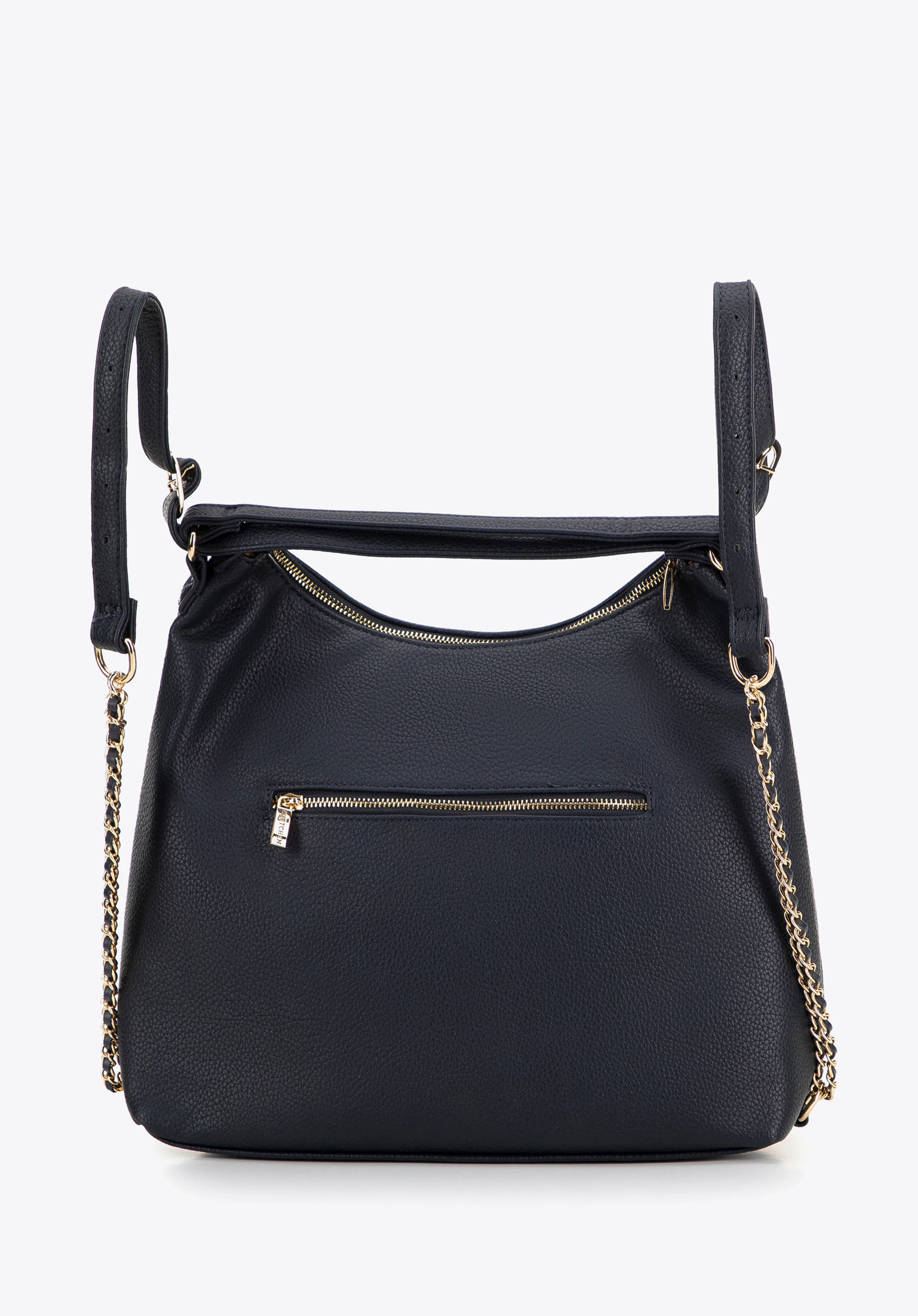 - Tragekomfort: Dank verstellbarer Henkel und Kettenriemen lässt sich die Handtasche auf verschiedene Arten tragen – als Rucksack oder Umhängetasche.
