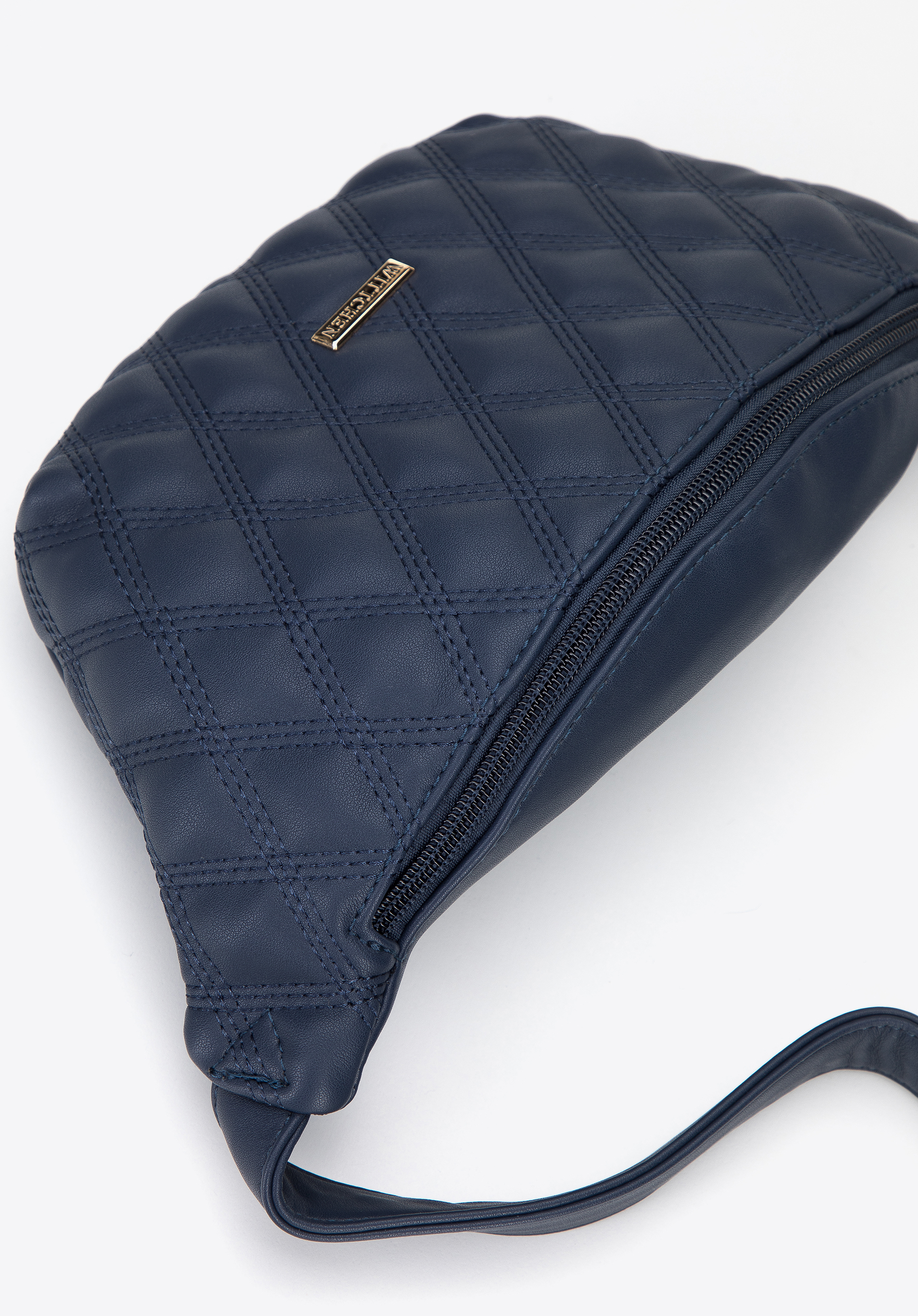 Diese originelle Gürteltasche ist die Klassik in der modernen Version. Sie ist aus angenehmem, Öko-Leder gefertigt. Die dekorative geometrische Steppung auf der Vorderseite zieht alle Blicke auf sich und verleiht ihm einen einzigartigen Charakter. Die Gürteltasche findet den Platz für ein Handy, Portemonnaie, einen kleiner Kalender, Handcreme und ein paar Kleinigkeiten. Außerdem ist sie sehr vielseitig und passt sowohl zu einem schlichten Kleid als auch zu Jeans und einem übergroßen Pullover. Die gesteppte Gürteltasche aus Öko-Lederr ist eine gute Wahl für Liebhaber praktischer und stilvoller Accessoires.