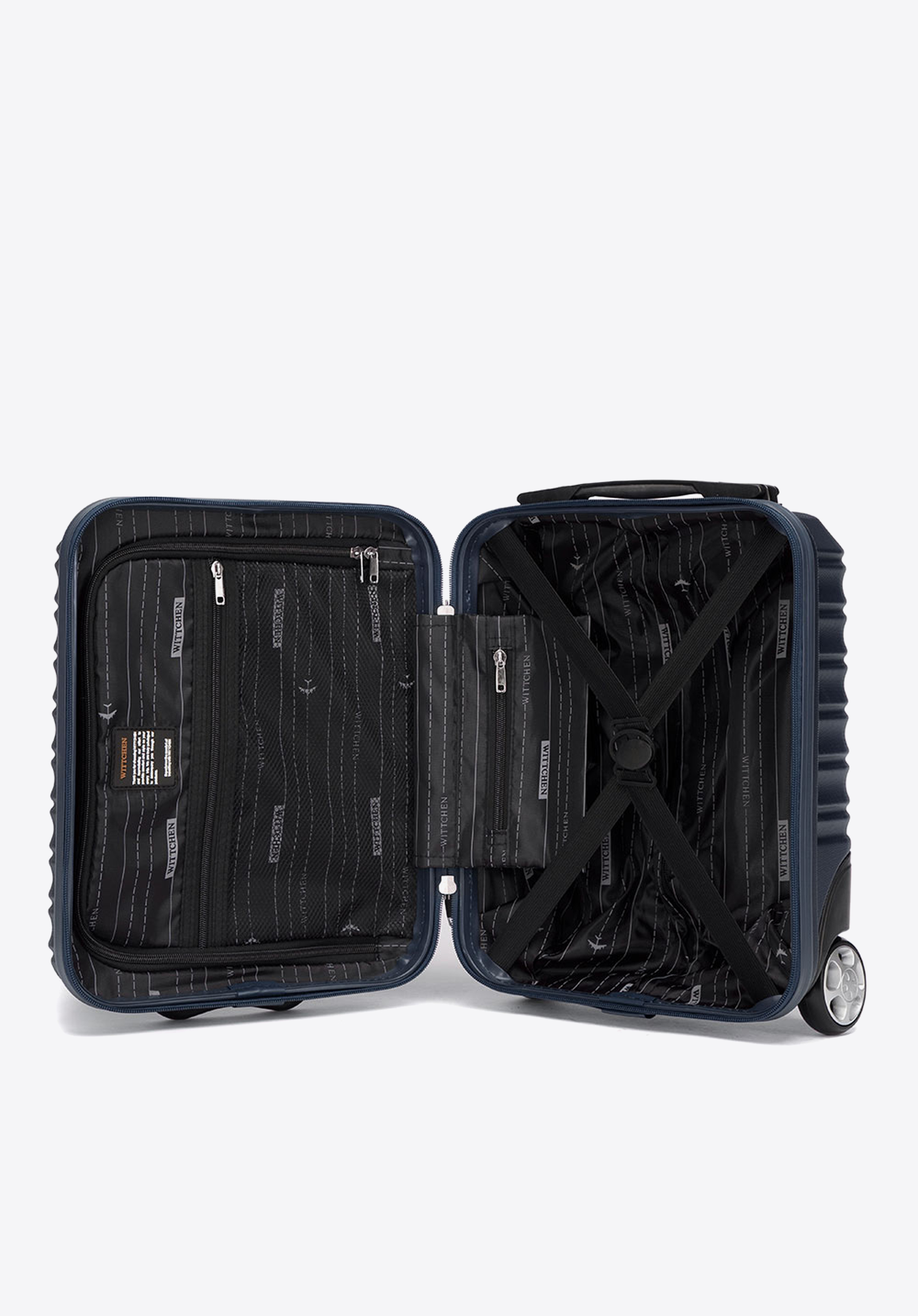 Elegant, praktisch und in einer universellen Größe - so präsentiert sich der Kabinenkoffer aus ABS mit Rippen. Er ist kompakt, so dass Sie ihn an Bord der meisten Fluggesellschaften mitnehmen können. Er ist aus hochwertigem, strapazierfähigem ABS gefertigt. Der Koffer verfügt über den Teleskopgriff, den Zusatzhandgriff und Zusatztaschen. Dieser Koffer ist die perfekte Wahl für Kurzreisen. Er kann auch als Handgepäck für eine längere Reise mit Freunden oder eine Dienstsreise verwendet werden. Mit diesem kleinen Koffer werden Sie immer stilvoll aussehen.