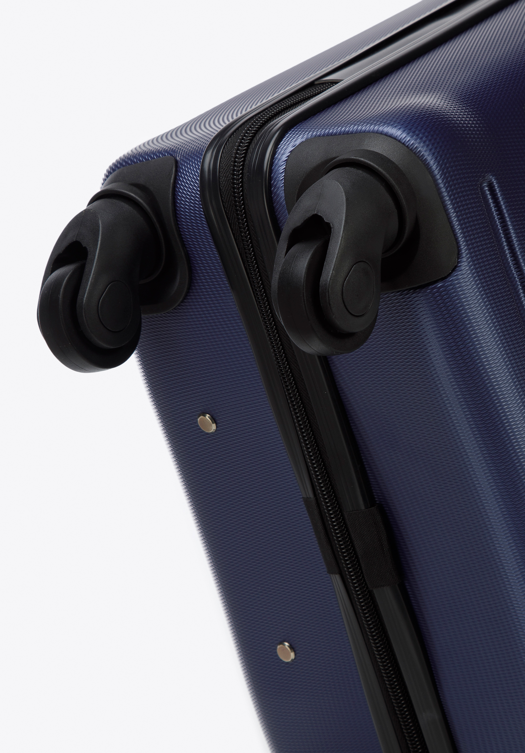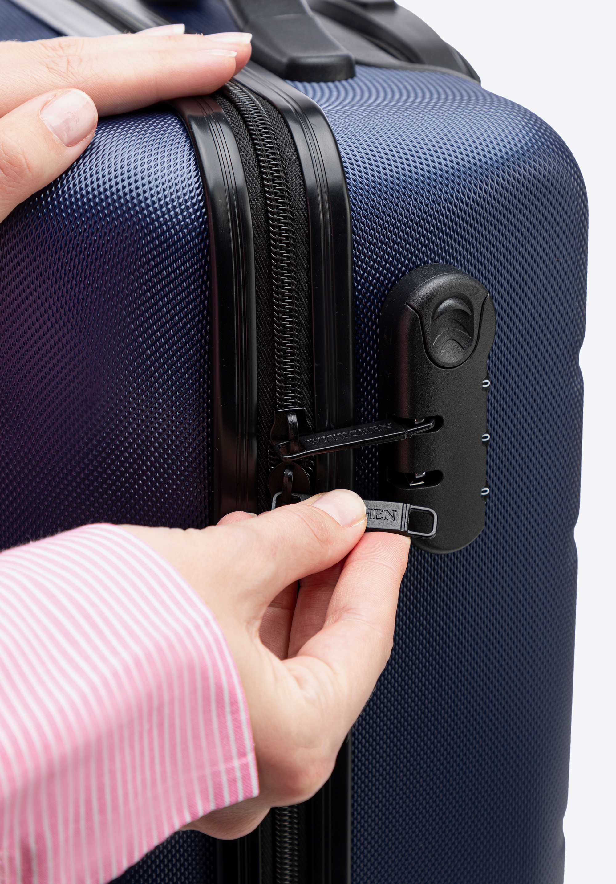 Mit einem strukturierten Look und einer strapazierfähigen ABS- Außenschale macht dieser kleine Koffer Ihre Reise zu einem stilvollen und sorgenfreien Erlebnis. Es wird mit einem Teleskop-Druckknopf-Verriegelungsgriff und einem Gummi-Hebegriff für zusätzlichen Komfort geliefert. Dieser Fall wird in einer großen Auswahl von Farben angeboten: Marineblau, Rosa, Champagner, Grau und Schwarz.