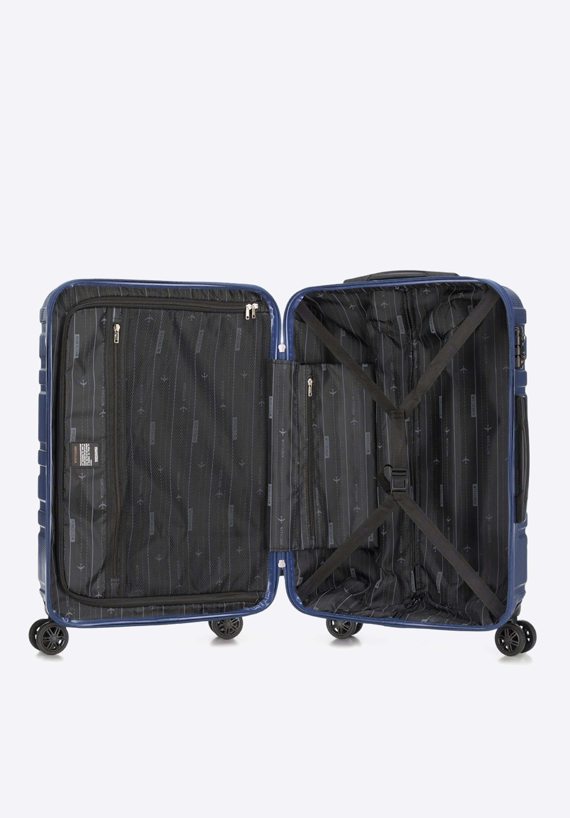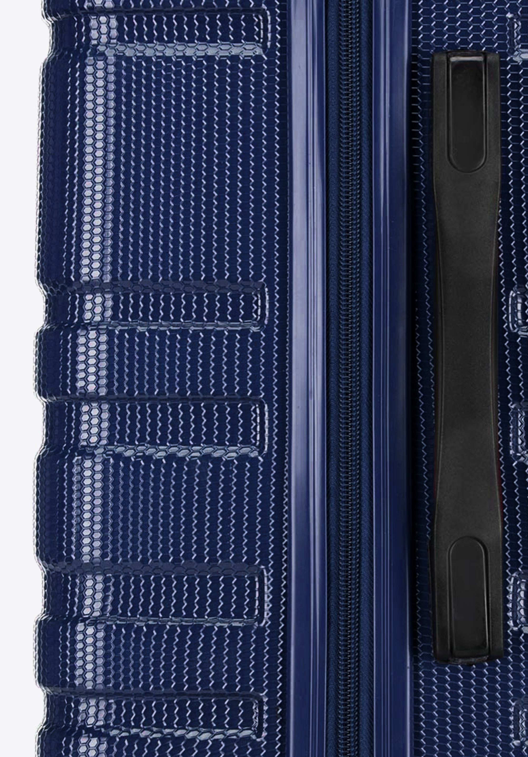 Der mittelgroße Koffer wird aus strapazierfähigem Polycarbonat hergestellt. Dank der strukturierter, poröser Oberfläche ist dieses Modell sehr widerstandsfähig und kratzfest. Diese Gepäckkollektion verbindet Funktionalität mit modernem Design.