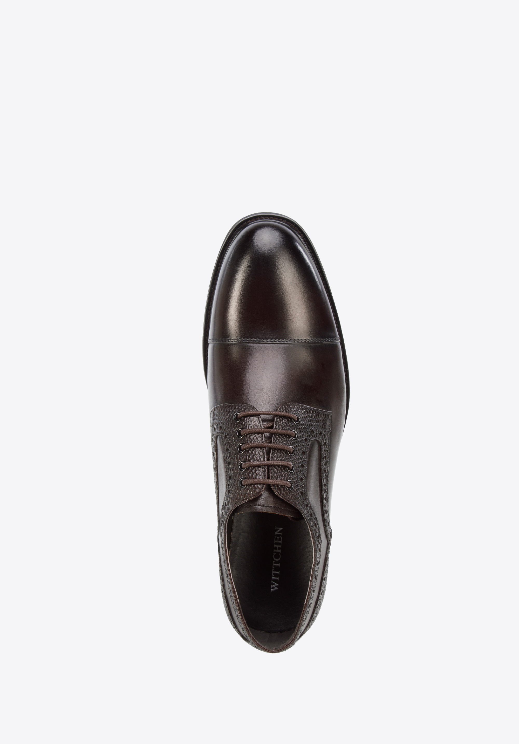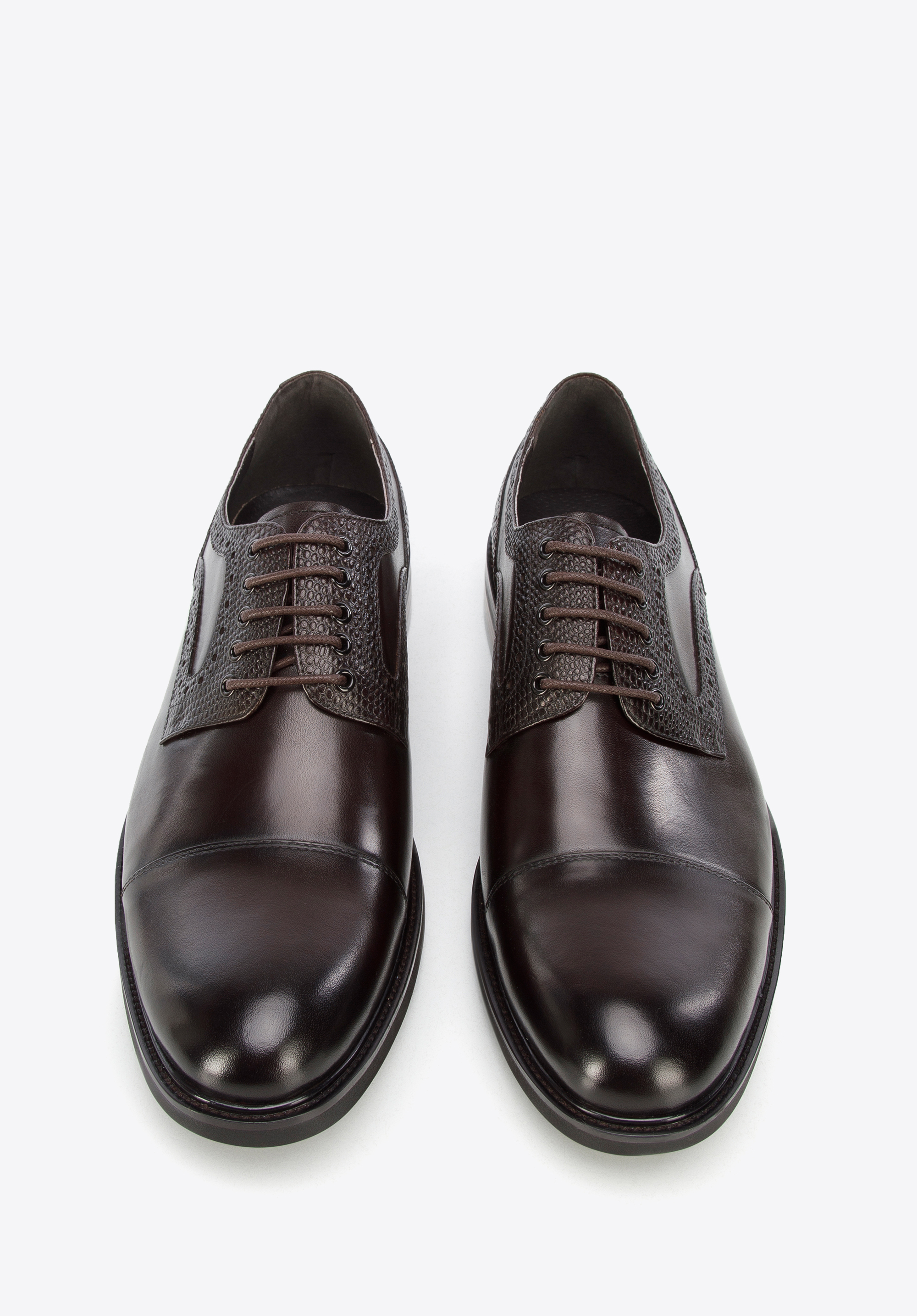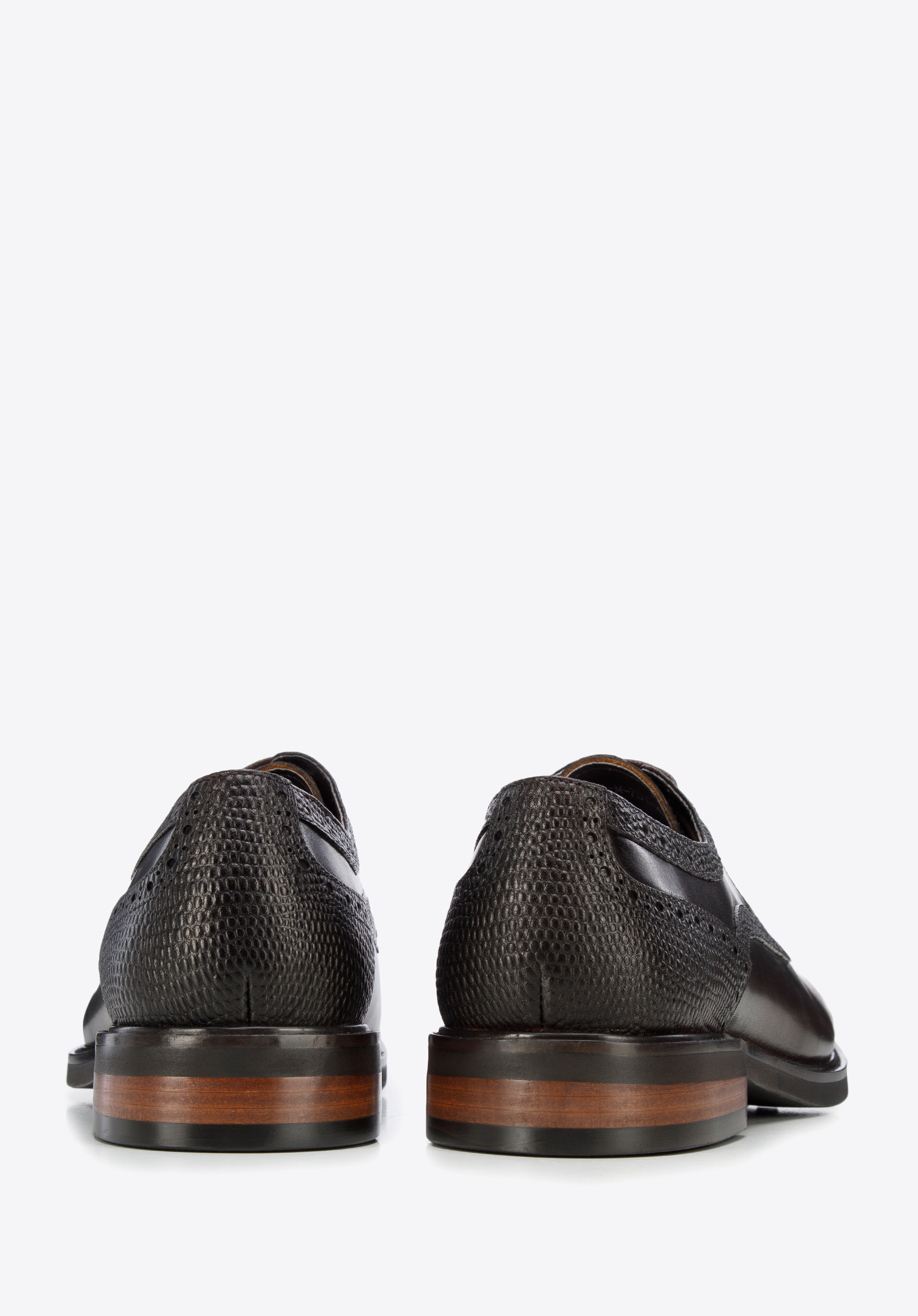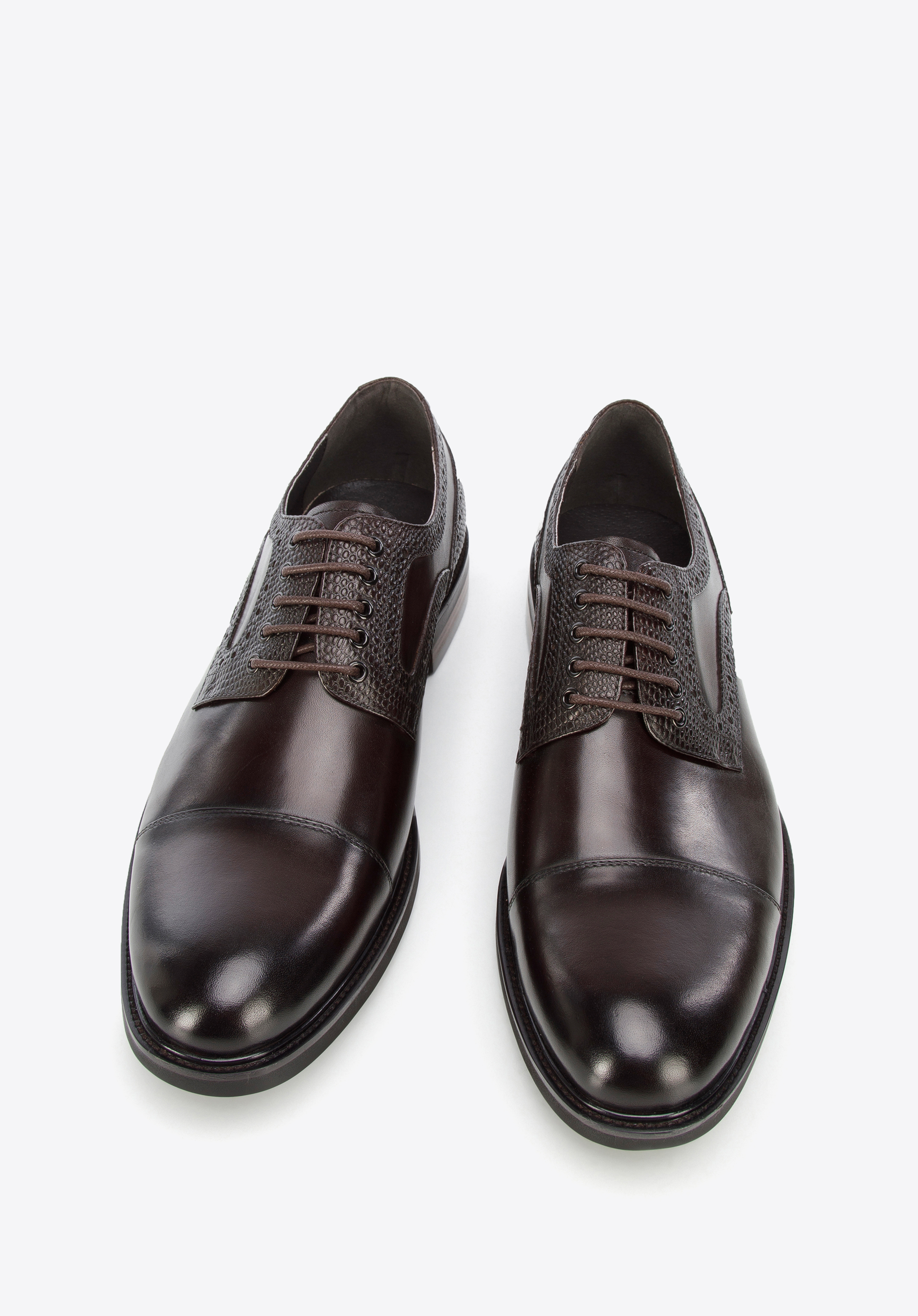 Diese eleganten Schnürschuhe sind ist eine gute Wahl für einen Mann, der gerne stilvoll aussieht. Sie sind aus Naturleder mit Einsatz in Lizard-Optik gefertigt. . Dank der weichen Innensohle und der relativ leichten Sohle werden Sie stundenlang bequem darin laufen können. Tragen Sie sie z. B. zu Ihrer Lieblingsjeans und einem Pullover oder einem legeren Anzug - sie verleihen Ihrem Outfit in jeder Situation einen besonderen Charakter. Derby-Schuhe aus Leder mit Einsatz in Lizard-Optik sind eine gute Wahl für jeden eleganten Mann.