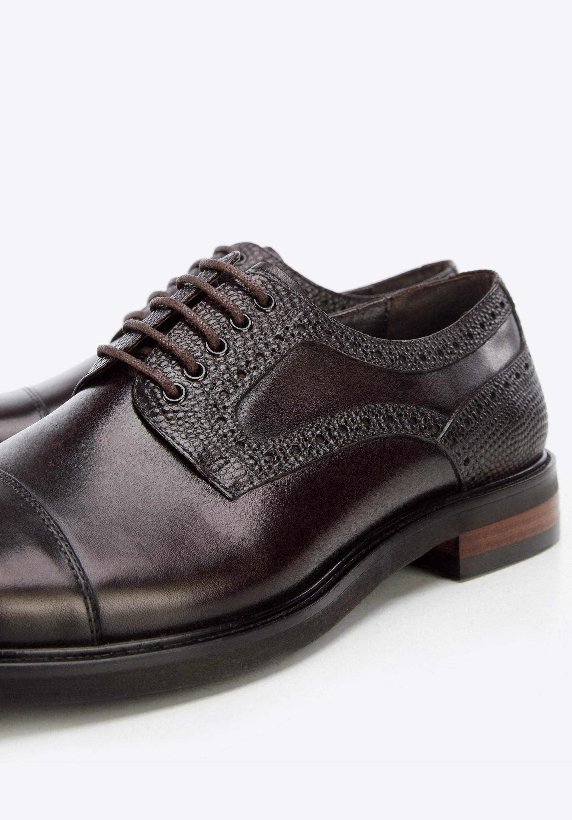 dunkelbraune Derby-Schuhe aus Leder mit Einsatz in Lizard-Optik
