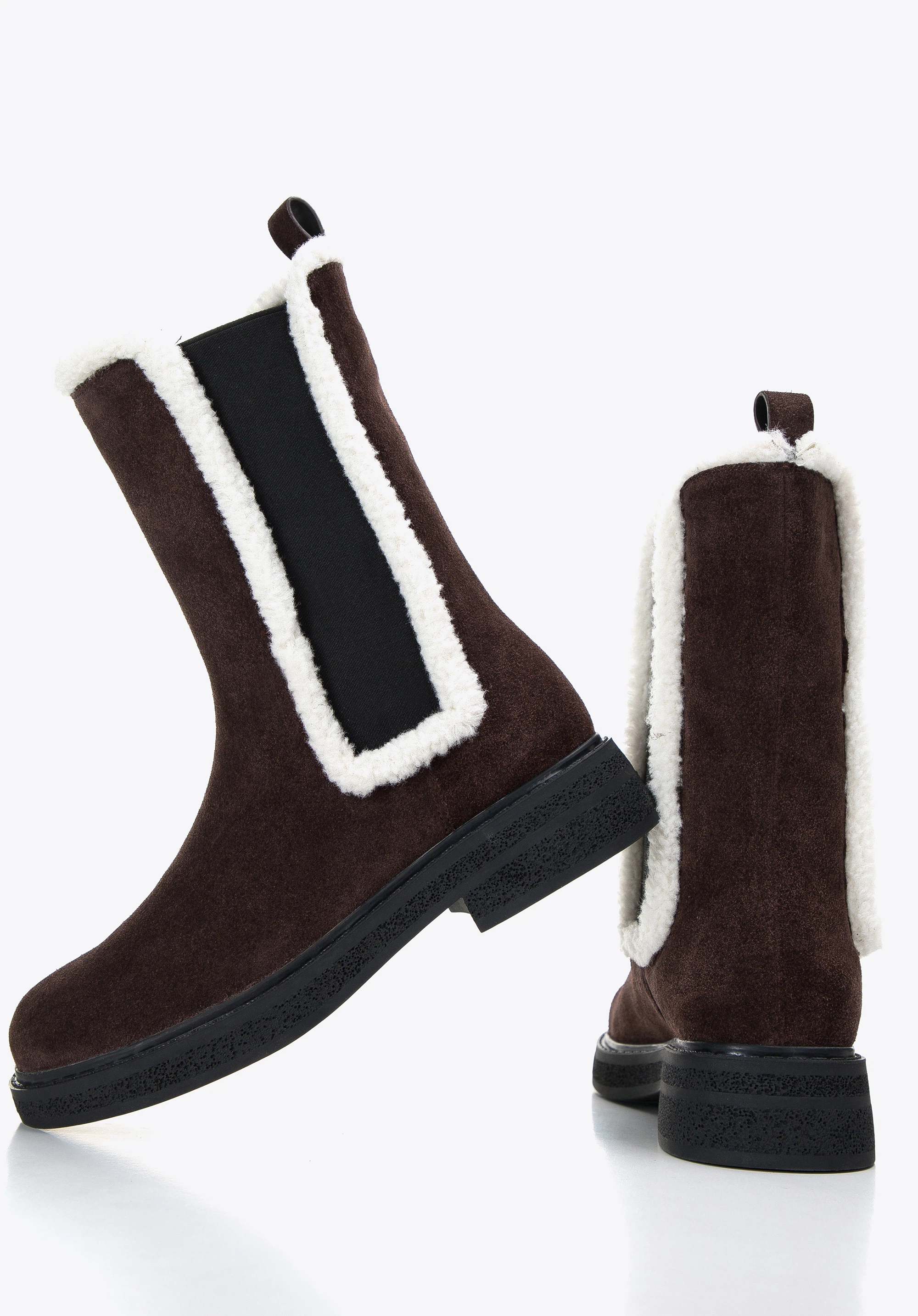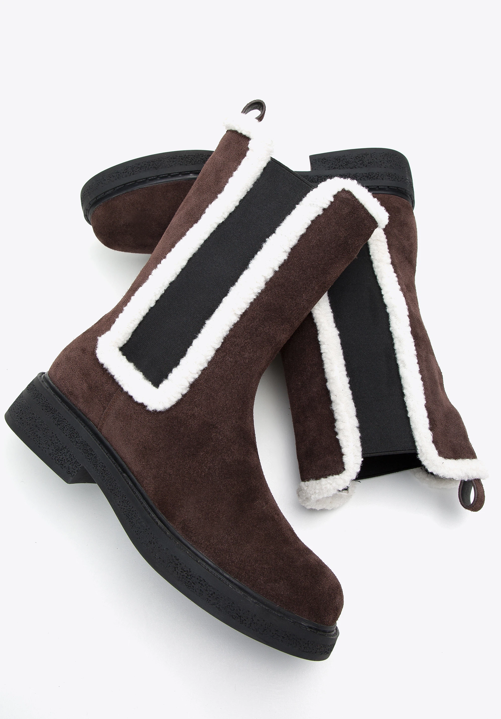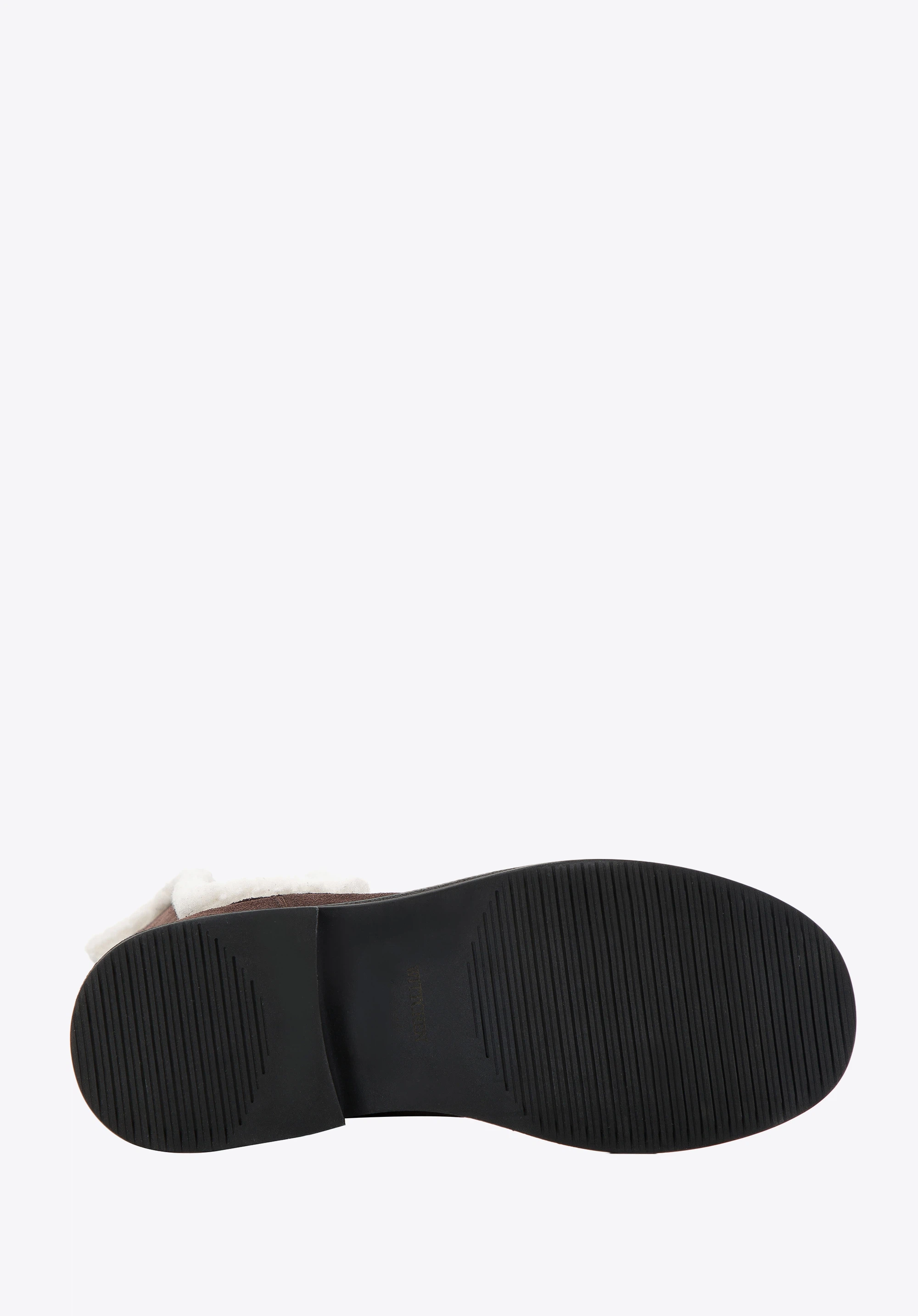 dunkelbraune Stiefeletten für Damen mit künstlichen Schafsfell