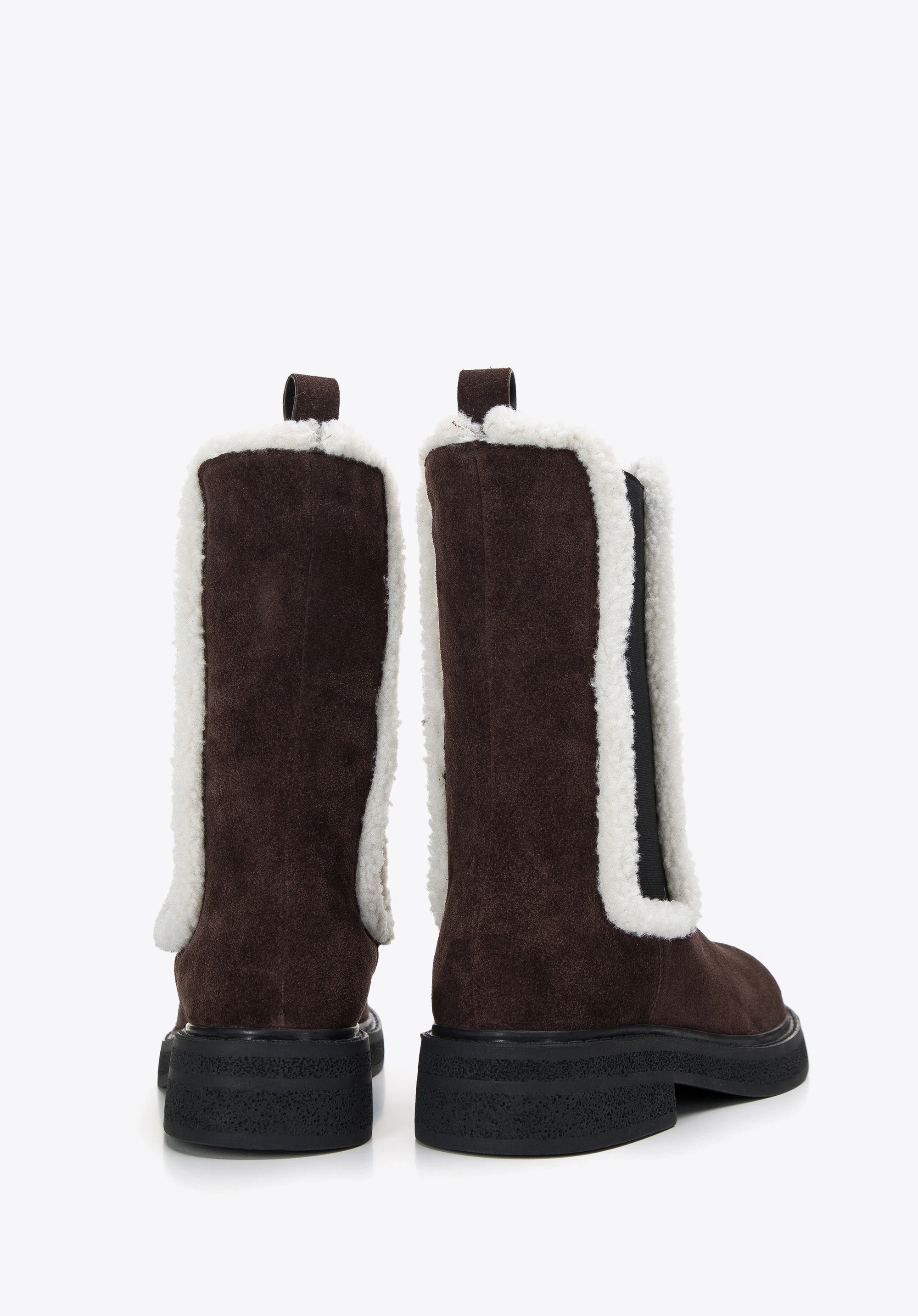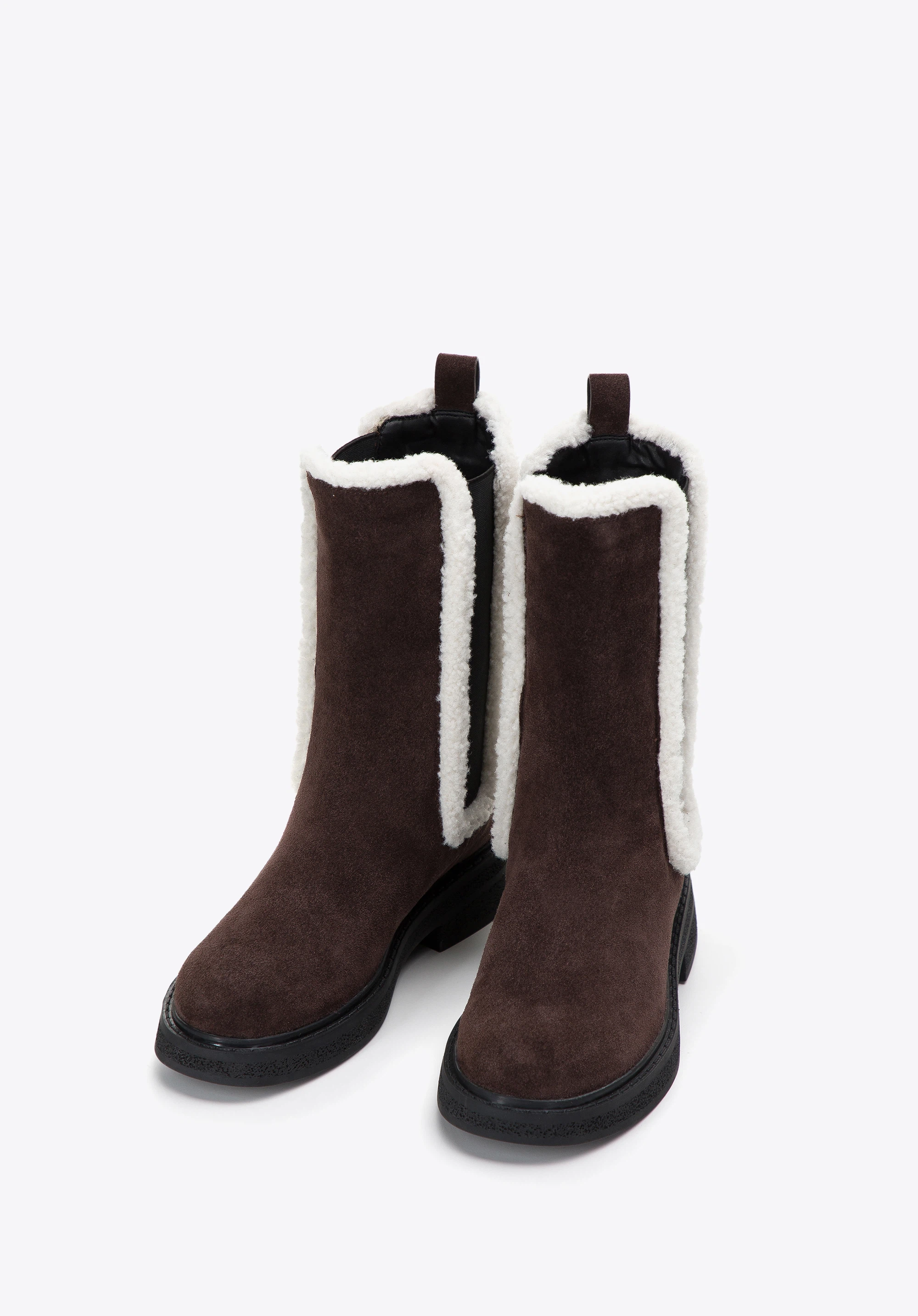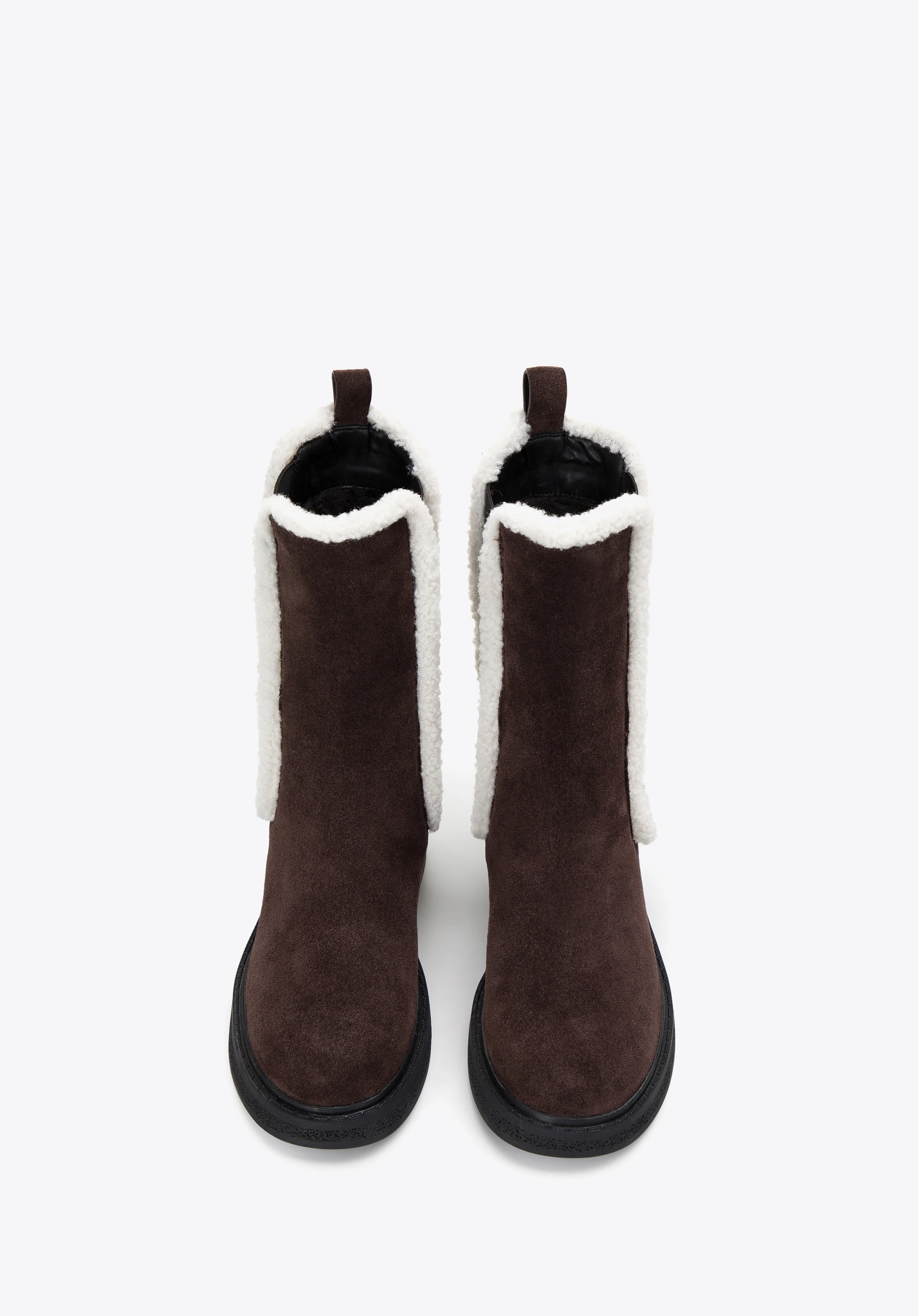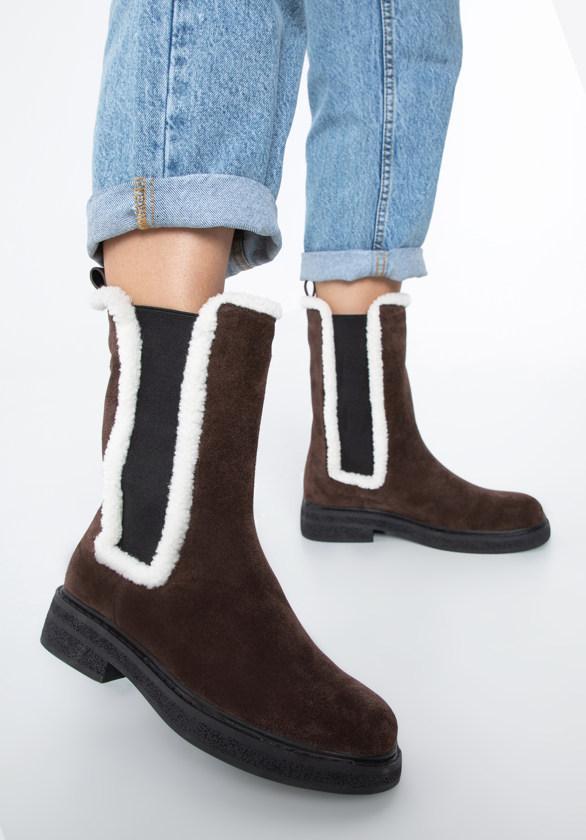 dunkelbraune Stiefeletten für Damen mit künstlichen Schafsfell