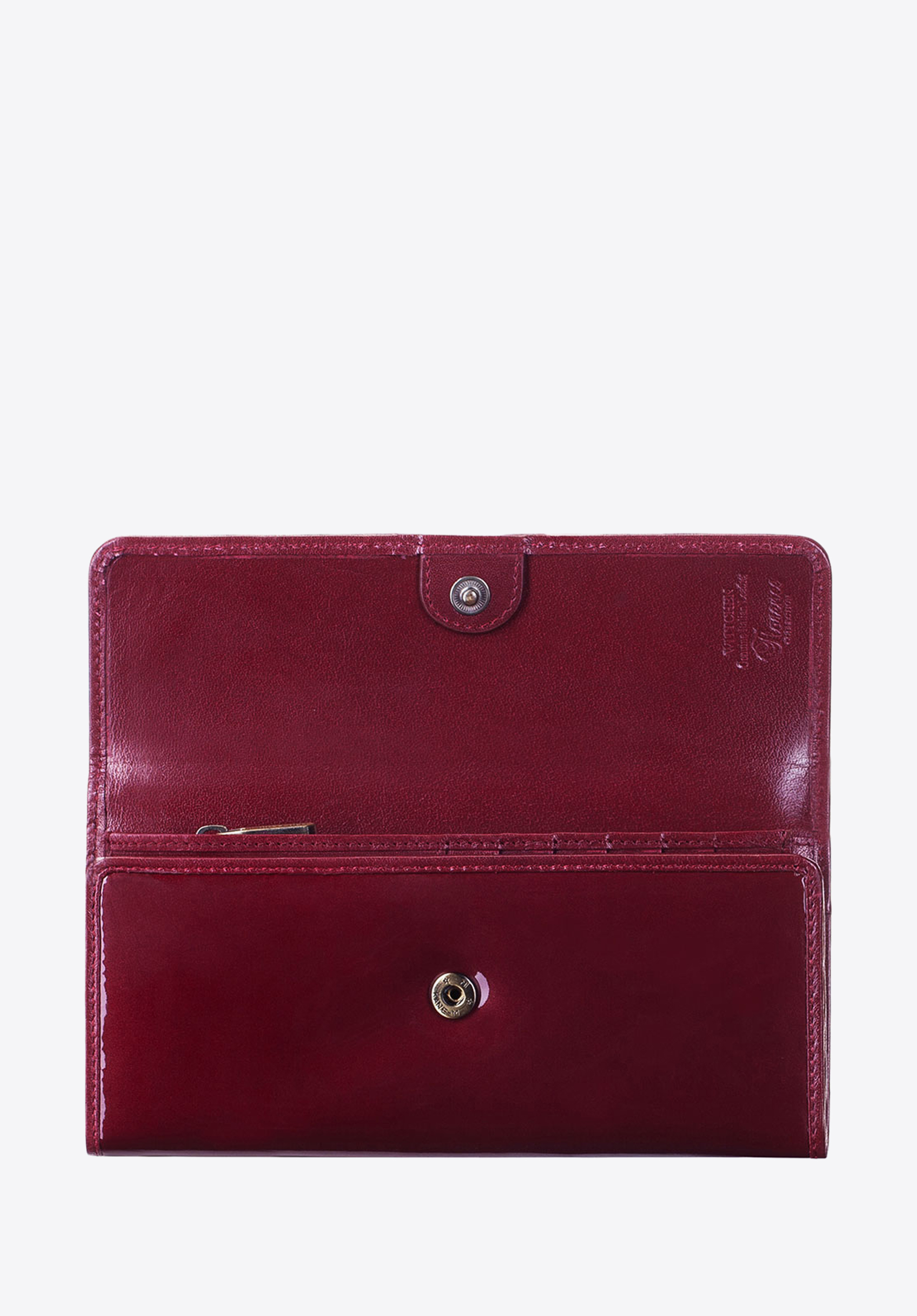Die große Geldbörse für Damen wird aus hochwertigem Lackleder mit glänzender Oberfläche genäht. Das stilvolle Modell bietet vielfältige Staumöglichkeiten und verfügt über einen RFID-Schutz. Im Angebot befinden sich zwei Farbvarianten: Dunkelblau und Burgunderrot.