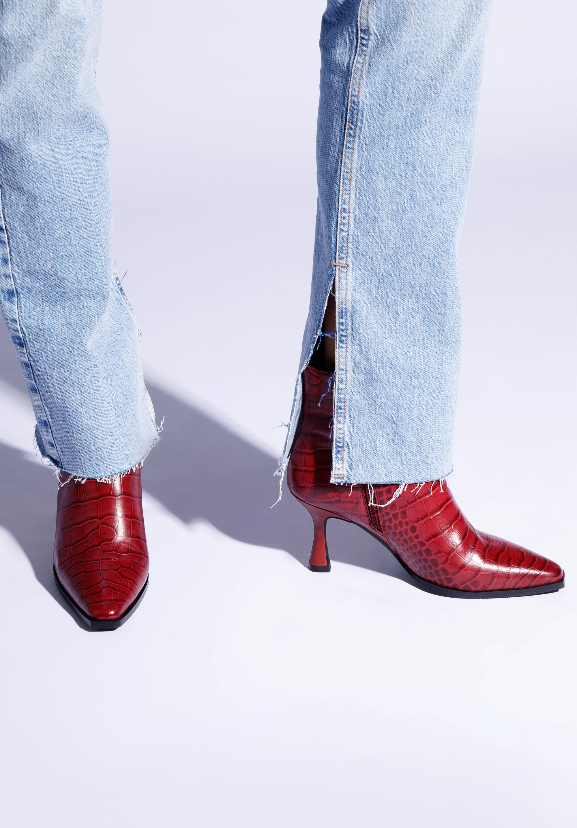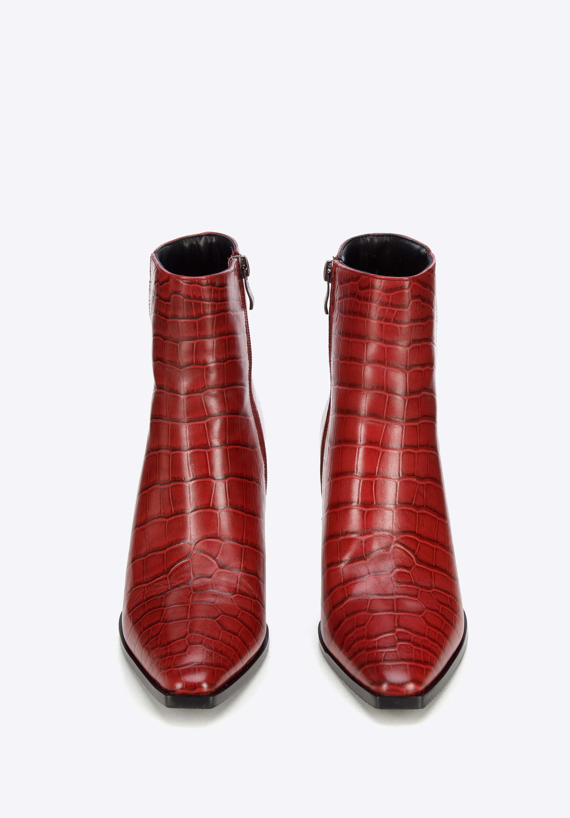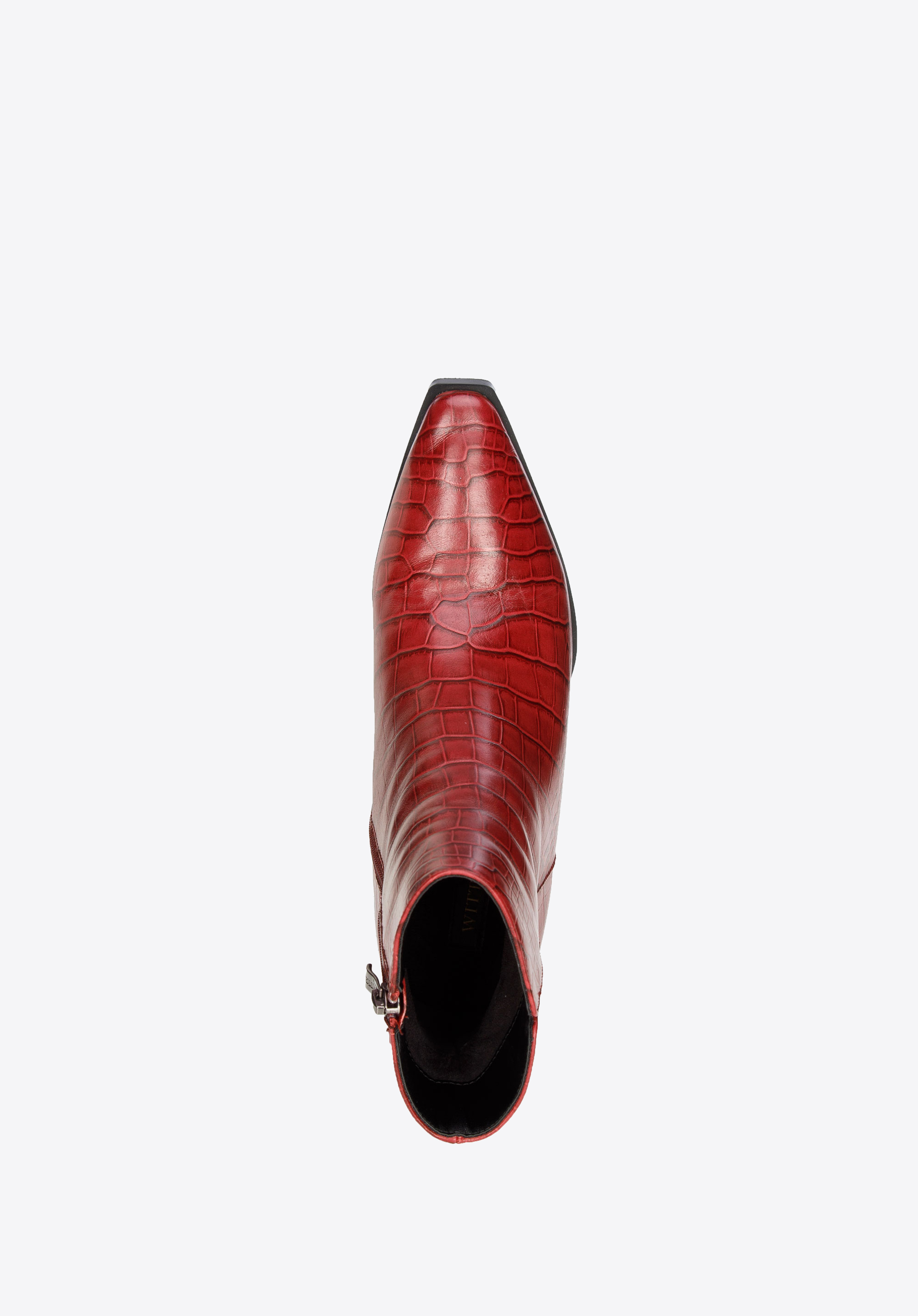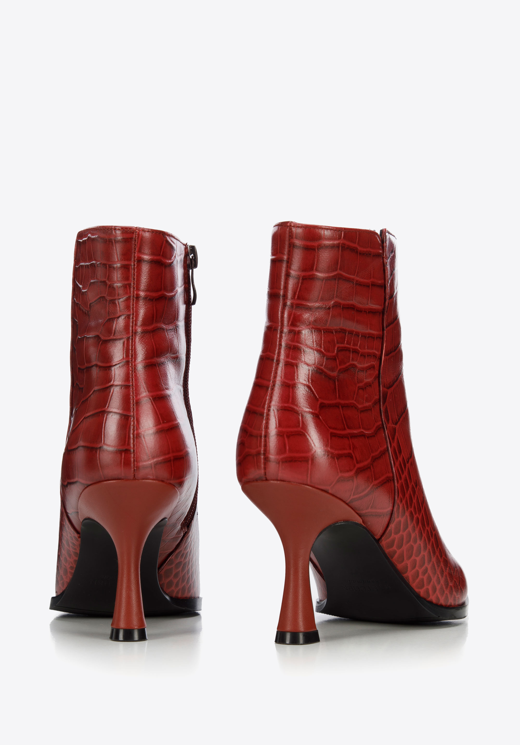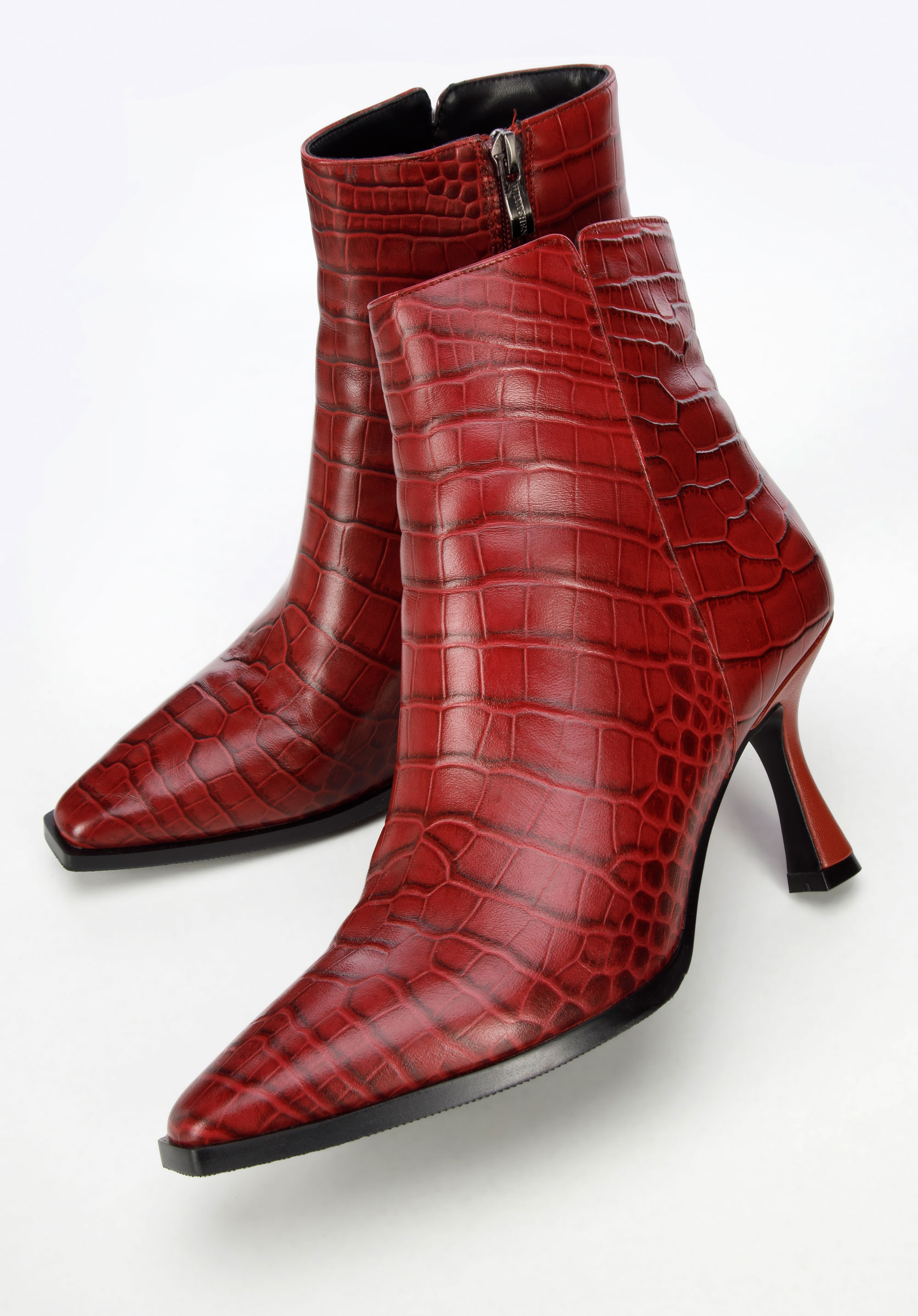 Stiletto-Stiefelette aus Leder in Kroko-Optik