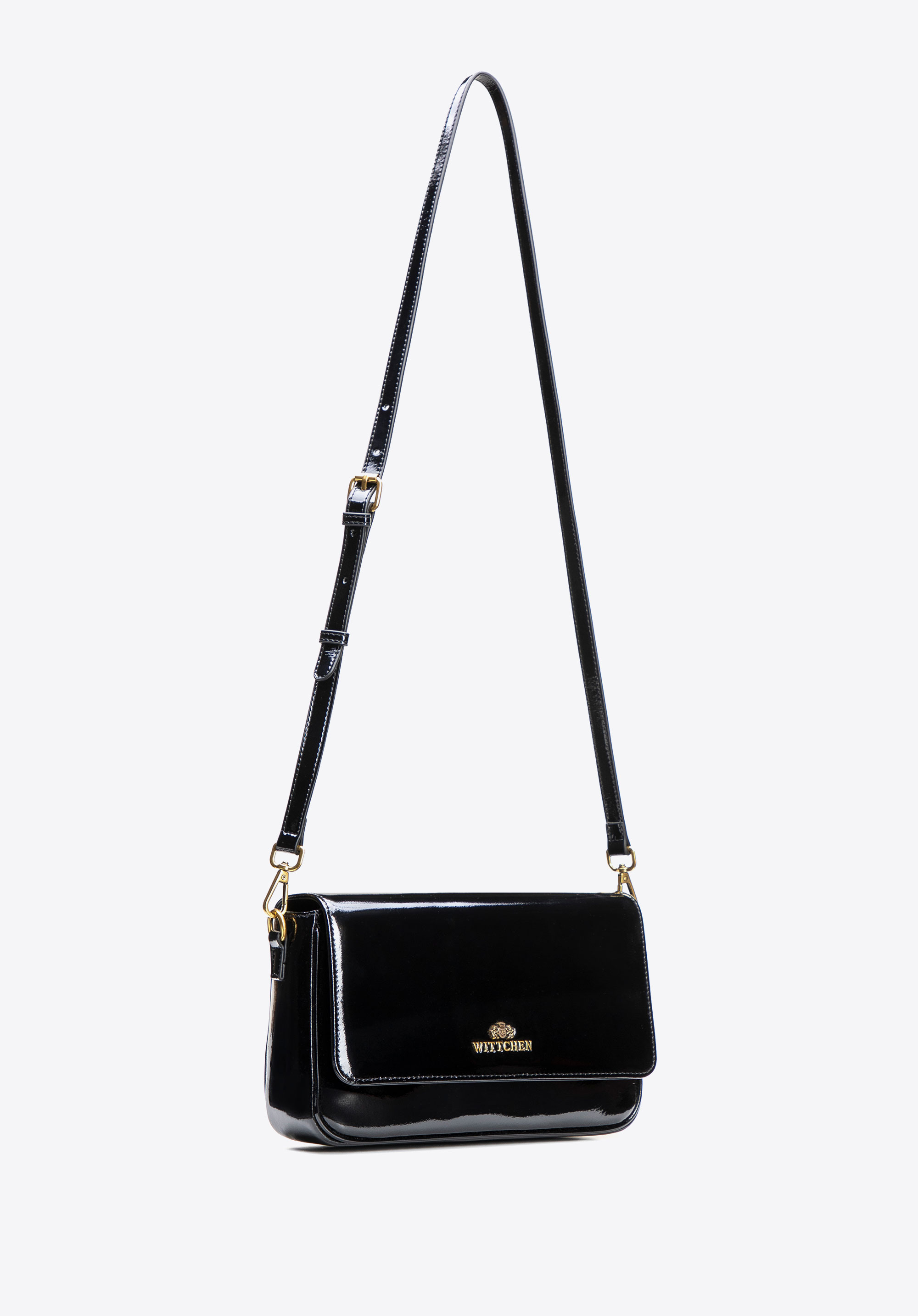 Wählen Sie eine Umhängetasche, die den luxuriösen Glanz von Lackleder mit der Praktikabilität einer Clutch verbindet – und genießen Sie Eleganz für jeden Anlass.