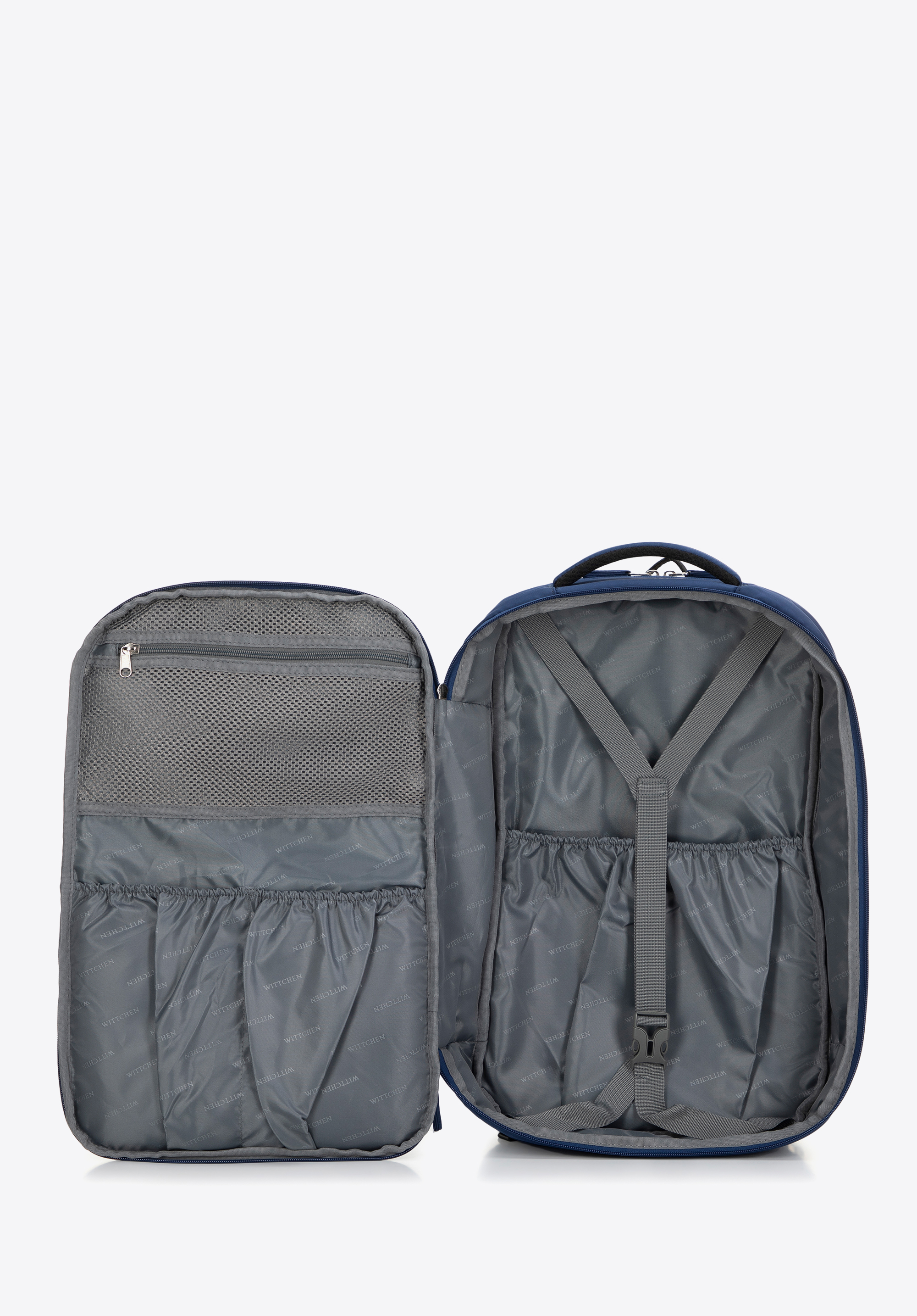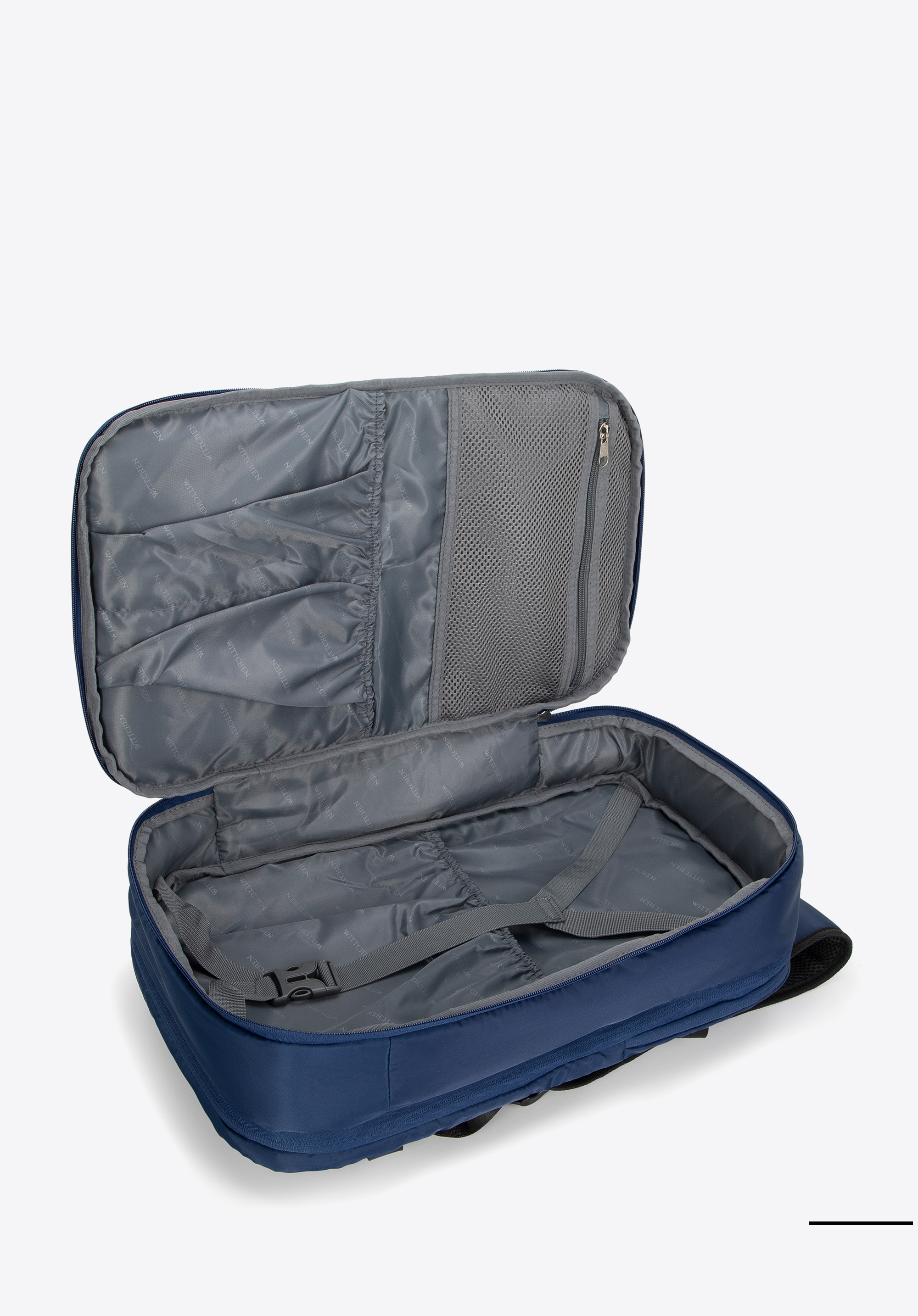 - Hauptfach: Das Fach lässt sich wie ein Koffer öffnen und bietet drei Taschen mit Gummizug zur Aufbewahrung kleinerer Gegenstände. Sicherheitsgurte sorgen für Ordnung im Inneren und ermöglichen einen einfachen Zugriff auf den Inhalt.