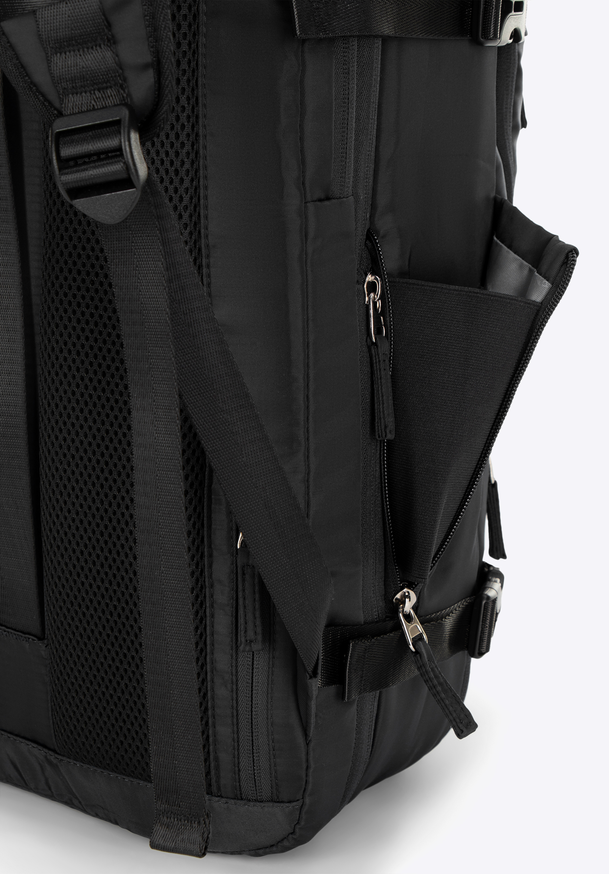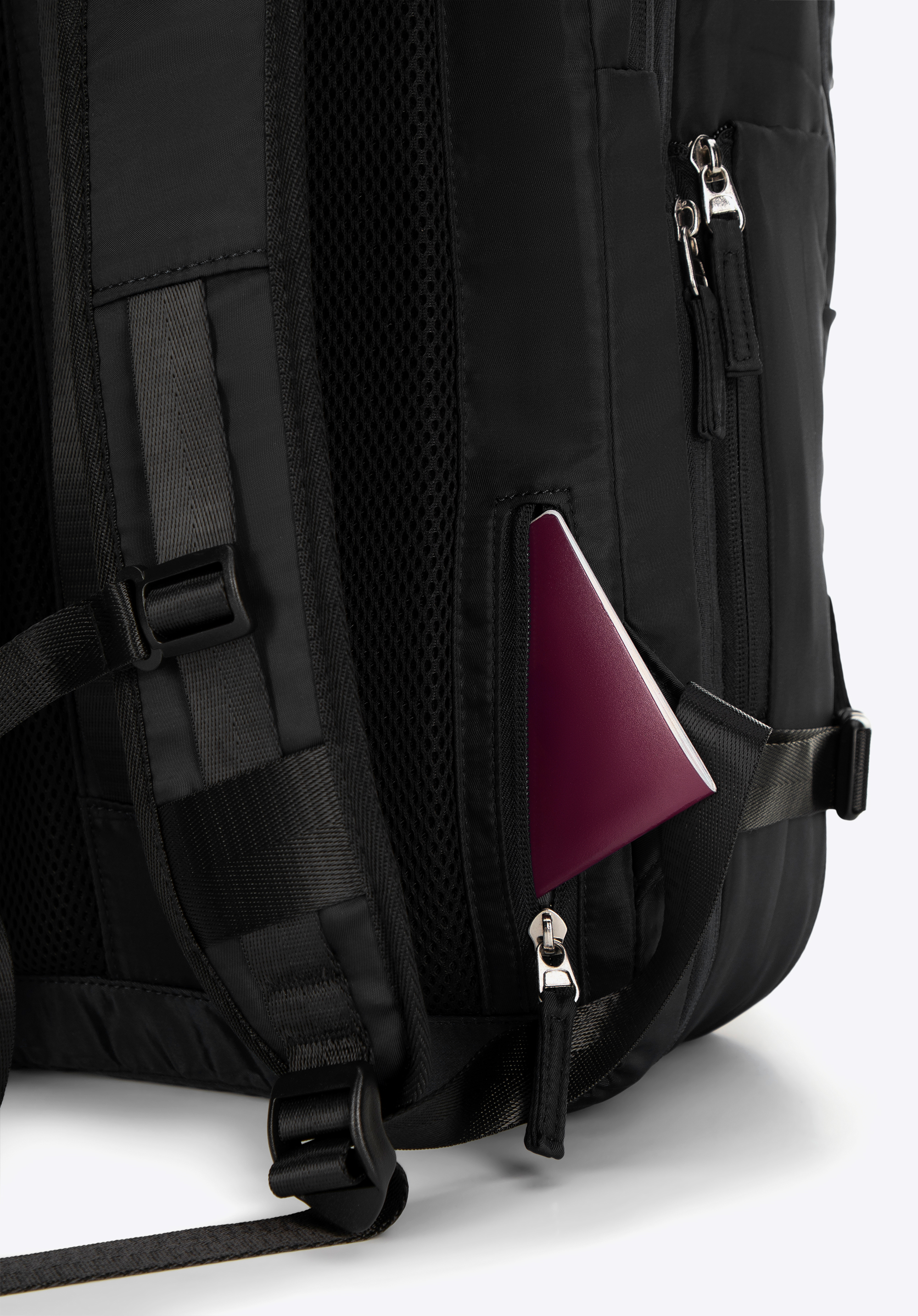 - Verstellbare Träger: Strukturierte Mesh-Polsterung für Komfort und Belüftung, auch auf langen Reisen.