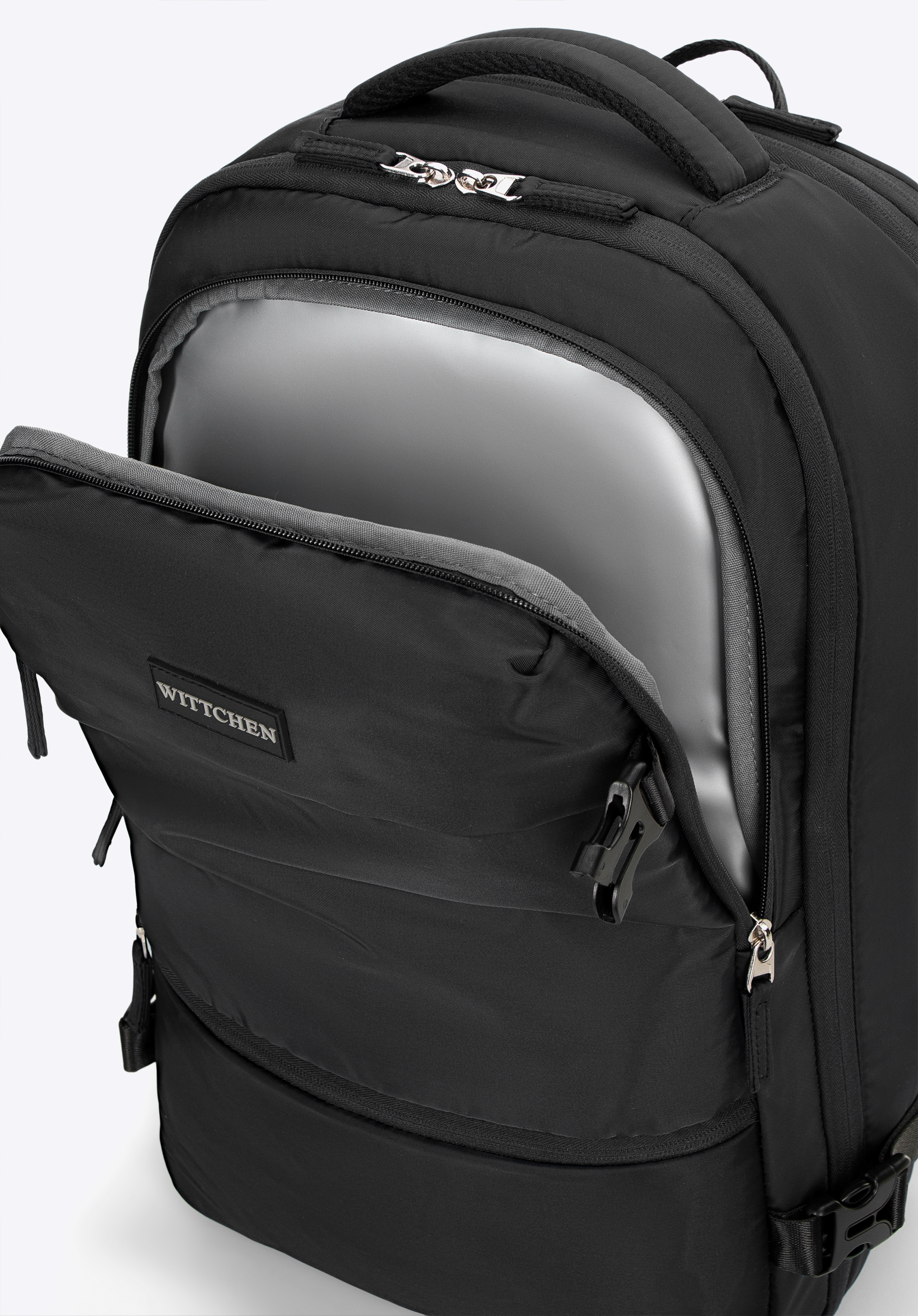 Unser wasserdichter Polyester-Rucksack bietet Komfort und Schutz bei allen Bedingungen. Er verfügt über ein Drei-Kammer-Design mit einem gepolsterten Fach für einen 17"-Laptop (bis zu 36 × 27 cm). Der Rucksack entspricht den Maßen der gängigen Fluggesellschaften als Free-on-Board-Handgepäck und ist damit die ideale Wahl für Flugreisen.