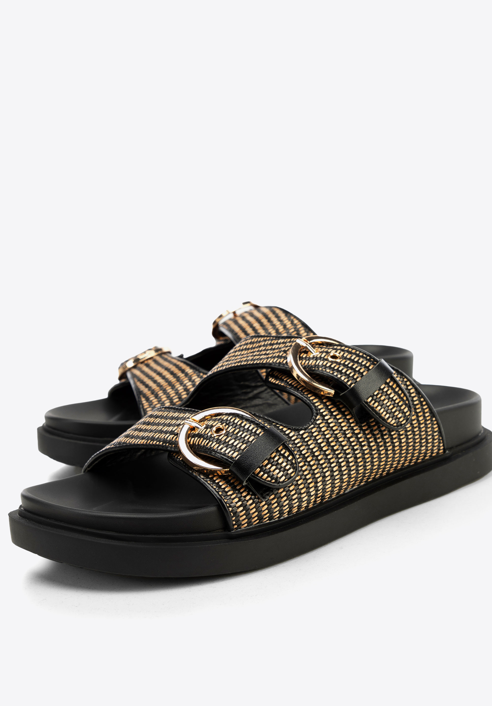 Leicht und voller Sommercharme – diese Damensandalen sind die perfekte Wahl für heiße Tage. Sie bestehen aus gewebtem Material in Bastoptik und vereinen Komfort mit einem mühelos stilvollen Boho-Look. Zwei verstellbare Riemen mit dezenten Schnallen sorgen für eine präzise Passform, während die mandelförmige Spitze ihren sommerlichen Reiz unterstreicht.