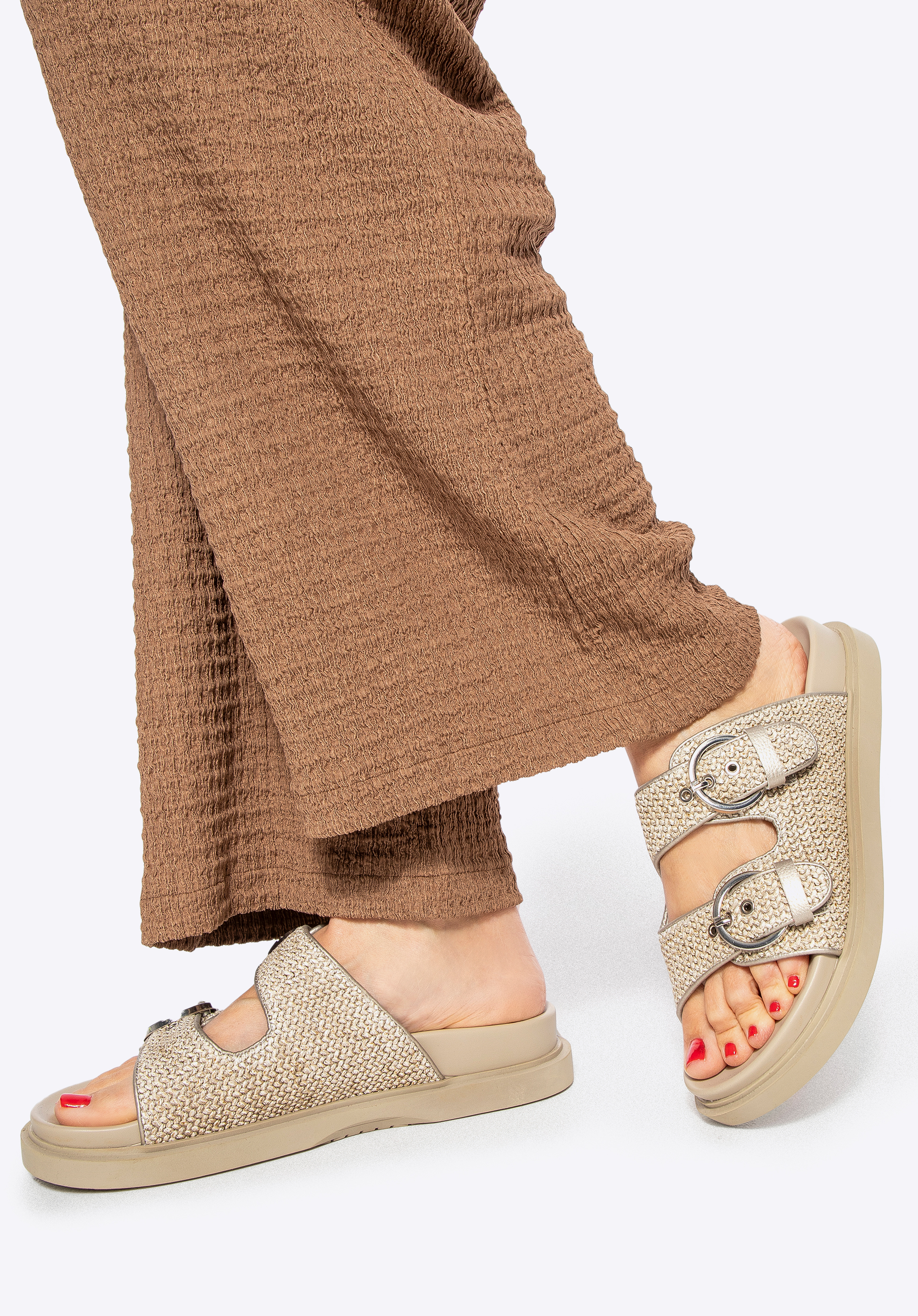 Diese Damensandalen sind die perfekte Wahl für heiße Tage , an denen Komfort und Stil am wichtigsten sind. Sie sind aus Kunstbast -Stroh geflochten, bieten ein leichtes Tragegefühl und einen einzigartigen Boho-Charme. Zwei verstellbare Riemen mit Schnallen sorgen für eine perfekte Passform und die mandelförmige Zehenpartie bietet Bewegungsfreiheit. Das weiche Futter und die Innensohle aus Kunstleder sorgen für Komfort bei jedem Schritt.