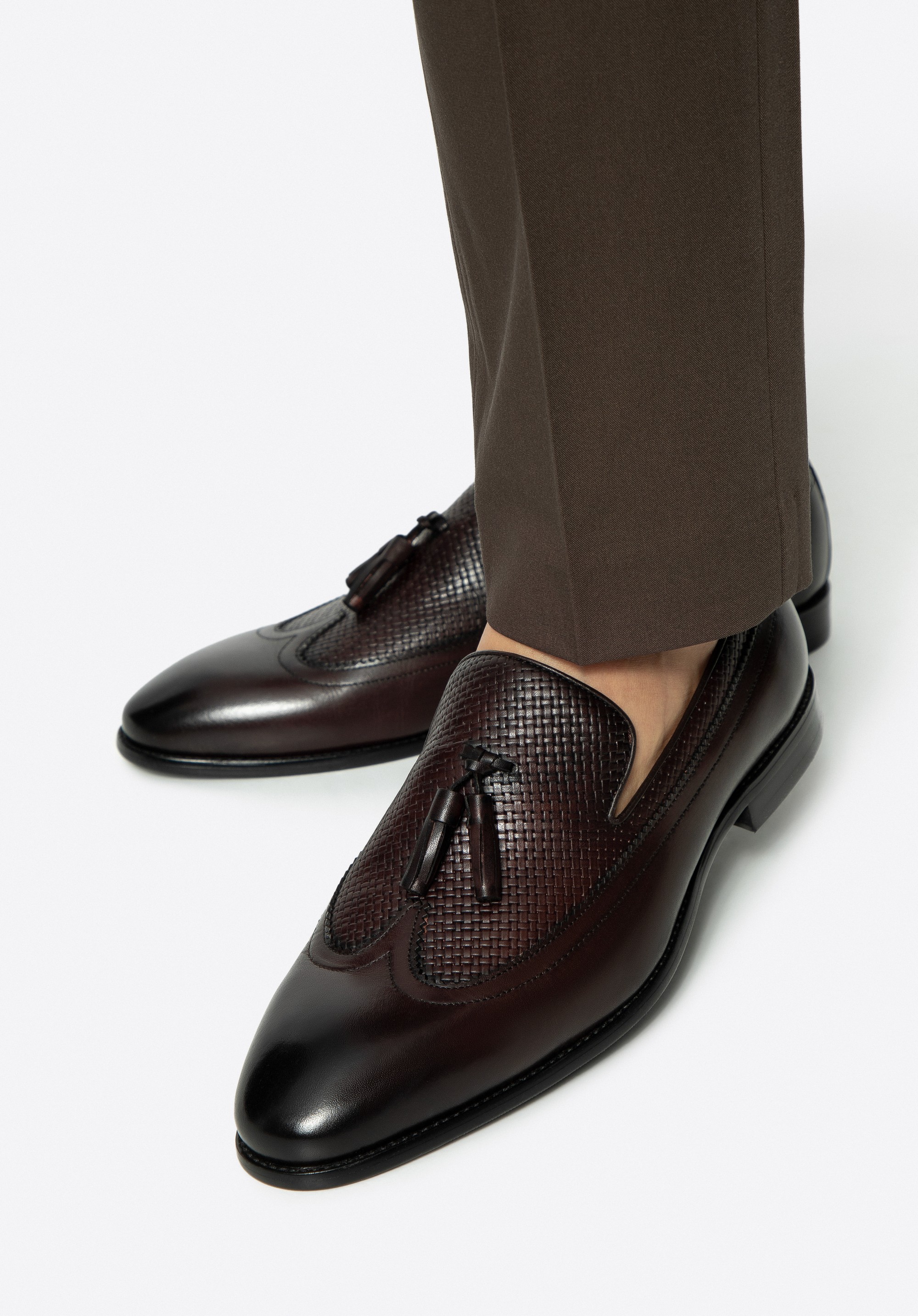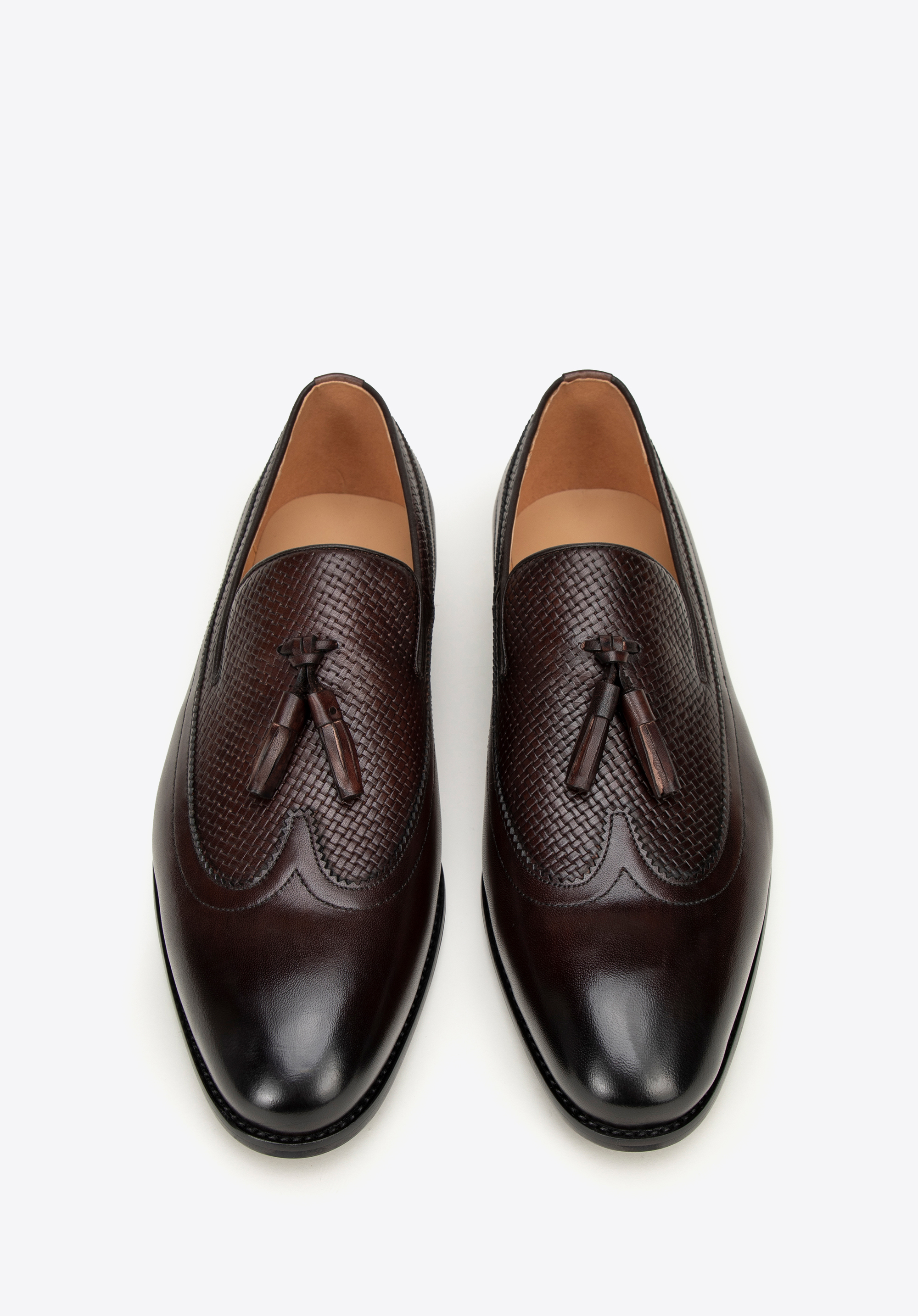 Tauchen Sie ein in die Welt der Eleganz mit Herren- Loafern , der Quintessenz von Komfort und Stil. Diese Loafer aus glattem Naturleder höchster Qualität sind nicht nur ein Symbol für Luxus, sondern auch eine Garantie für Langlebigkeit und einen einzigartigen Look. Das Futter besteht aus Naturleder und sorgt für ganztägigen Tragekomfort. Der klassische Loafer-Stil und die abgerundete Spitze verleihen Finesse und machen die Schuhe vielseitiger beim Stylen. Dieses Design zeichnet sich durch einzigartige Details wie das gewebte Detail am Vorderblatt und die Quaste für zusätzlichen Stil aus.