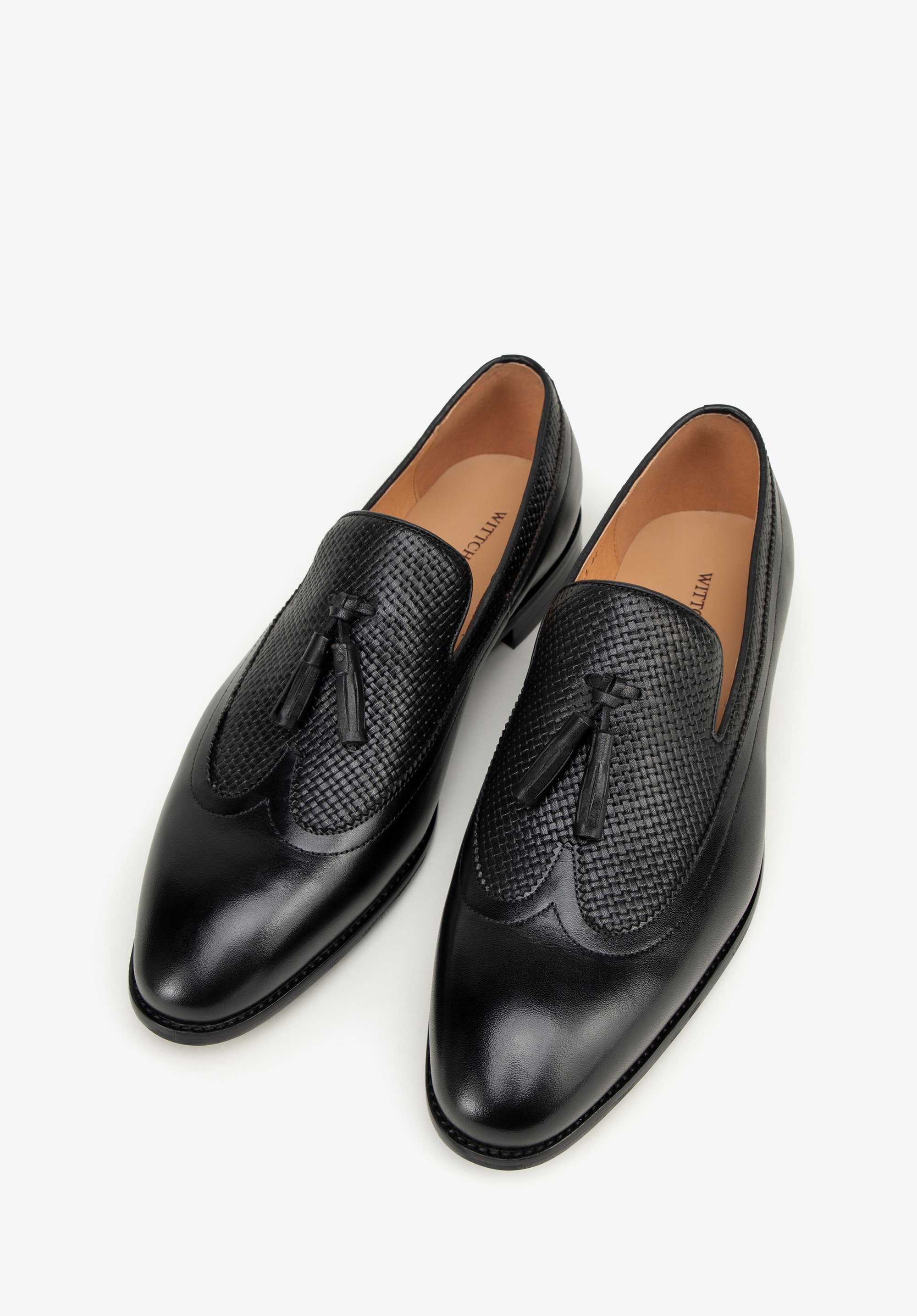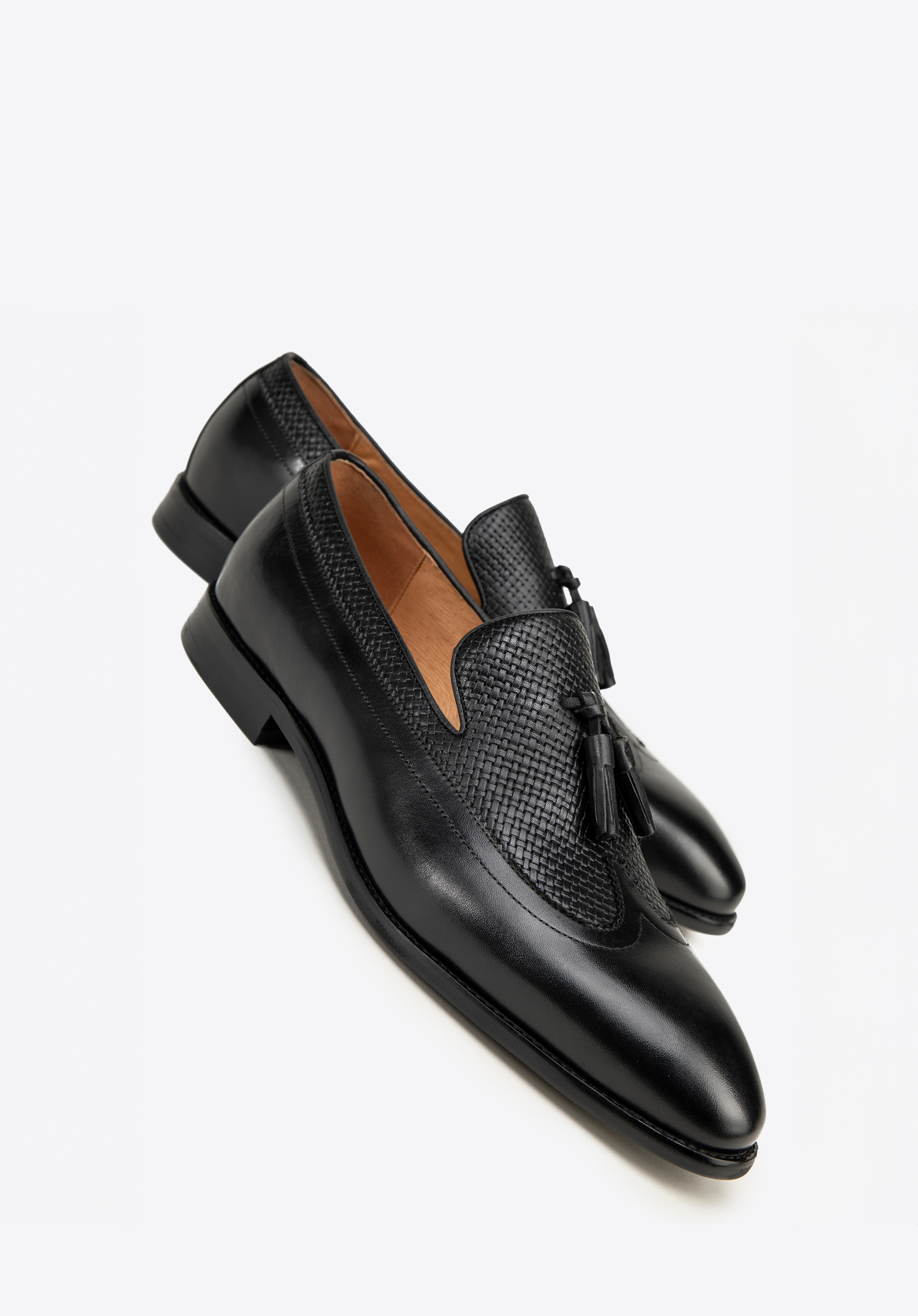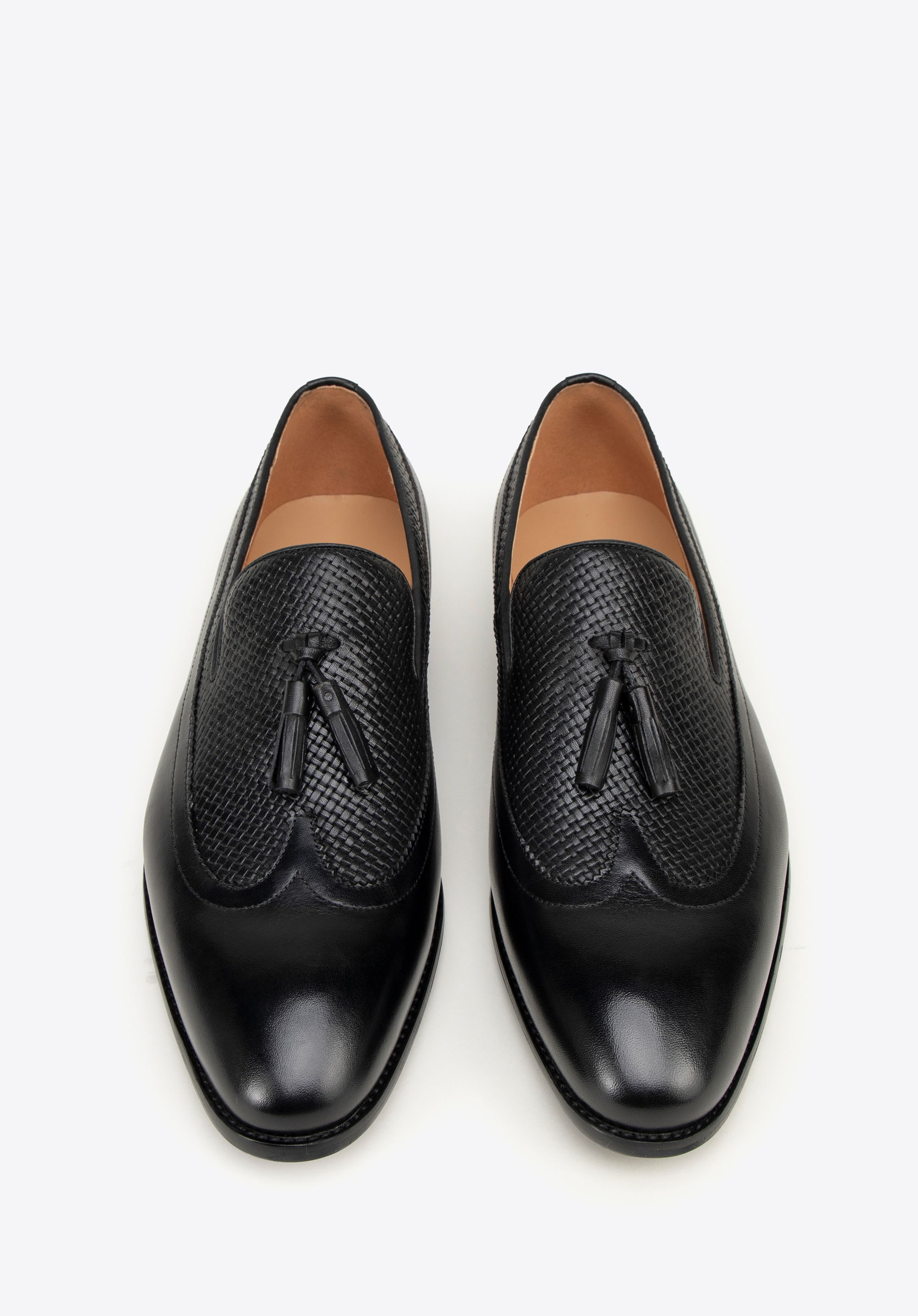 Geflochtene Leder-Mokassins für Männer Farbe: schwarz